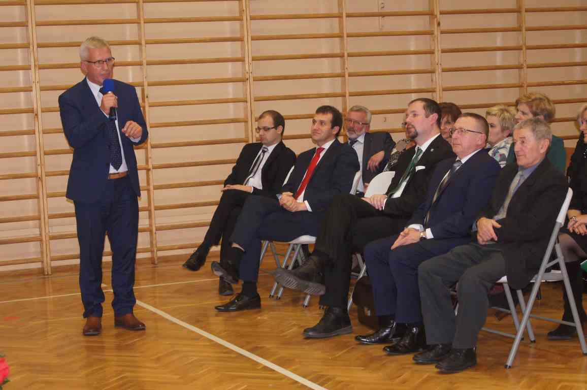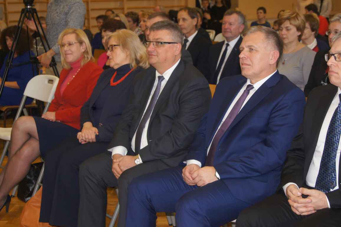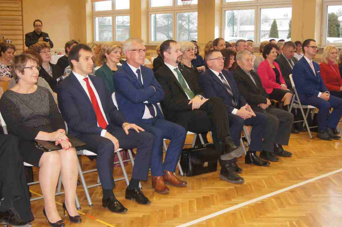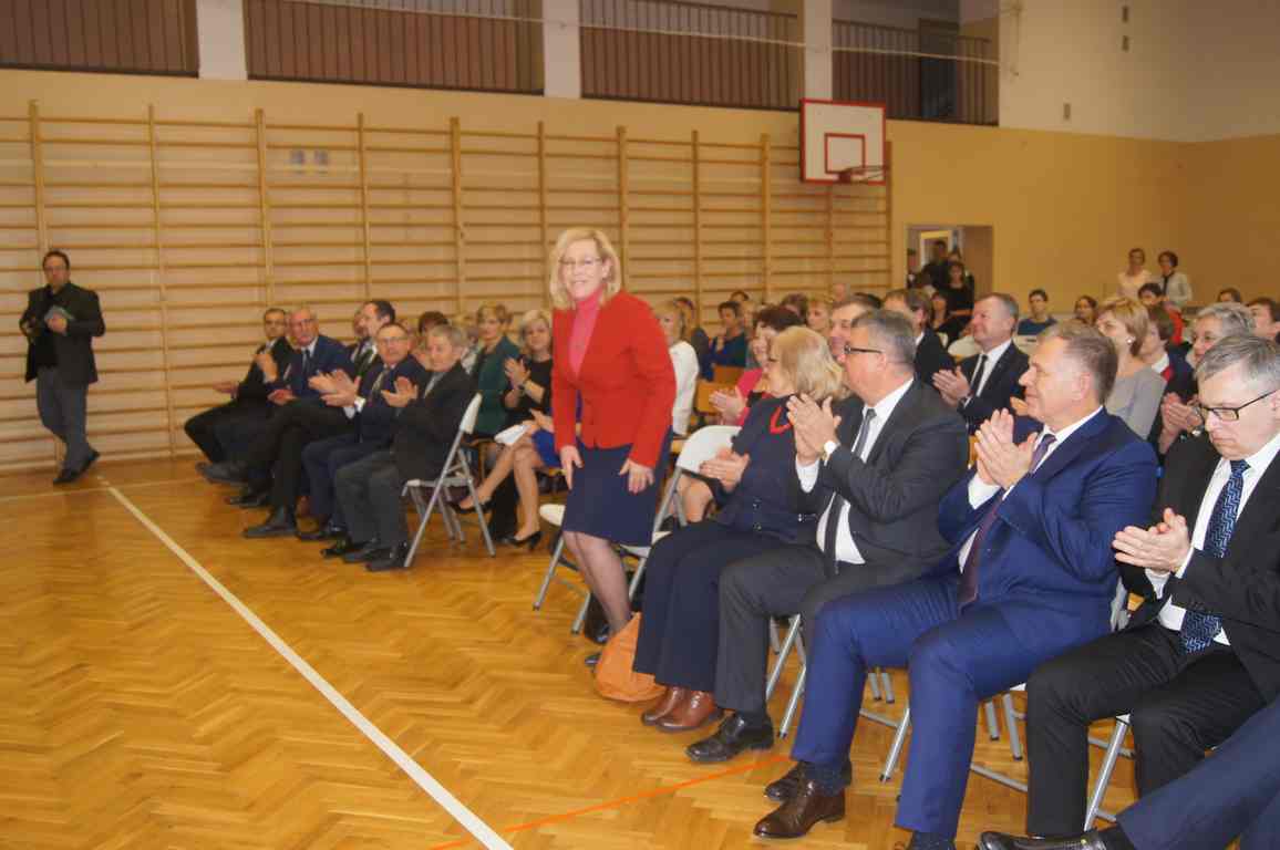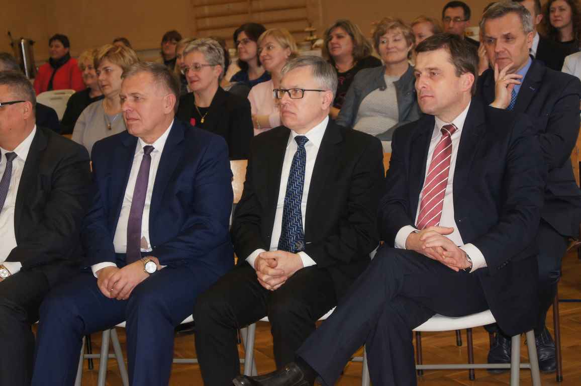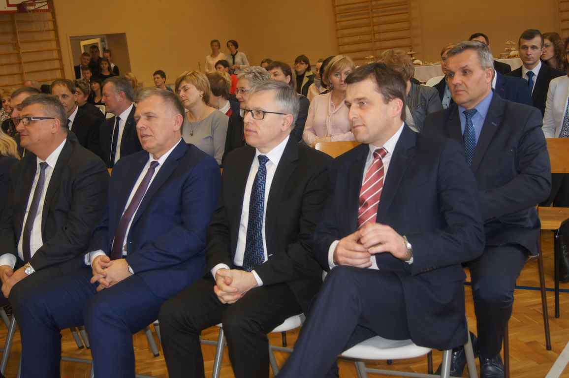 Konferencję rozpoczęła pani Barbara Nowak, która w pierwszych słowach wyraziła swoje uznanie dla młodych artystów, podkreśliła świetne przygotowanie i profesjonalizm, z jakim występowali na scenie. Wiele ciepłych słów pani kurator skierowała zarówno do wójta gminy, pana Tomasza Banka, jak i pani dyrektor Jadwigi Łucarz. Doceniła troskę o rozwój edukacji w naszej gminie i starania, by szkoła niczym nie odstawała od placówek w dużych miastach. Złożyła również szczere gratulacje z powodu udanej, bardzo dobrej współpracy organu prowadzącego szkołę z dyrekcją – współpracy, która układa się tak dobrze, że przynosi widoczne, pozytywne rezultaty. Wysoko oceniła także pracę nauczycieli, dzięki której uczniowie chętnie wypowiadają się na temat szkoły, czują się w niej dobrze i lubią w niej przebywać. W dalszej części spotkania nasi goście poruszali tematy związane z reformą oświatową – obawy związane z jej wprowadzeniem, problemy, z jakimi przyszło się zmierzyć w związku z tą poważną zmianą i sposoby, jakimi sobie z tym poradzono. Pani kurator odpowiedziała również na pytania Burmistrza Radłowa, pana Zbigniewa Mączki dotyczące subwencji oświatowej oraz opowiedziała o planowanych zmianach w Karcie Nauczyciela i pomocy dla samorządów prowadzących małe szkoły. Słowa pani kurator potwierdzili pan poseł Wiesław Krajewski i pan starosta, Roman Łucarz, który omówił jeszcze sytuację nauczycieli w powiecie tarnowskim.