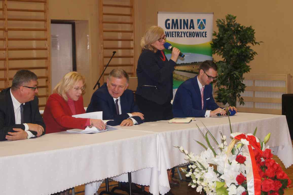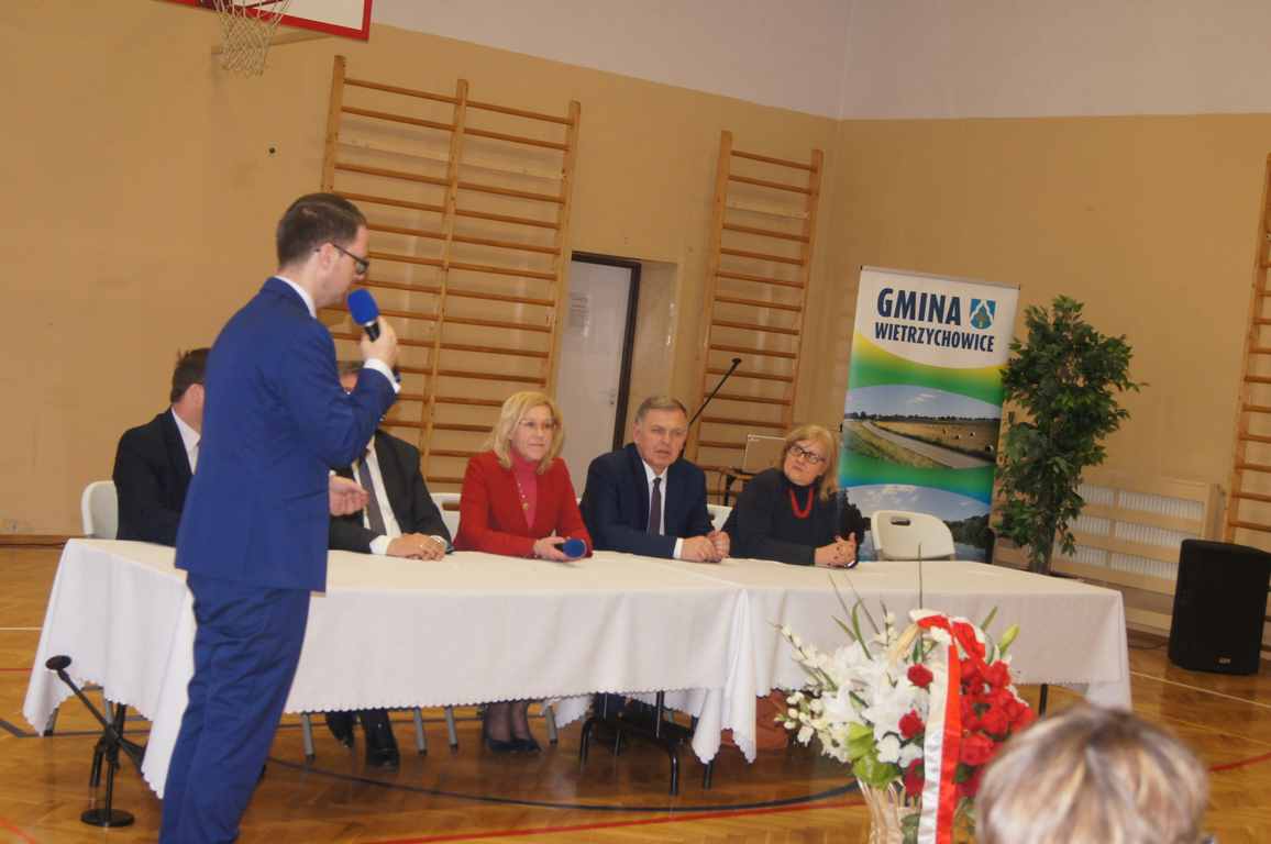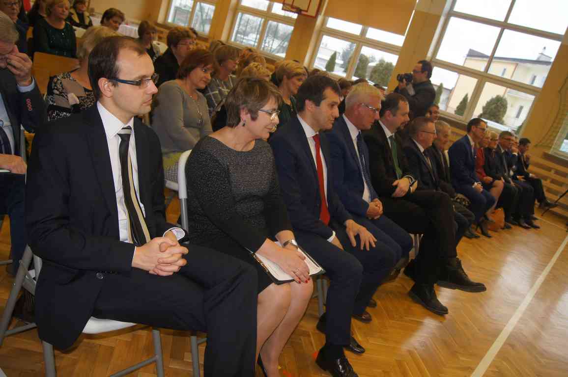 30 listopada do naszej szkoły przybyła z wizytą pani Barbara Nowak, Małopolska Kurator Oświaty. Wizyta pani kurator związana była z uroczystym odbiorem inwestycji budowlanej, jaka zakończyła się właśnie w naszej placówce. Spotkanie z panią kurator stało się również bardzo dobrą okazją do konferencji na temat wprowadzonej od września reformy oświatowej, problemów współczesnej oświaty, sposobów jej finansowania i kierunków jej rozwoju. Na zaproszenie Wójta Gminy Wietrzychowice, pana Tomasza Banka oraz Dyrektor Zespołu Szkolno – Przedszkolnego w Wietrzychowicach, pani Jadwigi Łucarz to niecodzienne wydarzenie uświetnili swoją obecnością: Poseł na Sejm Rzeczpospolitej Polskiej, pan Wiesław Krajewski, Dyrektor Wydziału Nadzoru Pedagogicznego KO w Krakowie, pani Dorota Skwarek, Radny Małopolskiego Sejmiku Wojewódzkiego, pan Wojciech Skruch, Starosta Powiatu Tarnowskiego, pan Roman Łucarz, Radny Powiatu Tarnowskiego, pan Stefan Dzik, Burmistrz Radłowa, pan Zbigniew Mączka, Wójt Gminy Szczurowa, pan Marian Zalewski, Wójt Gminy Pleśna, pan Józef Knapik, Wójt Gminy Rzepiennik Strzyżewski, pan Marek Karaś, Dyrektor Centrum Obsługi Szkól i Przedszkoli Gminy Tarnów, pan Adam Ryba, Dyrektor Tarnowskiej Delegatury Kuratorium Oświaty, pan Artur Puciłowski, Dyrektor Ośrodka Rehabilitacyjno – Opiekuńczego w Jadownikach Mokrych, ks. Marek Kogut, Radni Gminy Wietrzychowice na czele z przewodniczącym, panem Piotrem Moskalem, Zastępca Wójta Gminy Wietrzychowice, pani Sabina Nowak, Sekretarz Gminy Wietrzychowice, pani Iwona Nowak, Skarbnik Gminy Wietrzychowice, pan Andrzej Furgał oraz dyrektorzy szkół podstawowych z Żabna, Radłowa i Wierzchosławic, inwestorzy oraz nauczyciele i pracownicy Zespołu Szkolno – Przedszkolnego w Wietrzychowicach.