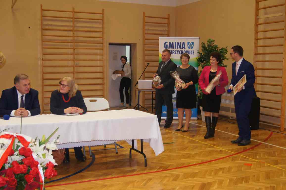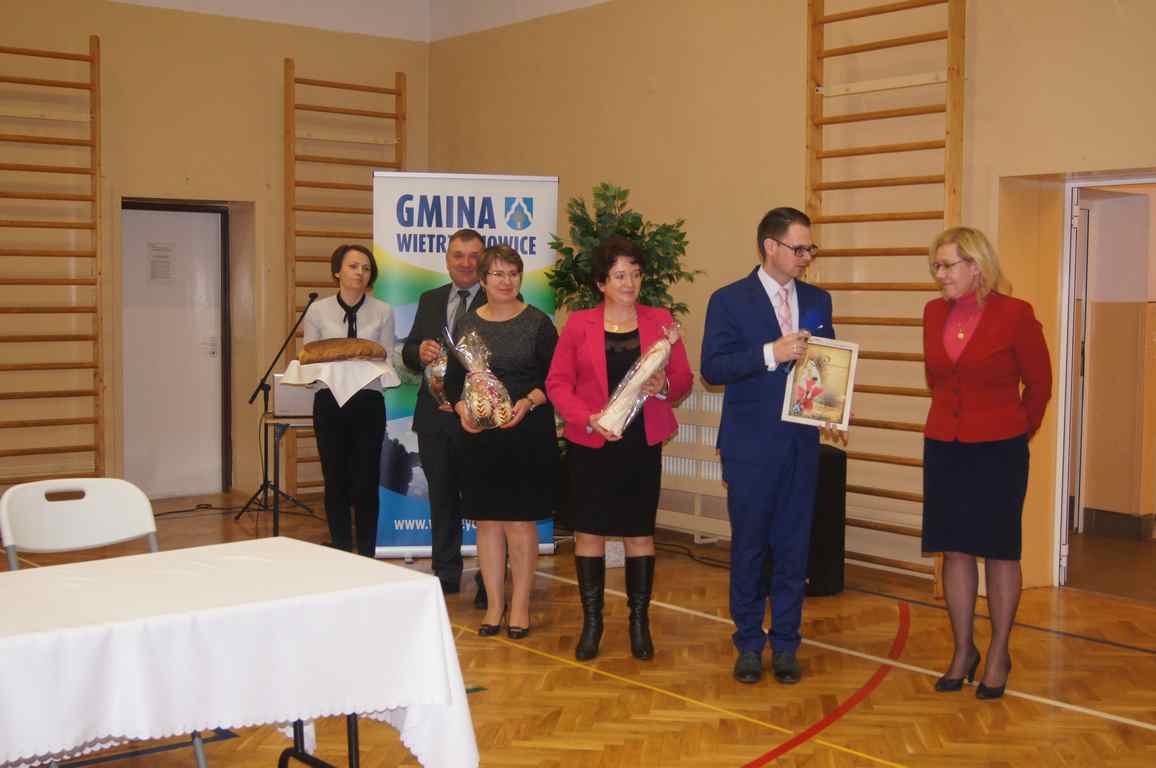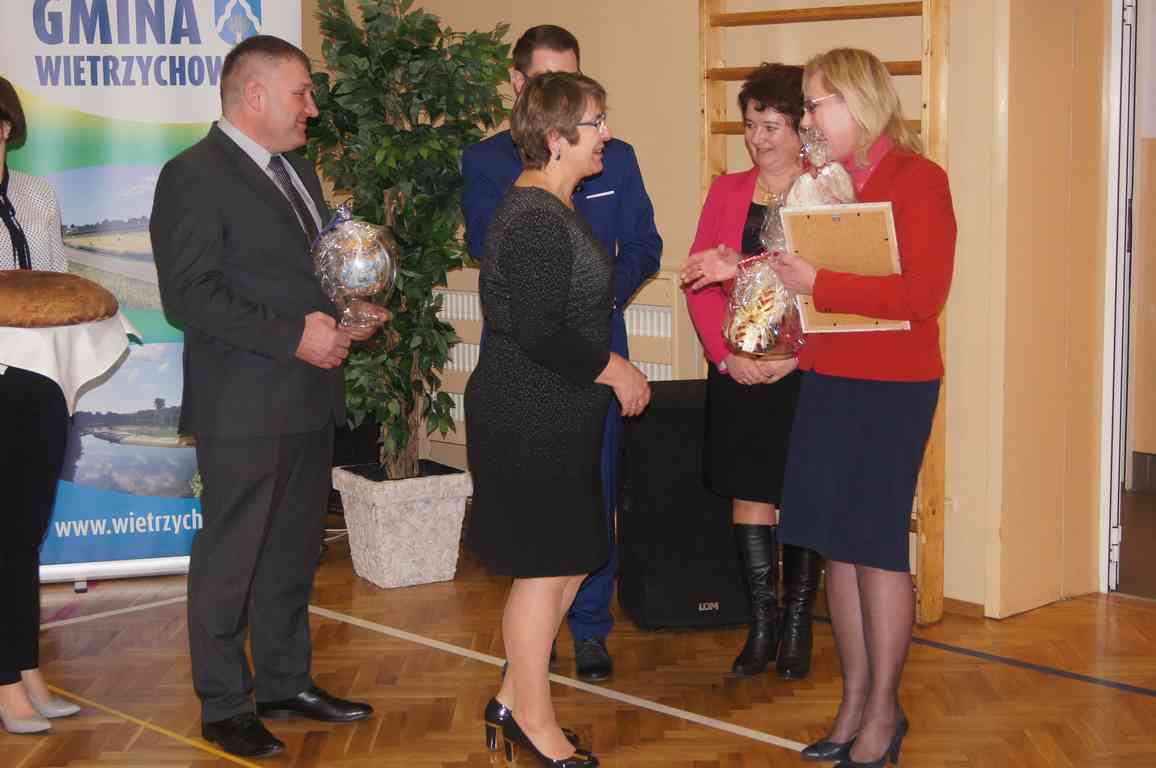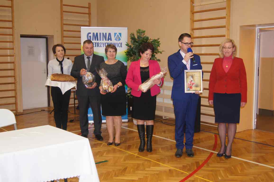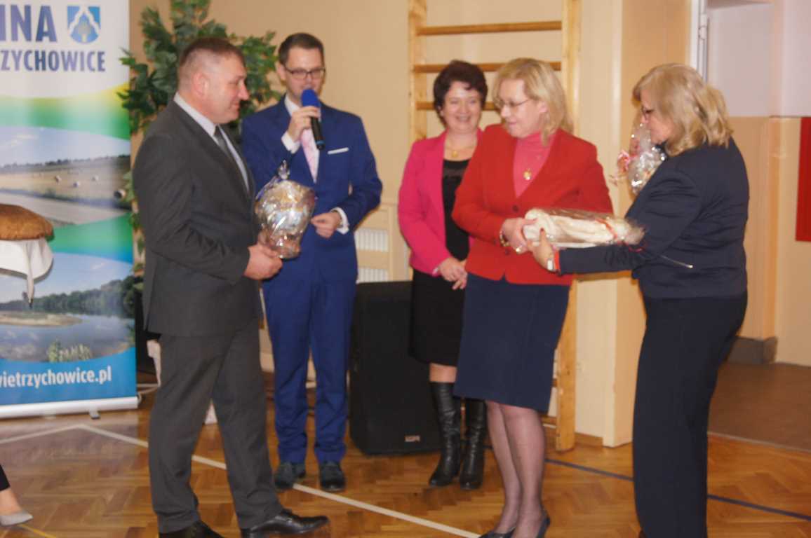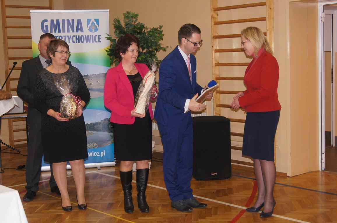 Po zakończeniu konferencji Wójt Gminy Wietrzychowice, pan Tomasz Banek złożył serdeczne podziękowania pani kurator za wsparcie, rady i wskazówki, jakich chętnie udzielała zawsze, kiedy się o nie zwracano. Pan wójt podkreślił, że pomoc i wyraźna chęć współpracy, którą oferowało Małopolskie Kuratorium Oświaty pozwoliły prawidłowo przeprowadzić reformę edukacji w naszej gminie. W dowód wdzięczności organizatorzy wręczyli pani kurator oraz pani dyrektor upominki kojarzące się z naszą gminą, a następnie zaprosili wszystkich do szwedzkiego stołu, gdzie przy kawie, herbacie i smacznej przekąsce można było kontynuować rozmowy w mniej oficjalnych warunkach.