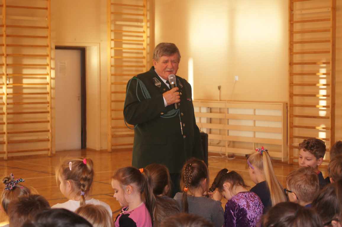 W środę, 17 stycznia, odbyło się spotkanie uczniów z łowczym, panem Wojciechem Gwoździem, który ciekawie i barwnie opowiadał dzieciom o lesie oraz zwyczajach i życiu zwierząt. Nasz gość poruszył tematy związane z łowiectwem i zadaniami kół łowieckich, uświadomił nam również, że tak naprawdę łowiectwo jest pasją, chęcią częstego obcowania z naturą, a bycie myśliwym nie polega wyłącznie na strzelaniu. To przede wszystkim obowiązek, praca i starania wielu ludzi, związane m.in. z utrzymaniem równowagi populacji zwierząt, ochroną zwierząt łowczych i ich środowiska bytowania, dokarmianiem zwierząt, budowaniem paśników, walką z kłusownictwem, pozyskiwaniem i magazynowaniem karmy.