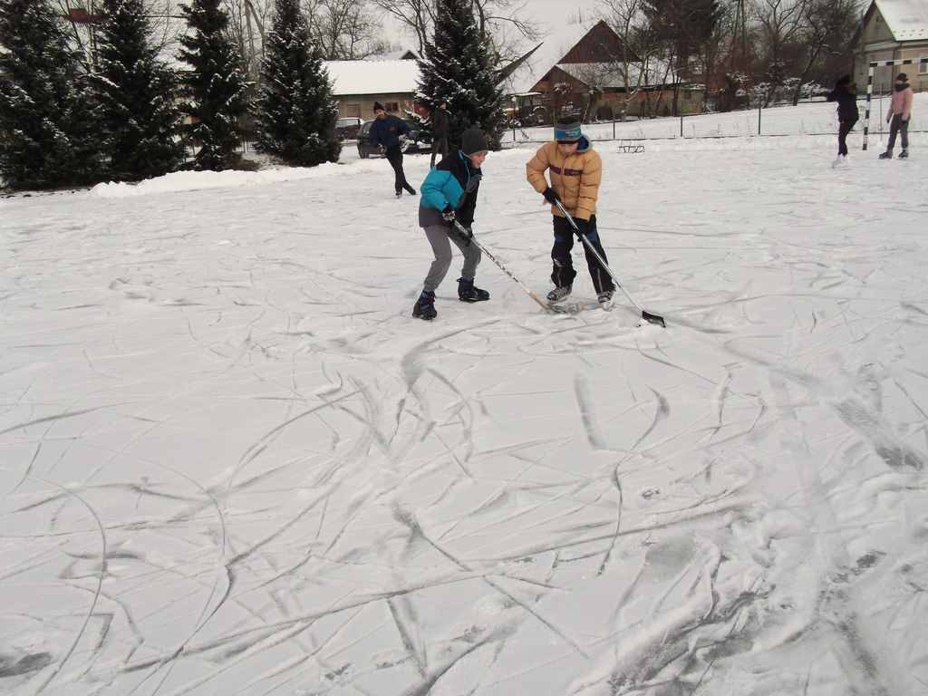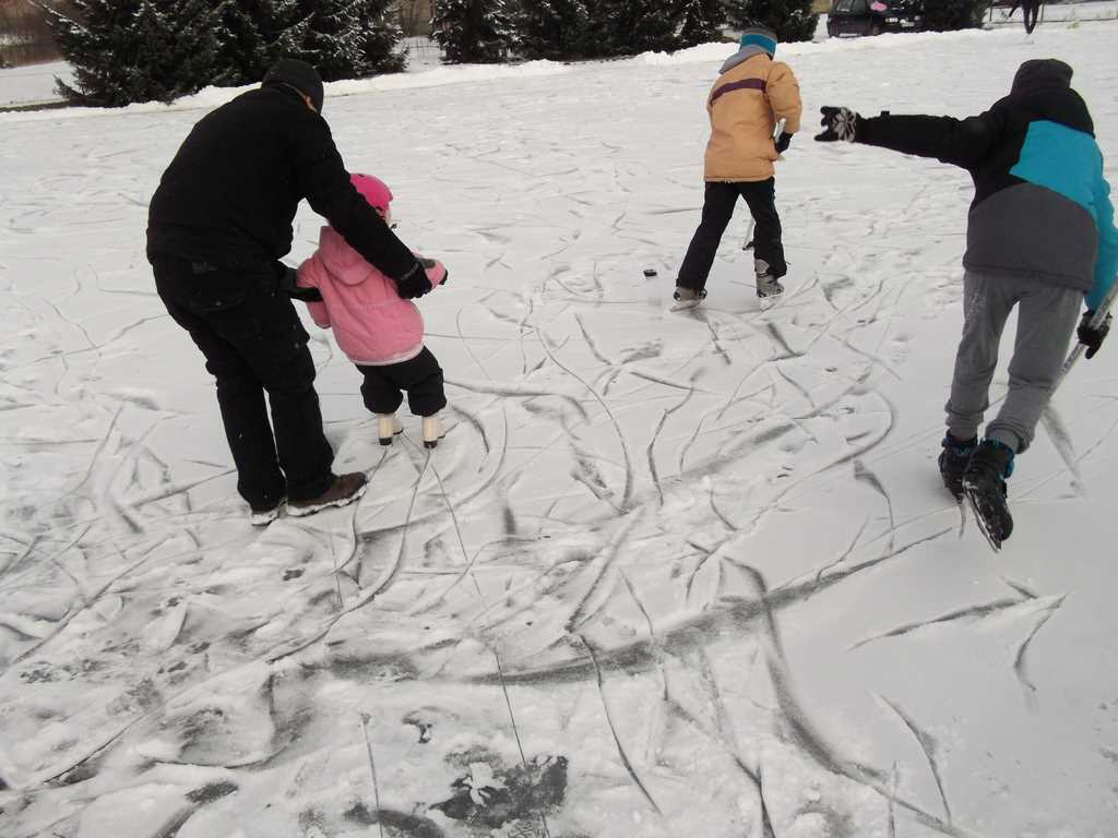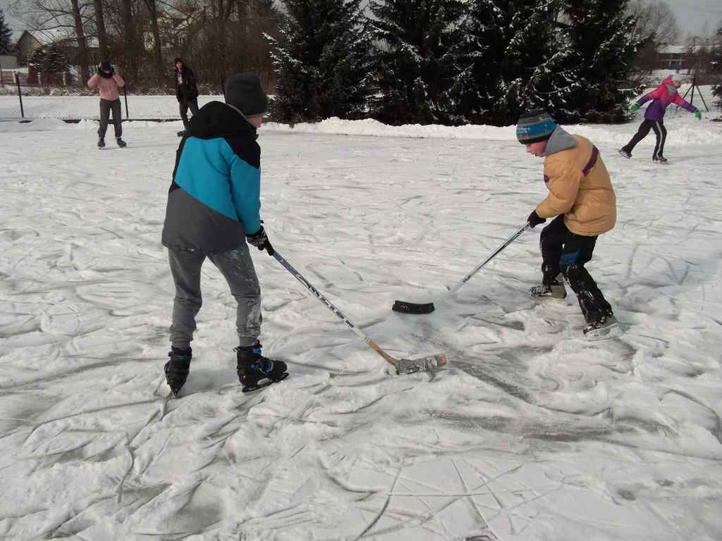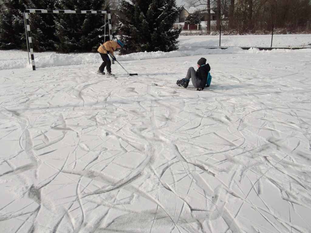 Wprawdzie dopiero w ostatnim dniu ferii, ale jednak zima postanowiła przypomnieć nam, że jest – panujący na dworze mróz pozwolił panu Stanisławowi Nowakowi i jego ekipie wspomagającej na wszczęcie działań zmierzających do wykonania na szkolnym boisku asfaltowym lodowiska, o którym wielu naszych uczniów marzyło już od listopada. Jednym z głównych celów budowy lodowiska było stworzenie warunków do bezpiecznych zabaw, gier i jazdy na łyżwach bez zagrożenia załamania się lodu, jakie występuje przy korzystaniu z zamarzniętych naturalnych zbiorników wodnych takich jak stawy, jeziora czy rzeki. Prace nad tworzeniem lodowiska rozpoczęły się w sobotnie popołudnie, a już po niedzielnym obiedzie plac zaroił się od miłośników ślizgania. Tych, którzy jeszcze grzeją się w domowym ciepełku zapraszamy serdecznie przypominając, że żaden mróz nie trwa wiecznie 🙂