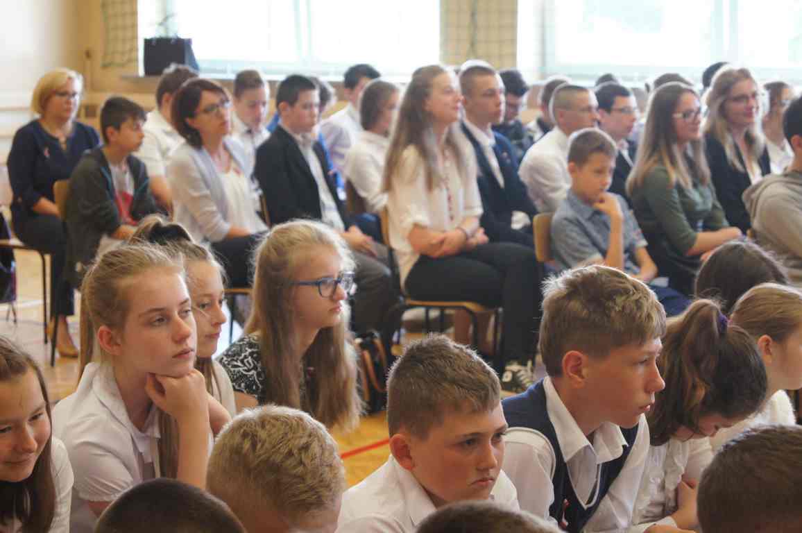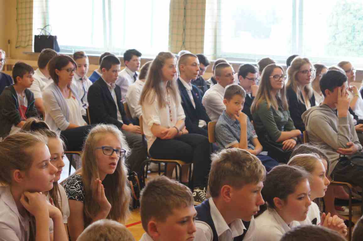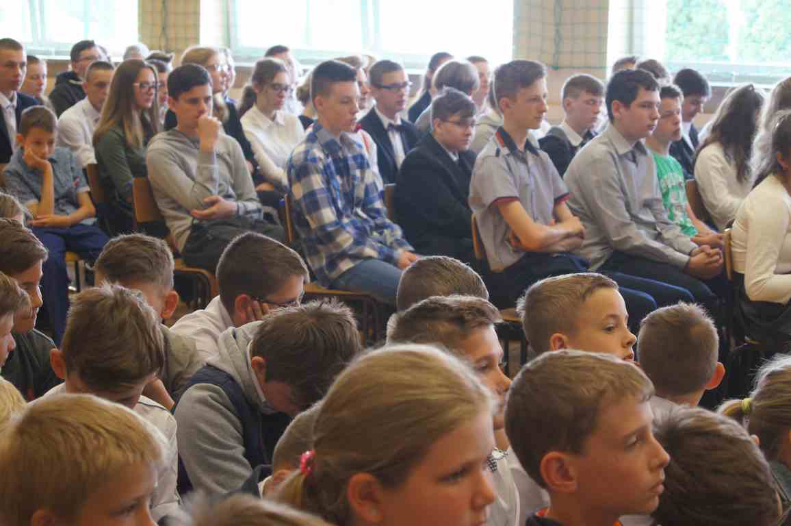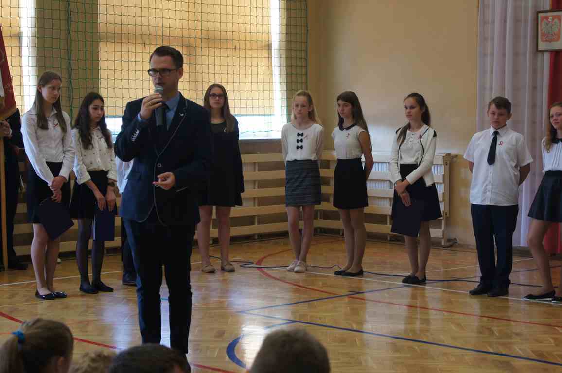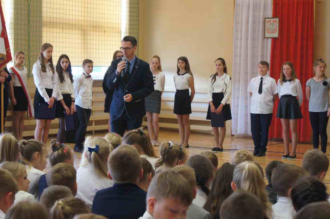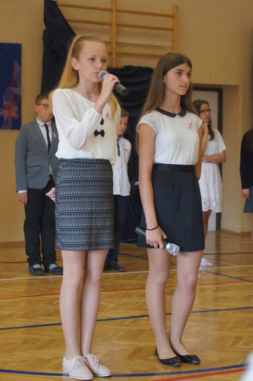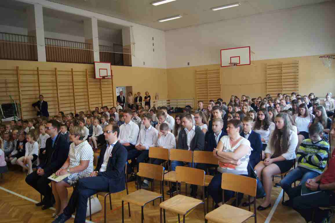 Uroczysty apel z tej okazji przygotowali uczniowie klasy VI, VII i oddziałów gimnazjalnych pod opieką pani Lucji Kołaczyńskiej. Występujący w ciekawy sposób przybliżyli główne założenia Konstytucji 3 Maja oraz historię jej powstania. Uroczysty nastrój podkreślały recytowane fragmenty poezji, a także piękne pieśni patriotyczne, wśród których gromkie brawa otrzymały „Polskie skrzydła” brawurowo wykonane przez uczennicę klasy III OG, Martynę Nowak. Zebrani mieli również okazję  obejrzeć prezentację slajdów z obrazami  najważniejszych wydarzeń z dziejów naszego narodu.