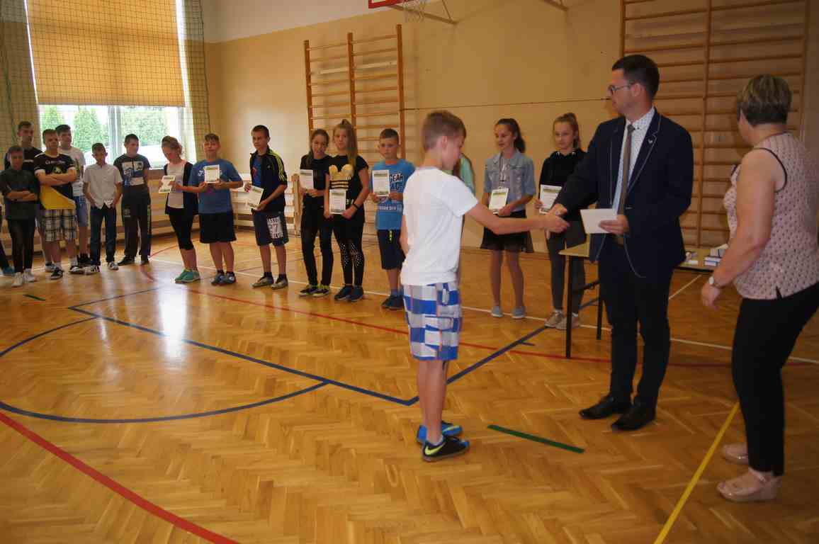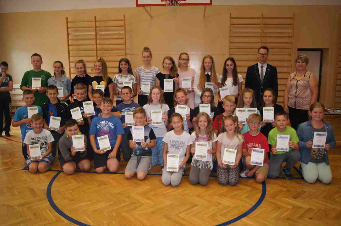 Korzenie wiedzy są gorzkie, ale jej owoce słodkie… Dziś o słuszności tego powiedzenia przekonało się prawie 50 uczniów, którzy przez cały rok szkolny pracowali ciężko i systematycznie, co dało efekty w postaci średniej ocen 4,75 i wyżej oraz dbali o to, by uzyskać wzorową lub bardzo dobrą ocenę z zachowania. Wszyscy oni otrzymali z rąk wójta, pana Tomasza Banka, Nagrodę Wójta Gminy Wietrzychowice. W ramach nagrody dzień przed zakończeniem roku szkolnego „paskowicze” spędzili na ufundowanej przez Urząd Gminy wycieczce w Bałtowie. Z ich relacji wynika, że było tak cudownie, iż nie przeszkadzał im nawet panujący upał. Gratulujemy osiągniętych wyników, cieszymy się, że spora grupa dzieci i młodzieży pracuje pilnie przez cały rok i mamy nadzieję, że w przyszłym będzie ich jeszcze więcej 🙂 Jak widać – warto 🙂