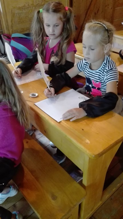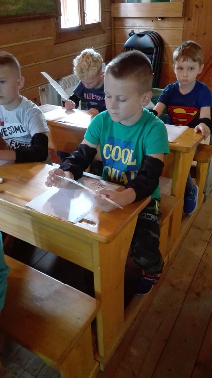 18 września uczniowie klasy I odbyli swoją pierwszą wycieczkę do niedalekich Wierzchosławic, gdzie znajduje się Muzeum Wincentego Witosa. Pierwszoklasiści wzięli tam udział w warsztatach poświęconych sztuce kaligrafii. Najpierw poznali historię piśmiennictwa oraz wysłuchali fragmentów pamiętnika premiera Polski Wincentego Witosa, zaś w części  warsztatowej uczyli się pisać używając gęsiego pióra i kałamarza, co okazało się dosyć trudną sztuką 🙂 W dalszej części warsztatów dzieci udały się do gabinetu Wincentego Witosa. Ich zadaniem było  odnalezienie pism pisanych kaligrafią. Warsztaty zostały zakończone wykonaniem pięknych pamiętników, z którymi zadowoleni i uśmiechnięci pierwszoklasiści wrócili do domów.