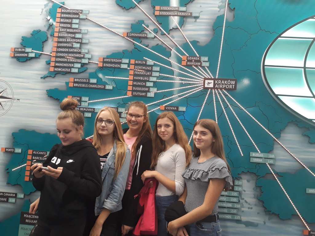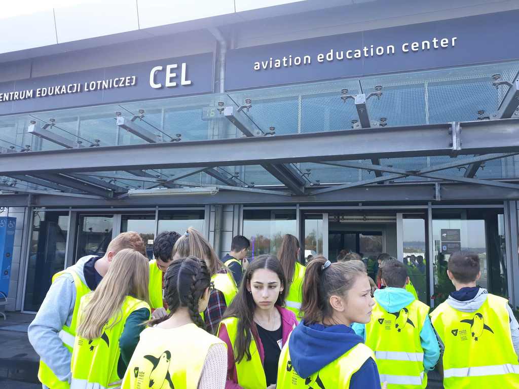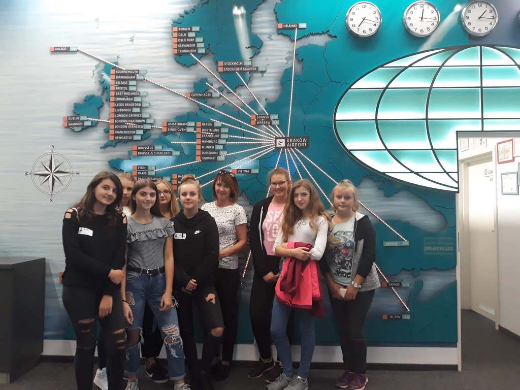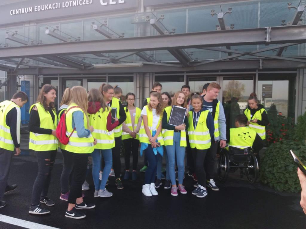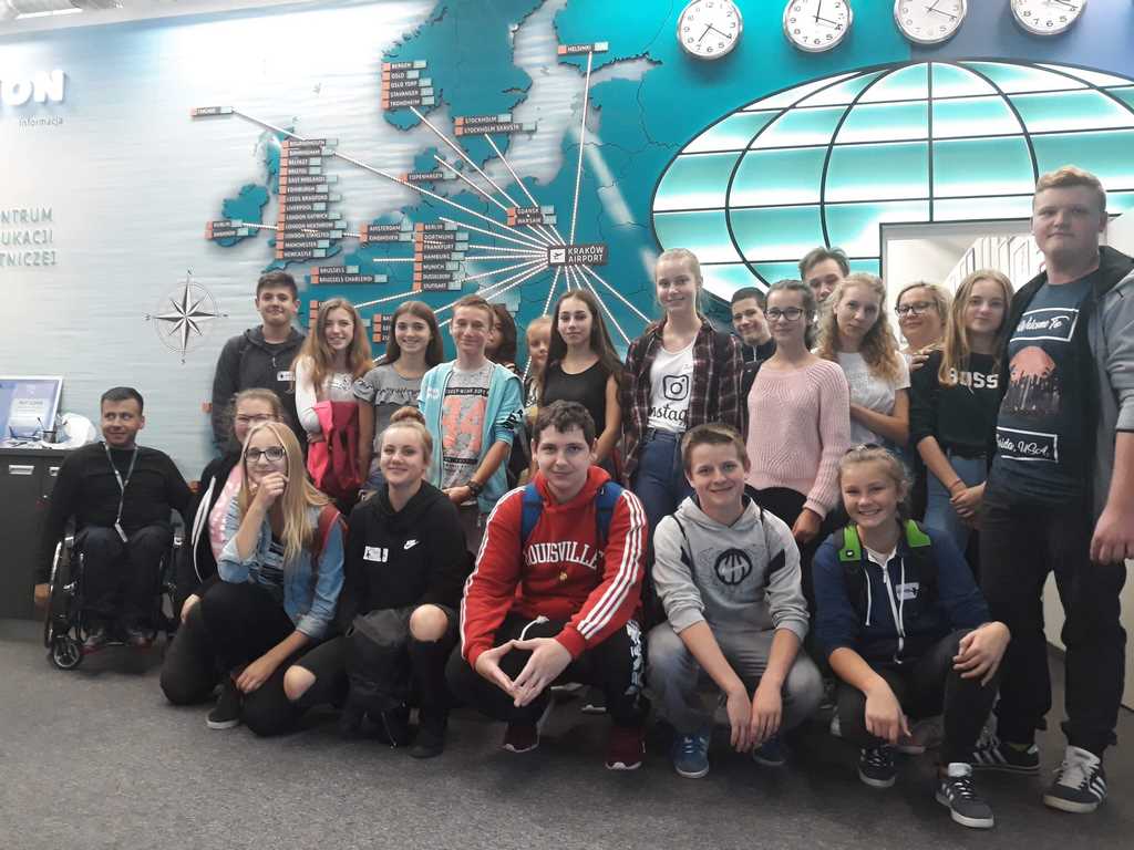 17 października uczniowie klasy VIII wraz z kilkorgiem koleżanek i kolegów z gimnazjum udali się na wycieczkę do Centrum Edukacji Lotniczej w Krakowie – Balicach. W czasie zajęć dowiedzieli się o funkcjonowaniu lotniska, jego zasięgu i przepustowości oraz możliwościach przylotów i odlotów z niego, a także o tym, jak przebiega ścieżka pasażera z bagażem rejsowym.