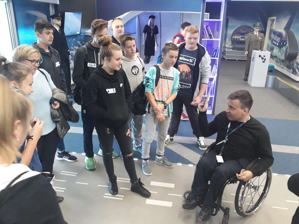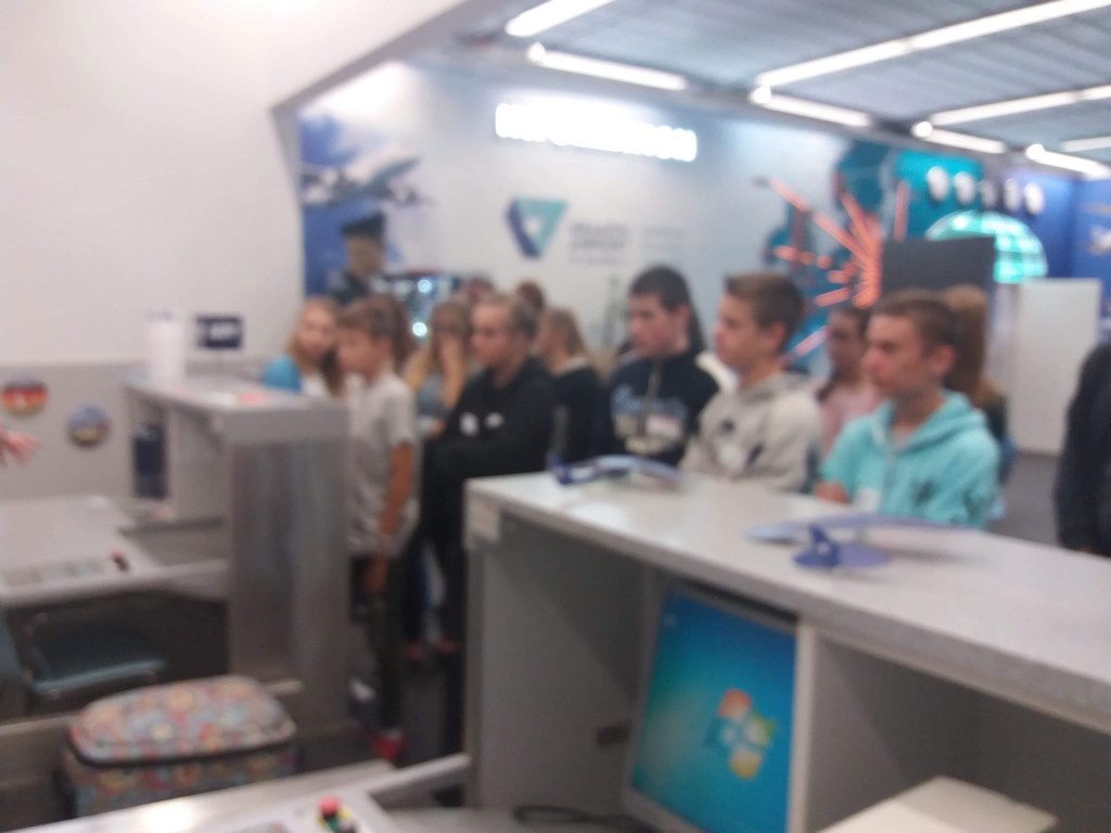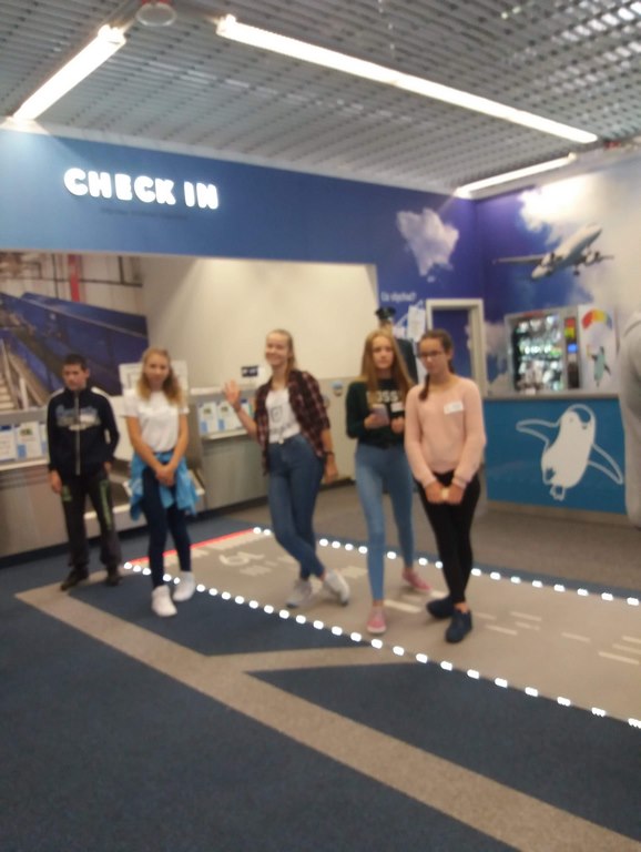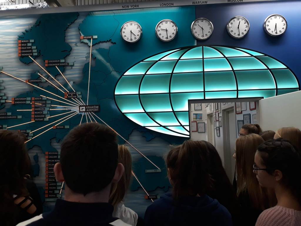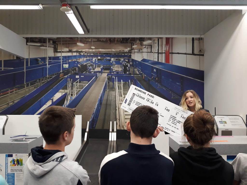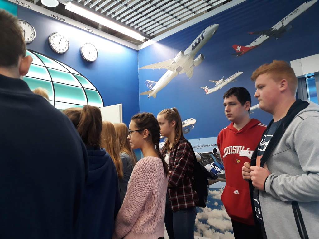 17 października uczniowie klasy VIII wraz z kilkorgiem koleżanek i kolegów z gimnazjum udali się na wycieczkę do Centrum Edukacji Lotniczej w Krakowie – Balicach. W czasie zajęć dowiedzieli się o funkcjonowaniu lotniska, jego zasięgu i przepustowości oraz możliwościach przylotów i odlotów z niego, a także o tym, jak przebiega ścieżka pasażera z bagażem rejsowym.