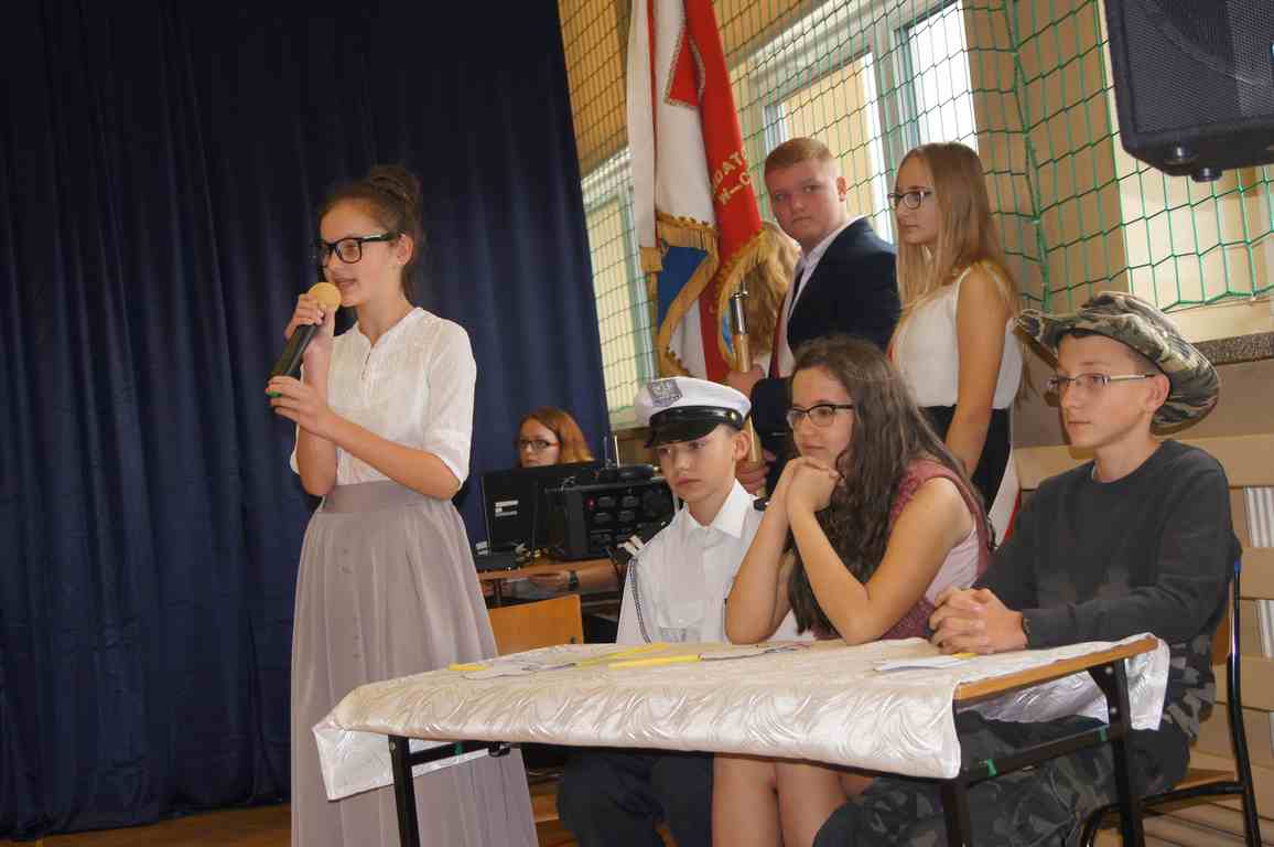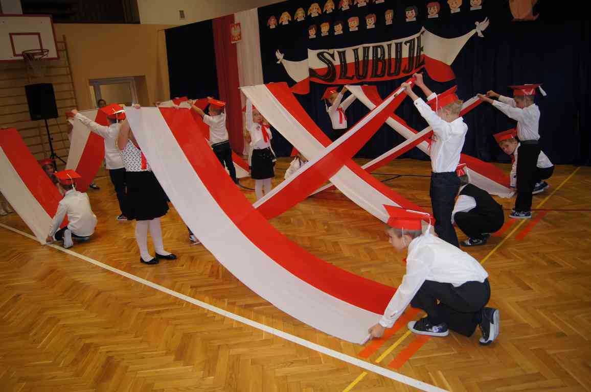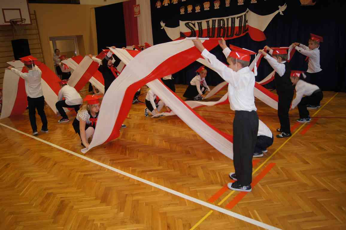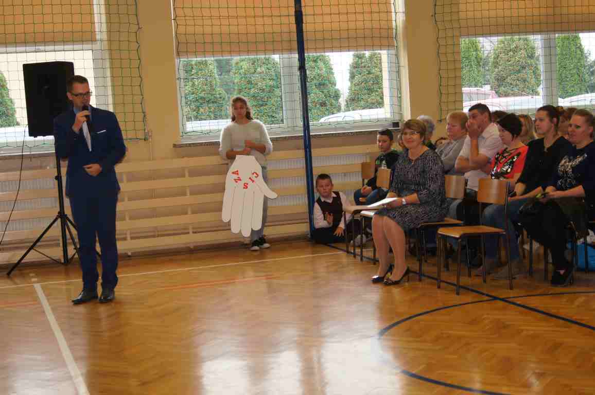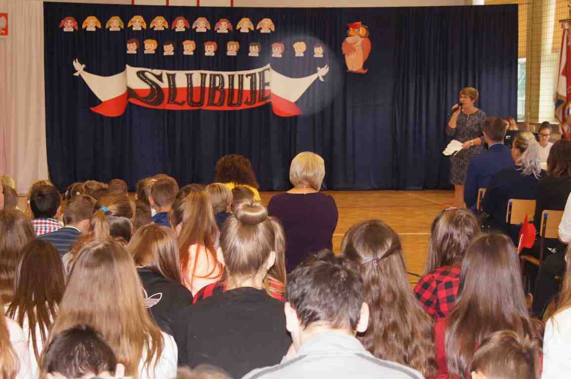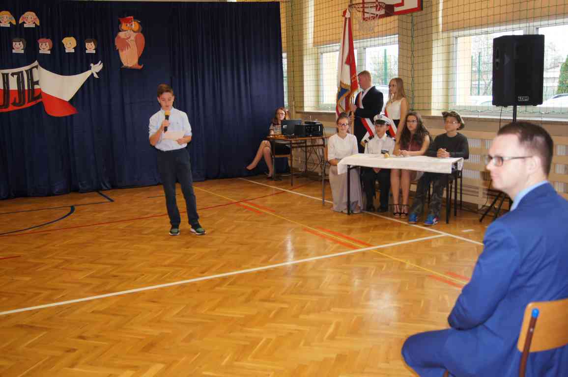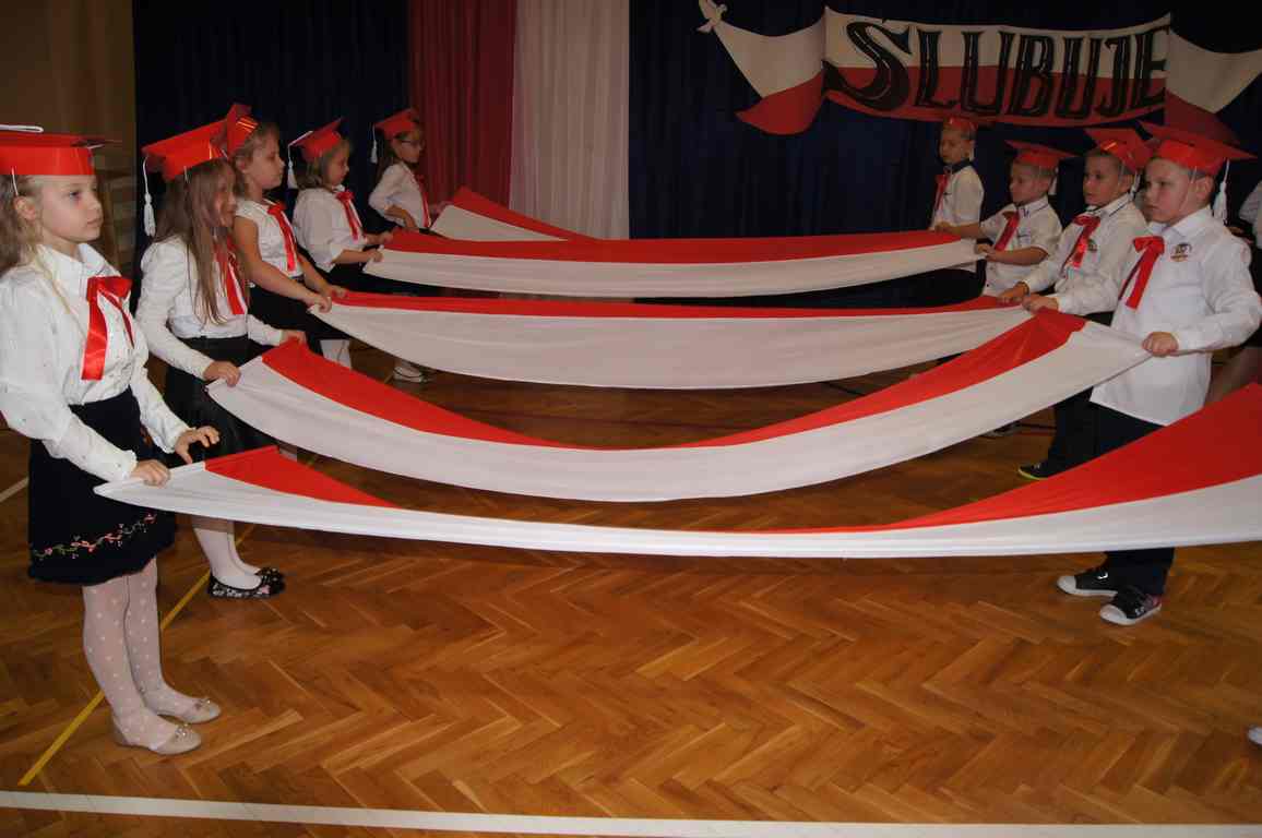 Uroczystość pierwszoklasistów zgromadziła w sali gimnastycznej uczniów, rodziców i nauczycieli. Swoją obecnością uświetnił ją również Wójt Gminy Wietrzychowice, pan Tomasz Banek. Wszyscy bacznie przyglądali się, czy nasi najmłodsi zasługują na miano prawdziwych uczniów. Jak się okazało, zasługują w pełni. Dziewczynki i chłopcy, odświętnie ubrani i bardzo przejęci zaprezentowali pełną gamę swoich możliwości i umiejętności – śpiewali piosenki, recytowali wiersze, rozpoznawali znaki drogowe i wykazali się wiedzą na temat zdrowego odżywiania. Najwięcej emocji bez wątpienia wzbudził piękny taniec, nawiązujący do obchodzonej w bieżącym roku rocznicy 100 – lecia Odzyskania Niepodległości – dopracowany w każdym szczególe, precyzyjny i niezwykle wymowny. Po takim występie nikt z zebranych nie miał żadnych wątpliwości, co do umiejętności najmłodszej grupy w szkole, zatem z prawdziwą przyjemnością pani dyrektor wraz z panem wójtem przeszli do punktu kulminacyjnego, jakim było ślubowanie i pasowanie na uczniów. Tym samym pierwszaki zostały włączone do społeczności uczniowskiej Szkoły Podstawowej im. Stanisława Miłkowskiego w Wietrzychowicach, czego dowodem były akty pasowania na ucznia wręczone dzieciom po pasowaniu.
