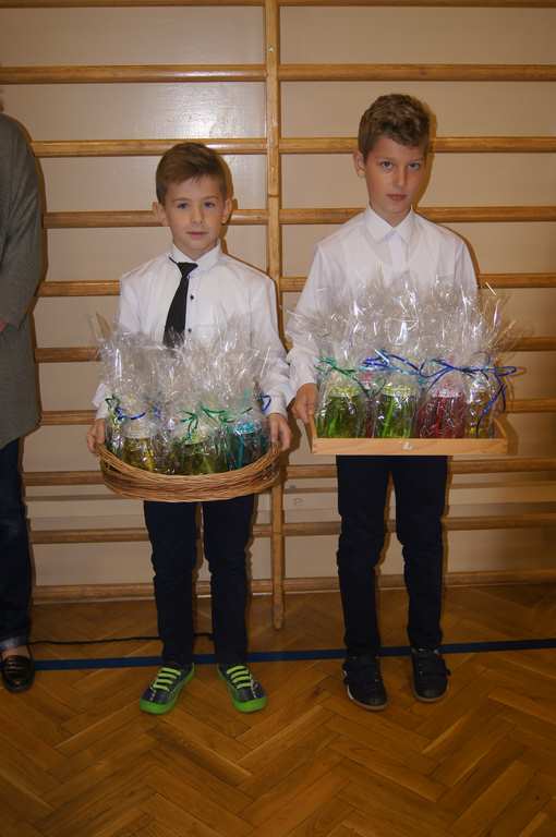 Jednym z najmilszych momentów dla pierwszoklasistów są oczywiście prezenty, które otrzymują w dniu pasowania, zatem zanim wykonano pamiątkowe zdjęcie, dzieciaki odebrały upominki od przedszkolaków, kolegów z klasy II i oczywiście Rady Rodziców. Zarówno słodycze, jak i przybory szkolne bardzo się im podobały.