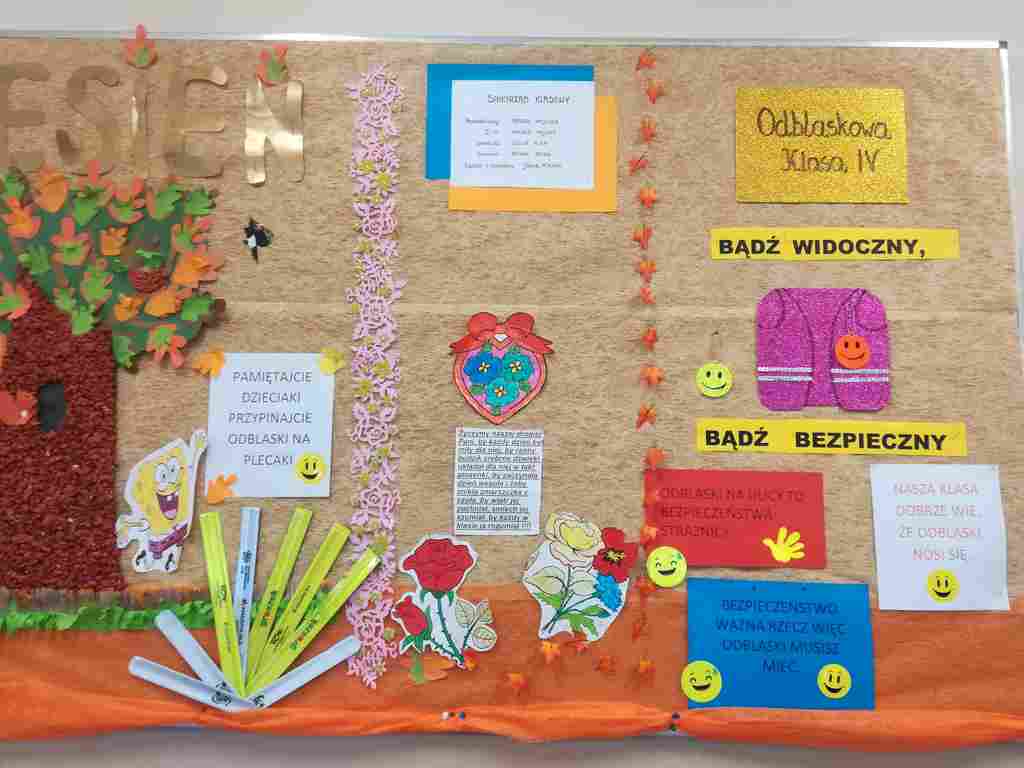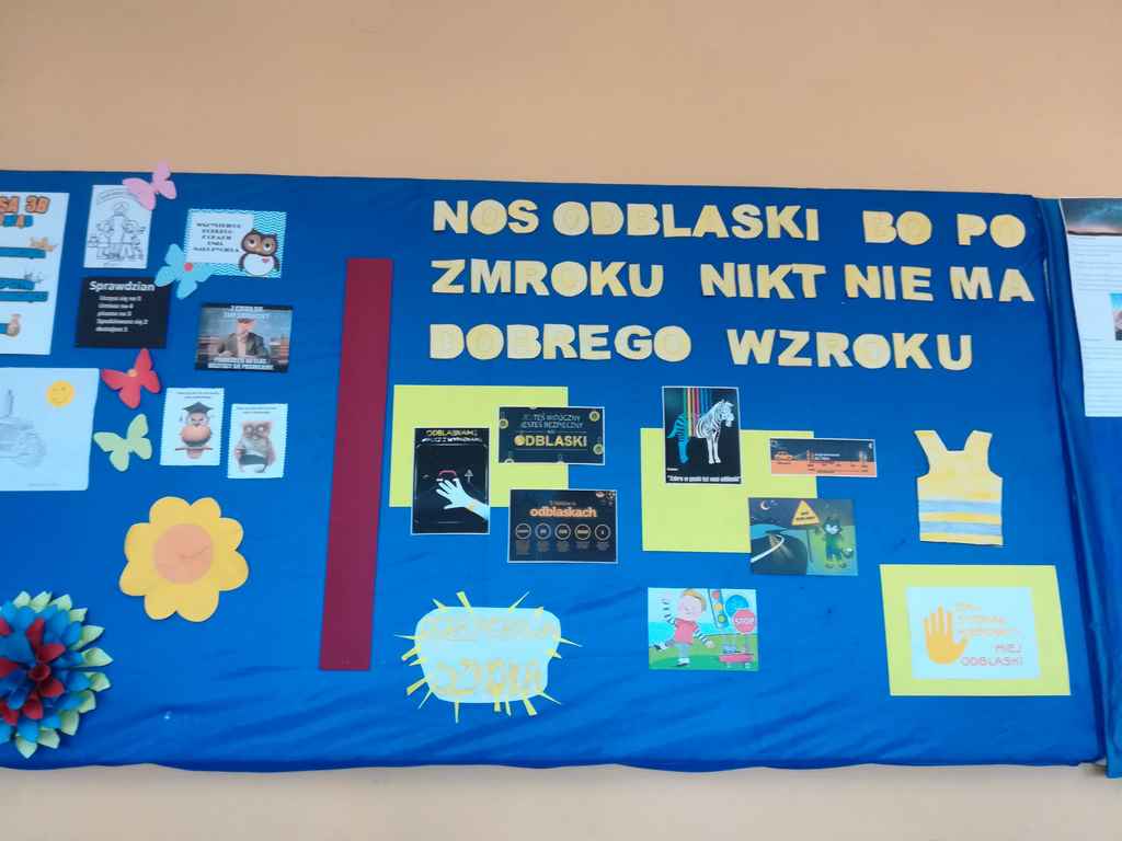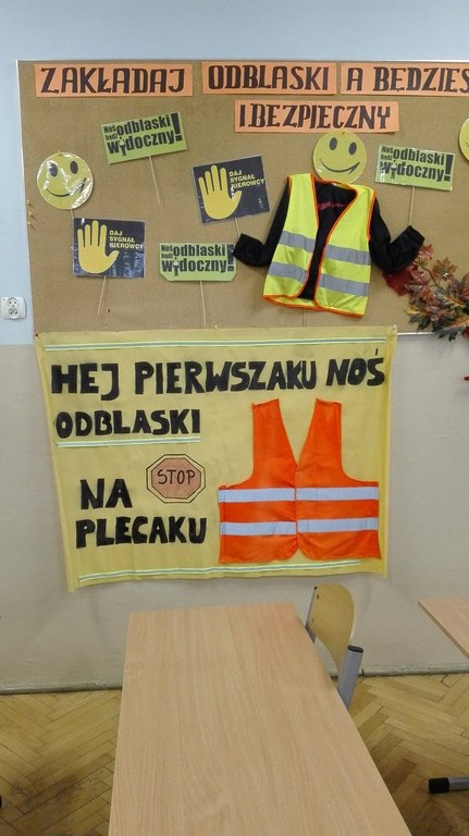 Oprócz prowadzonych lekcji o bezpieczeństwie wszyscy wychowawcy wraz ze swoimi wychowankami przygotowali gazetki ścienne w swoich klasach. Były to gazetki promujące ideę konkursu i zachęcające do noszenia kamizelek i odblasków poruszając się na drogach szczególnie w drodze do i ze szkoły, oraz w godzinach popołudniowych.