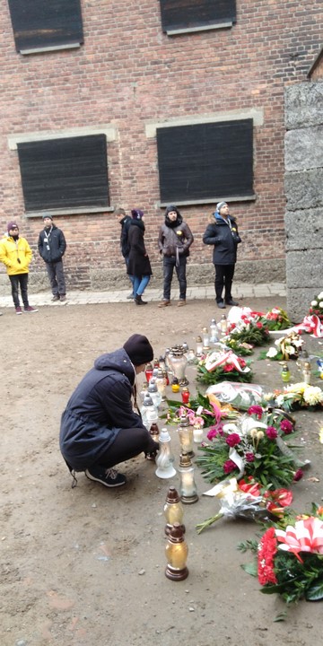 Pod ścianą straceń uczniowie zapalili znicze i chwilą ciszy uczcili pamięć ponad miliona osób, które zginęły w Oświęcimiu.