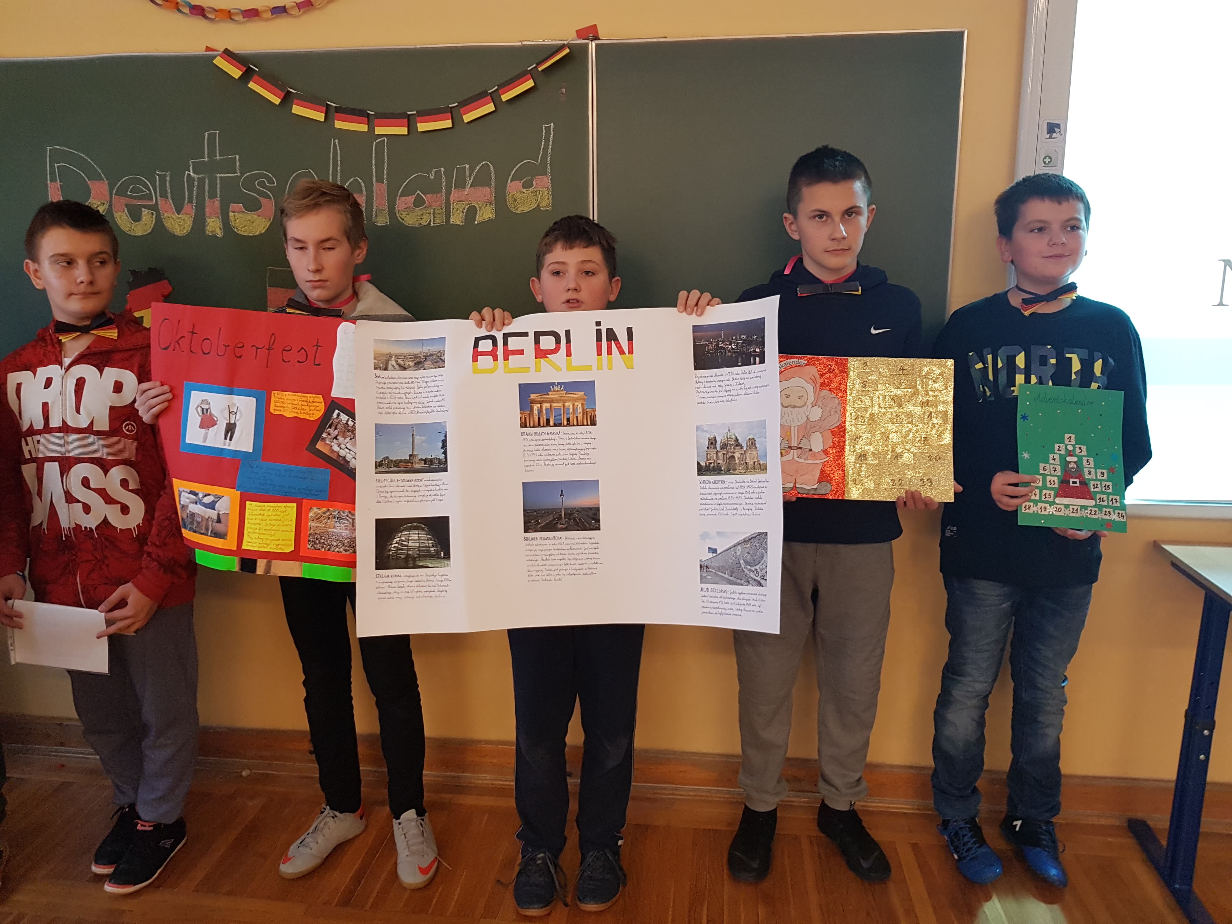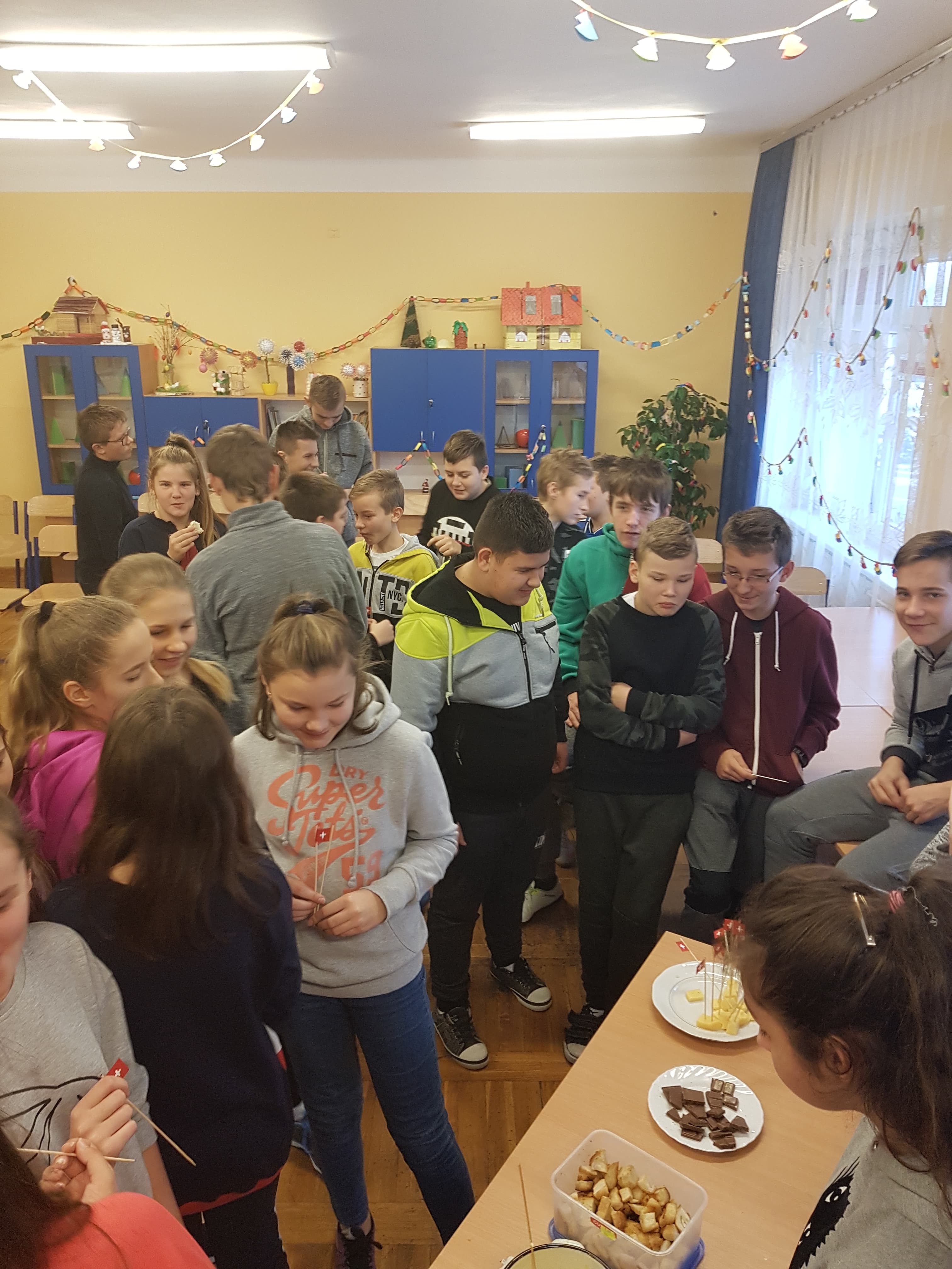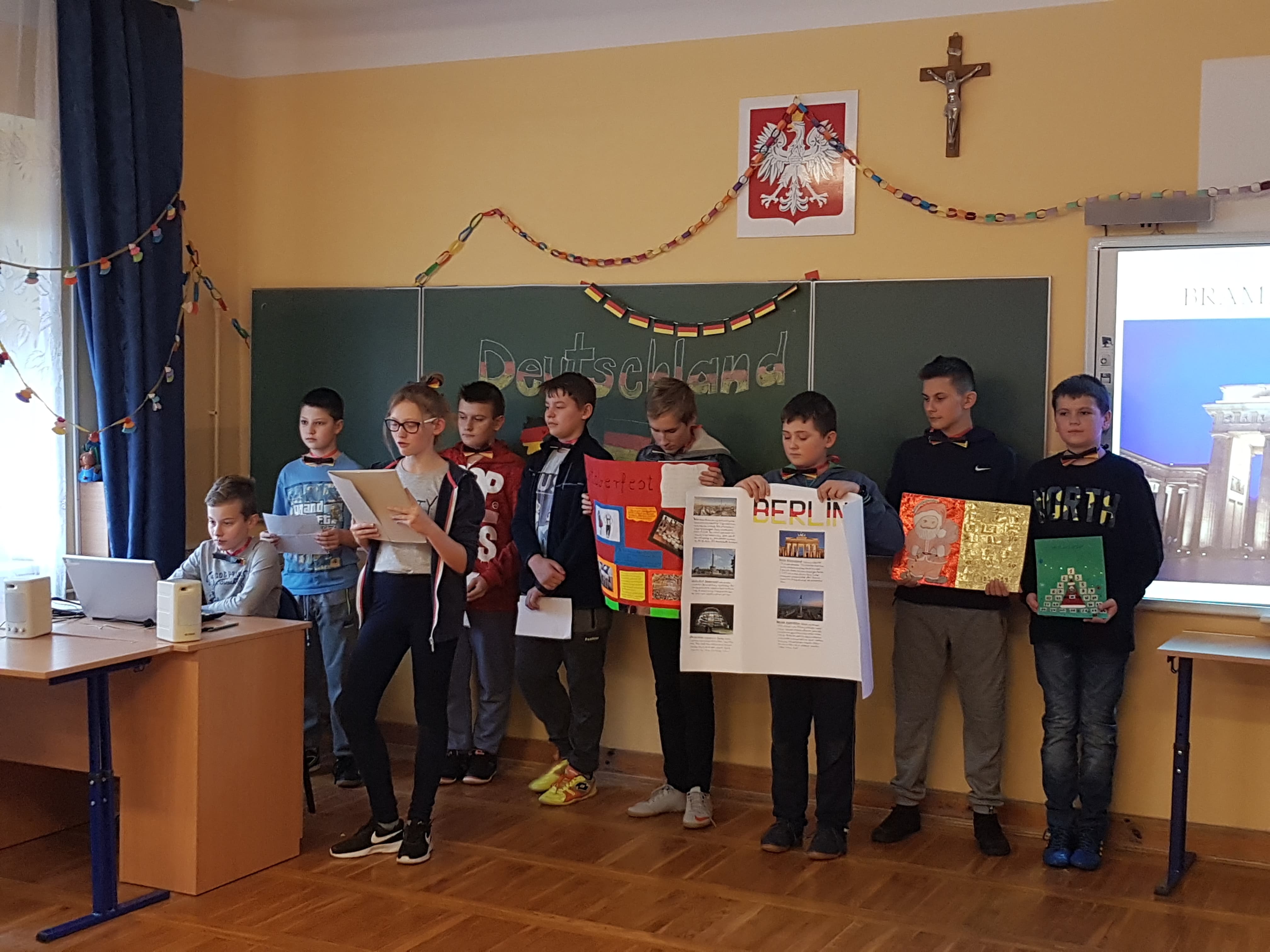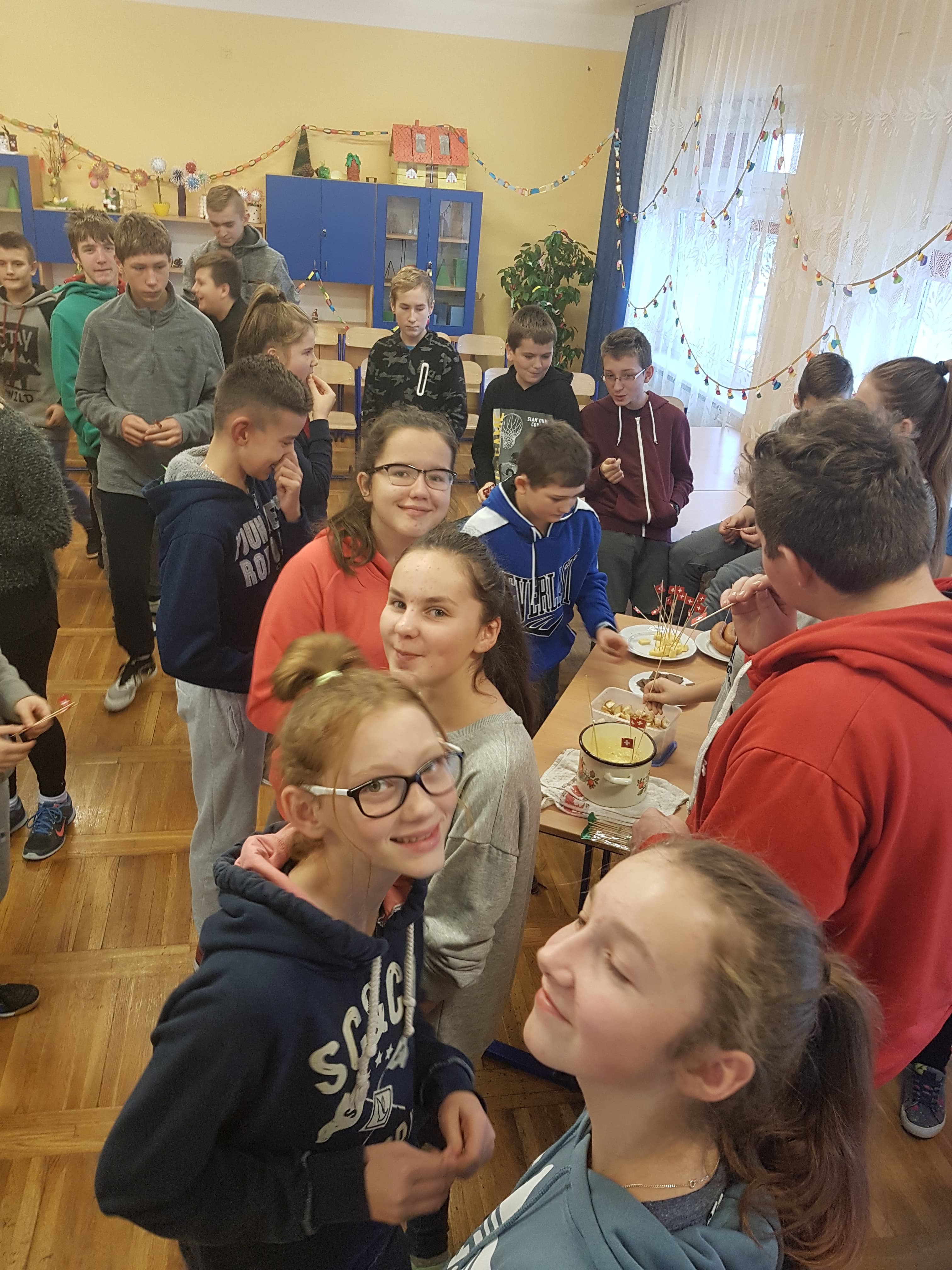 Klasa 7a, 7b i 8 uczestniczyły w projekcie języka niemieckiego „Co wiesz o krajach DACH?”. Zadaniem każdej klasy było przedstawienie kultury i tradycji wylosowanego państwa niemieckojęzycznego (Austria, Niemcy, Szwajcaria). Uczniowie wykazali się dużym zaangażowaniem w przydzielone im zadania i zaskakującą kreatywnością. Podczas pokazowych lekcji można było spotkać Alana – Żołnierza Gwardii Szwajcarskiej, Sissi – cesarzową Austrii, posłuchać utworów Bacha i Beethovena, zobaczyć najpiękniejsze miejsca krajów DACH, poznać zwyczaje adwentowe i świąteczne w Niemczech oraz (co okazało się najważniejsze) skosztować przysmaków z tych krajów np. pysznego fondue, tortu Sachera, pierniczków czy sałatki kartoflanej.