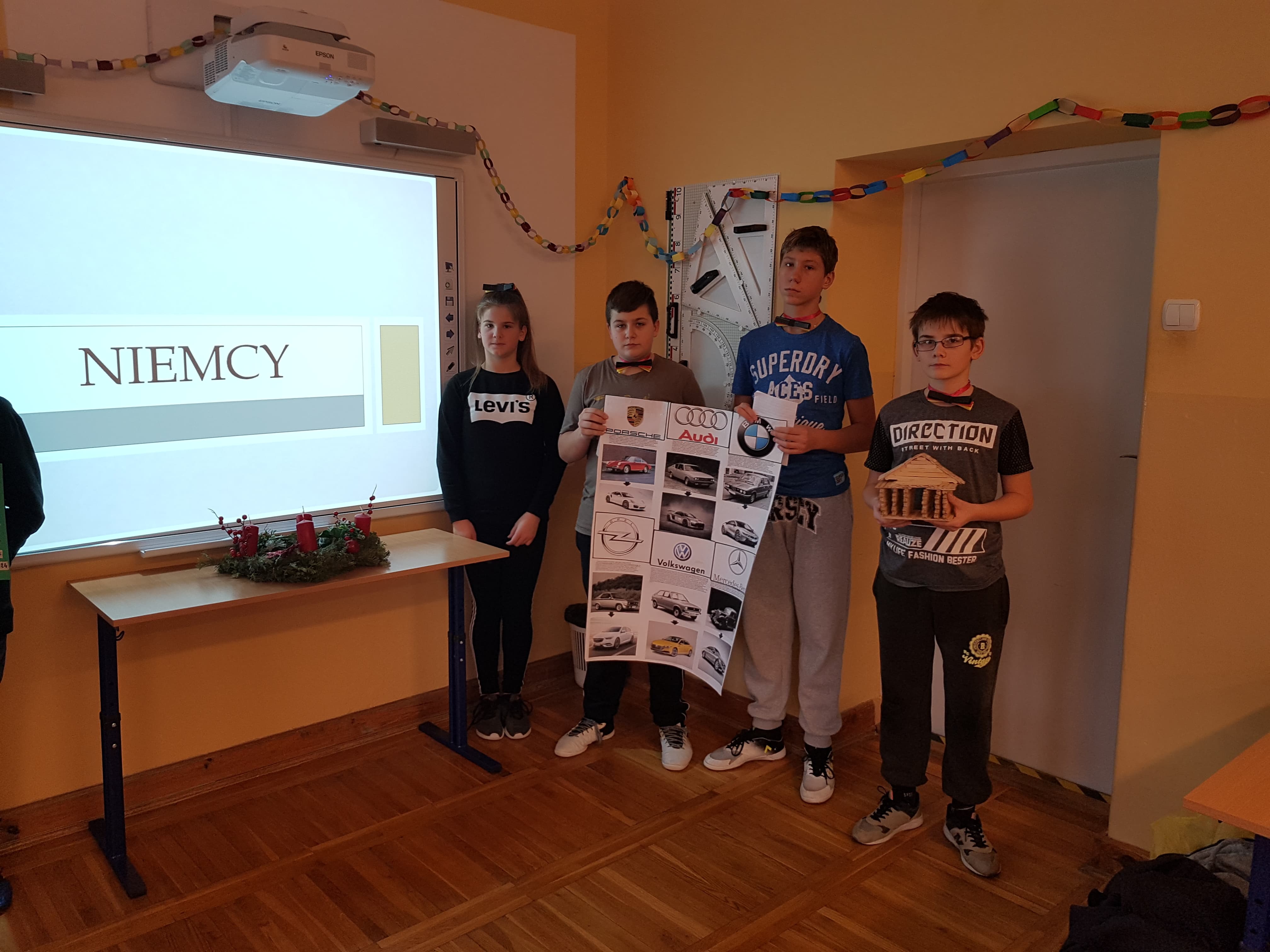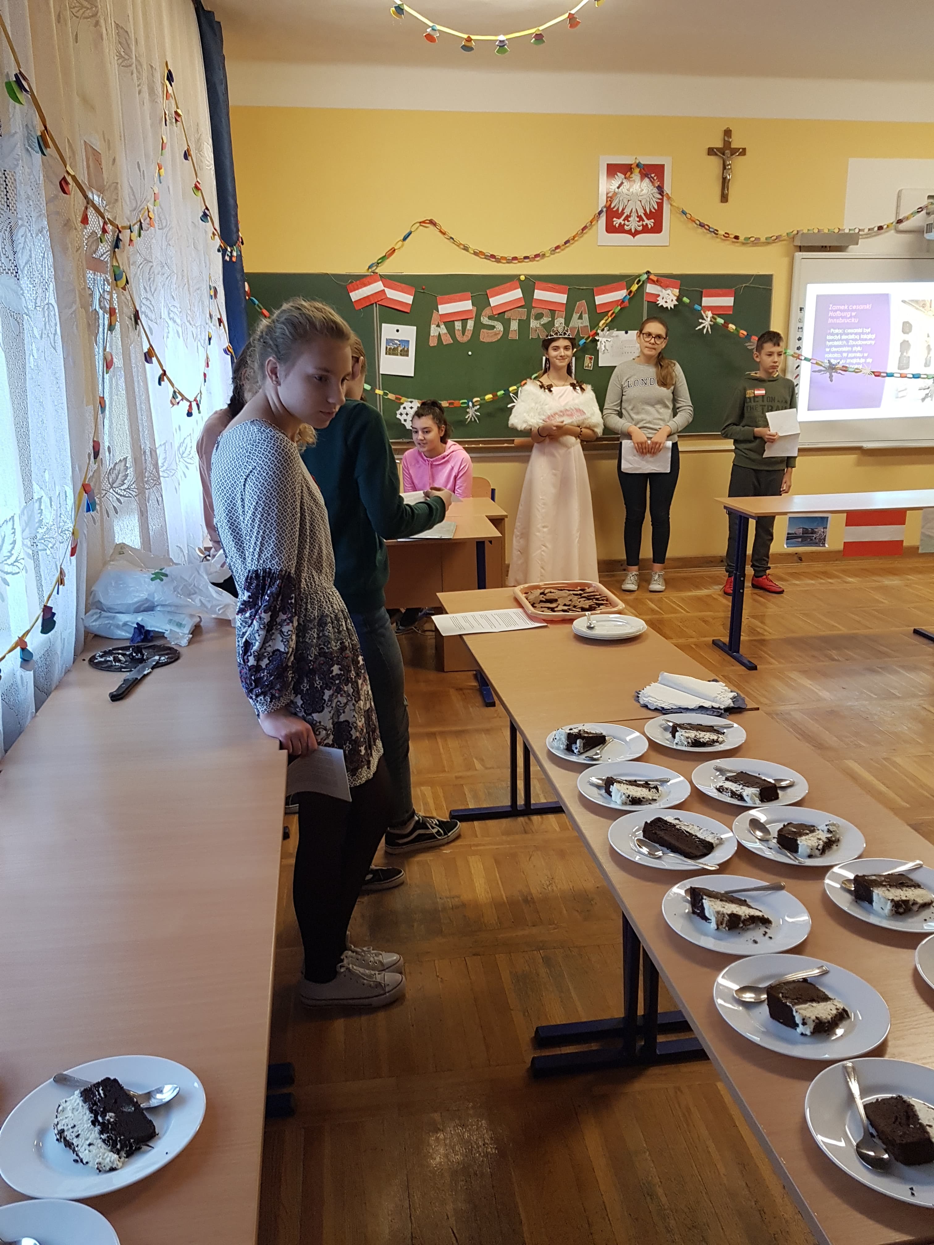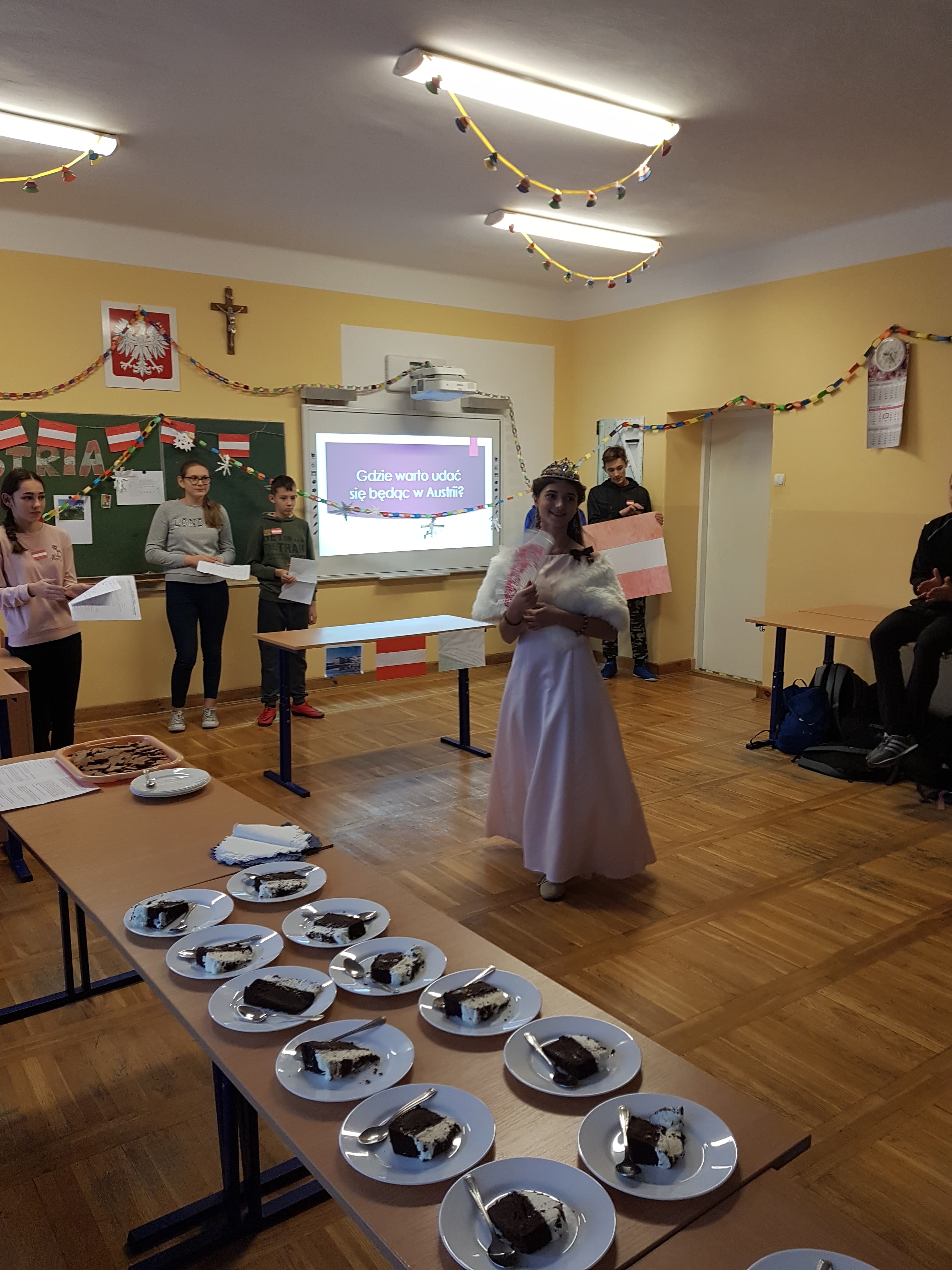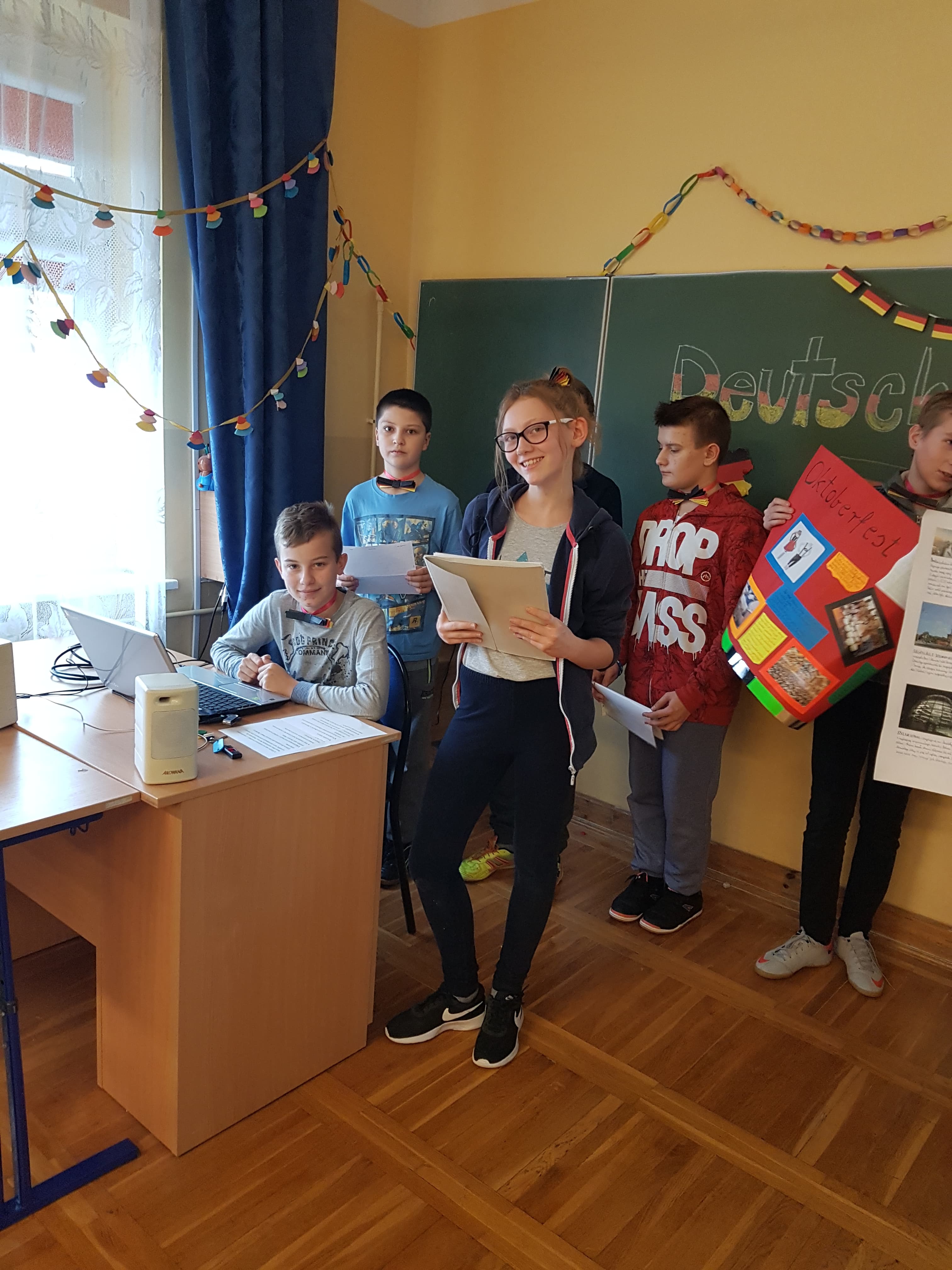 Klasa 7a, 7b i 8 uczestniczyły w projekcie języka niemieckiego „Co wiesz o krajach DACH?”. Zadaniem każdej klasy było przedstawienie kultury i tradycji wylosowanego państwa niemieckojęzycznego (Austria, Niemcy, Szwajcaria). Uczniowie wykazali się dużym zaangażowaniem w przydzielone im zadania i zaskakującą kreatywnością. Podczas pokazowych lekcji można było spotkać Alana – Żołnierza Gwardii Szwajcarskiej, Sissi – cesarzową Austrii, posłuchać utworów Bacha i Beethovena, zobaczyć najpiękniejsze miejsca krajów DACH, poznać zwyczaje adwentowe i świąteczne w Niemczech oraz (co okazało się najważniejsze) skosztować przysmaków z tych krajów np. pysznego fondue, tortu Sachera, pierniczków czy sałatki kartoflanej.