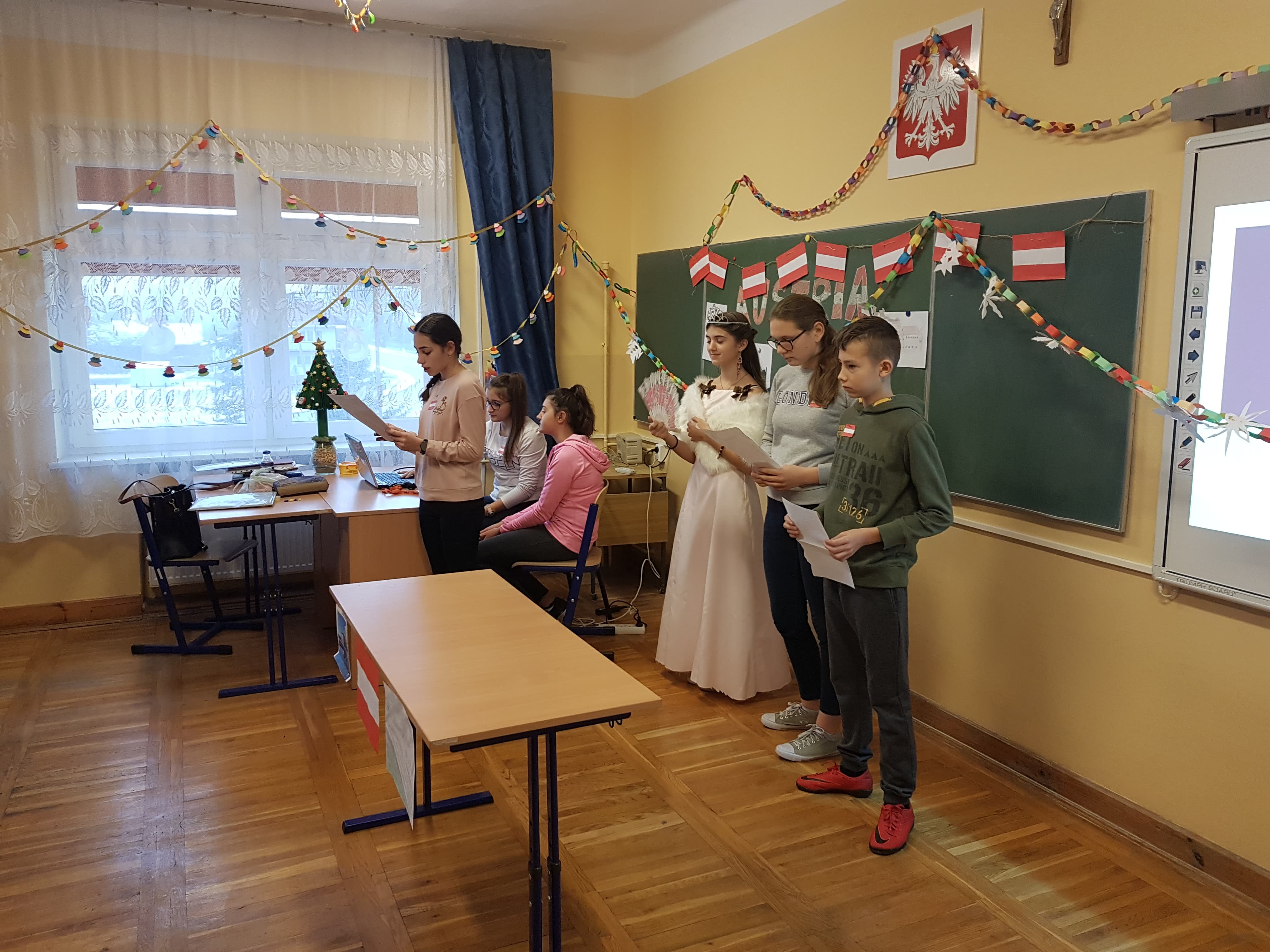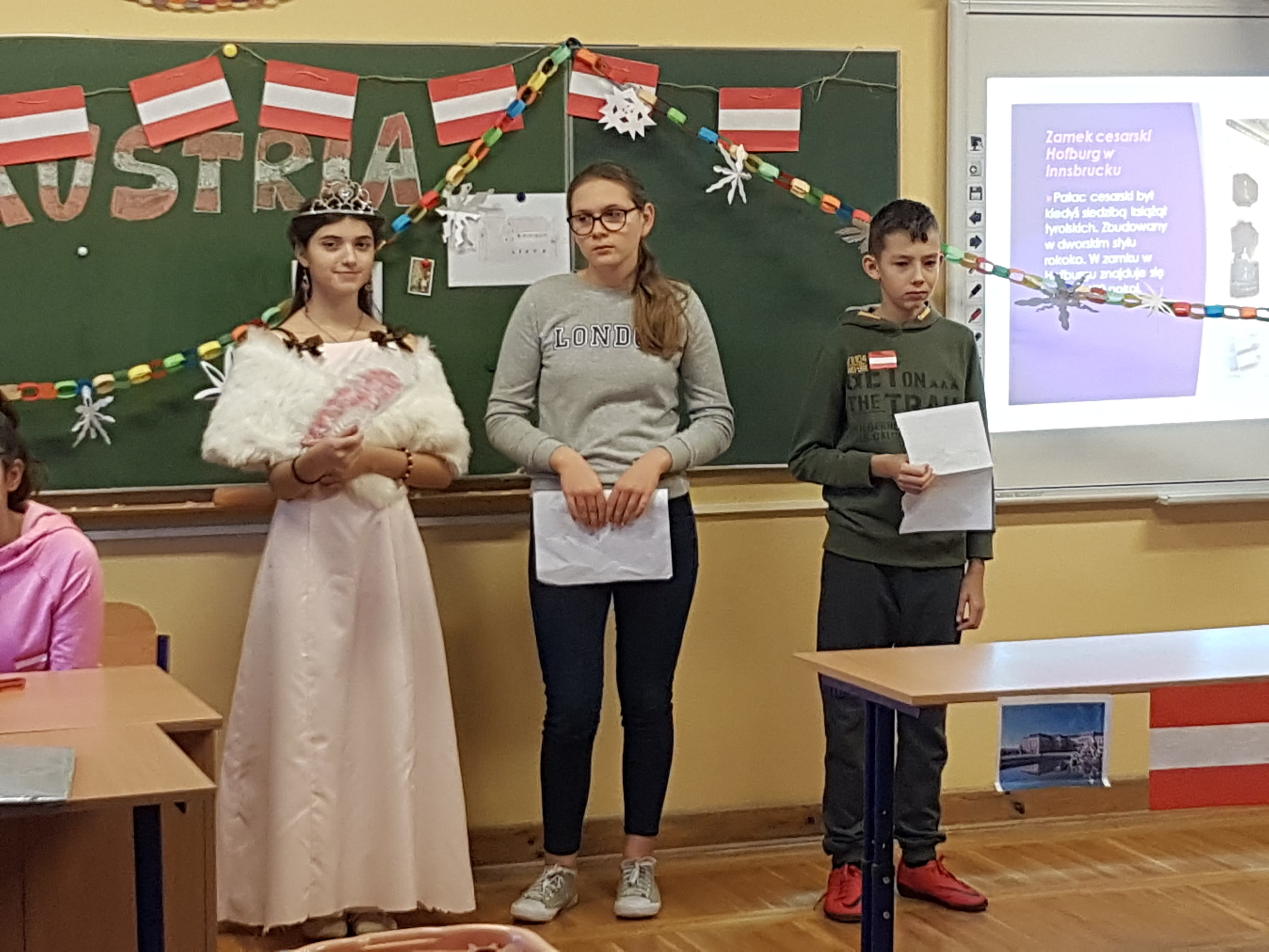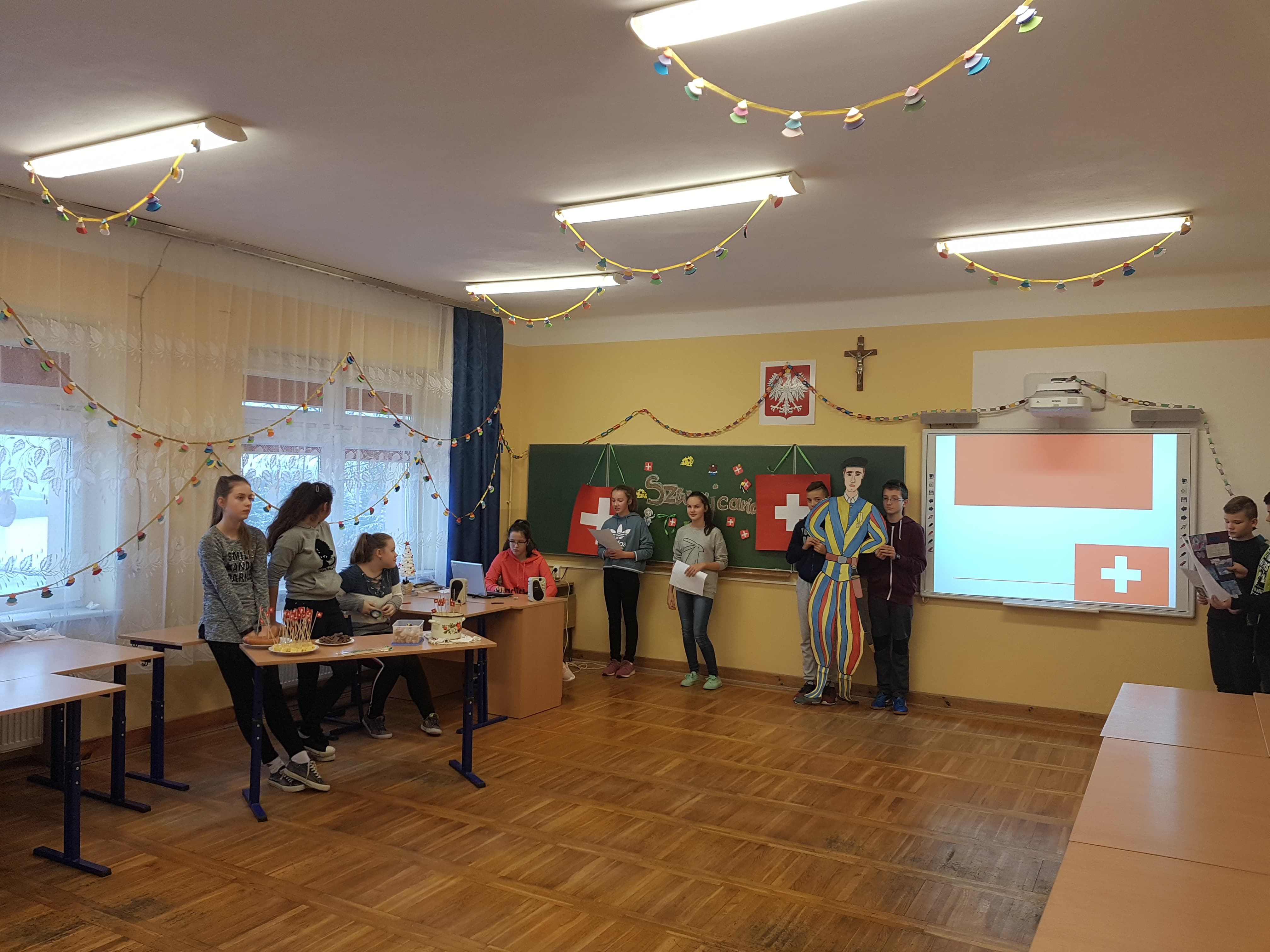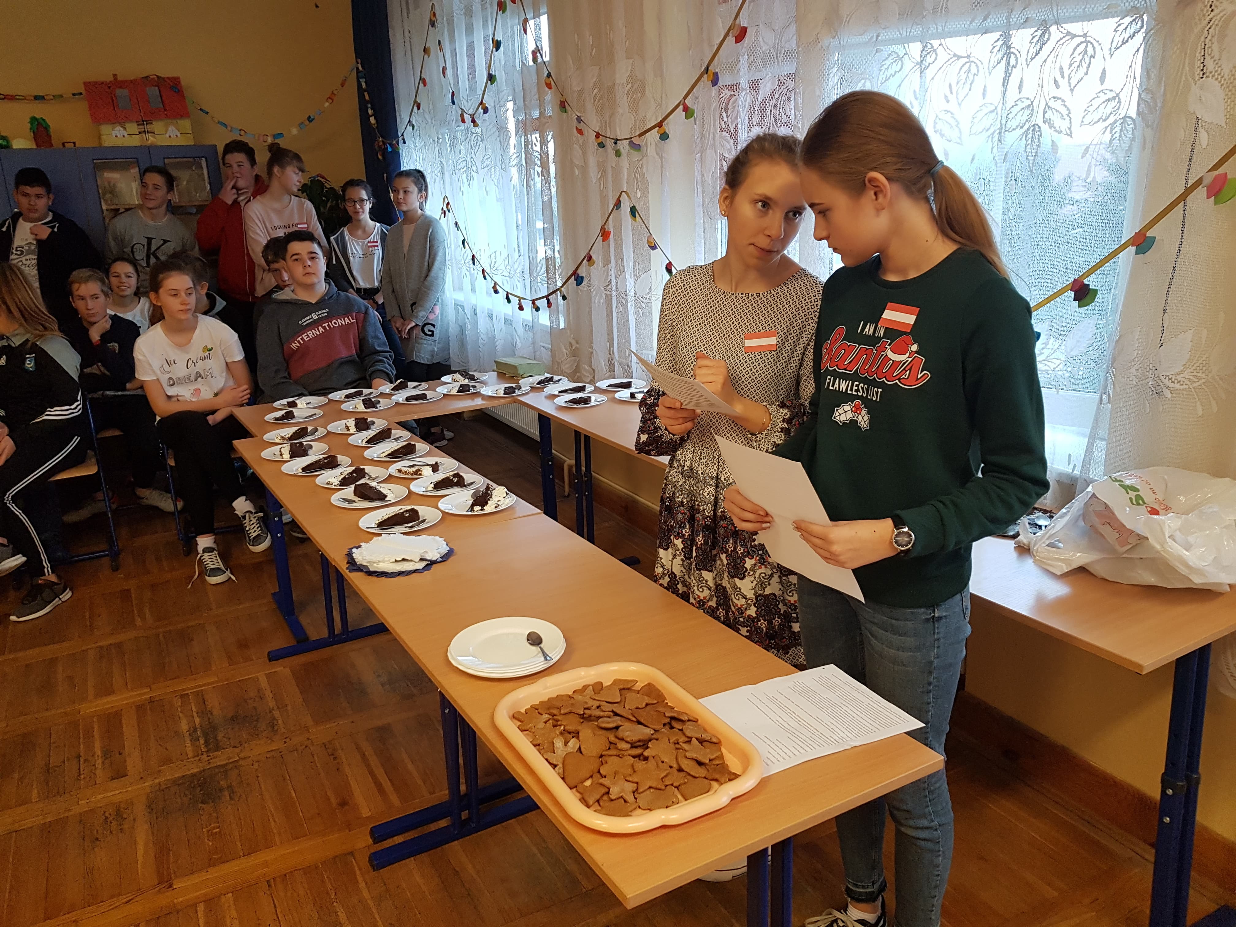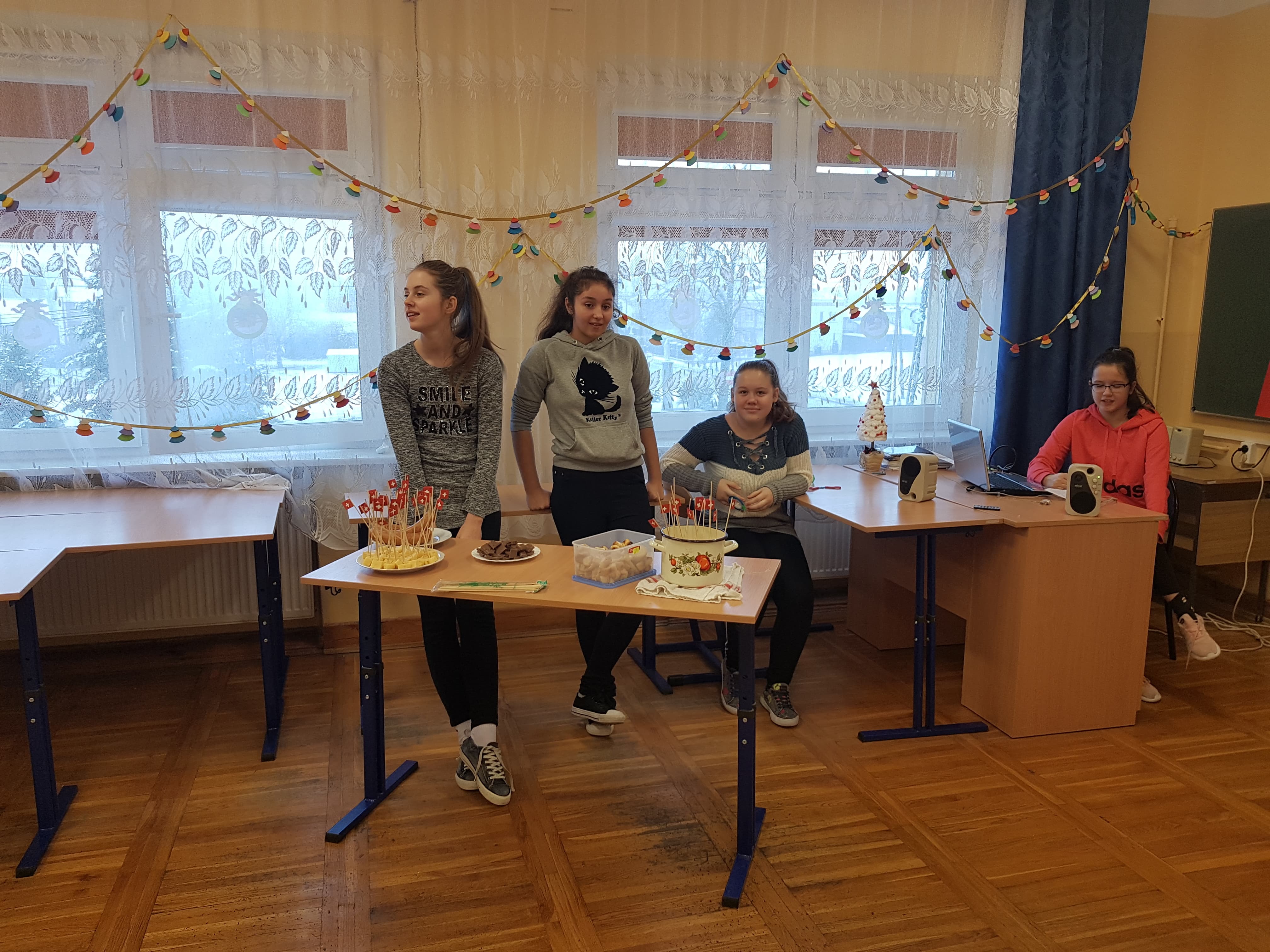 Klasa 7a, 7b i 8 uczestniczyły w projekcie języka niemieckiego „Co wiesz o krajach DACH?”. Zadaniem każdej klasy było przedstawienie kultury i tradycji wylosowanego państwa niemieckojęzycznego (Austria, Niemcy, Szwajcaria). Uczniowie wykazali się dużym zaangażowaniem w przydzielone im zadania i zaskakującą kreatywnością. Podczas pokazowych lekcji można było spotkać Alana – Żołnierza Gwardii Szwajcarskiej, Sissi – cesarzową Austrii, posłuchać utworów Bacha i Beethovena, zobaczyć najpiękniejsze miejsca krajów DACH, poznać zwyczaje adwentowe i świąteczne w Niemczech oraz (co okazało się najważniejsze) skosztować przysmaków z tych krajów np. pysznego fondue, tortu Sachera, pierniczków czy sałatki kartoflanej.