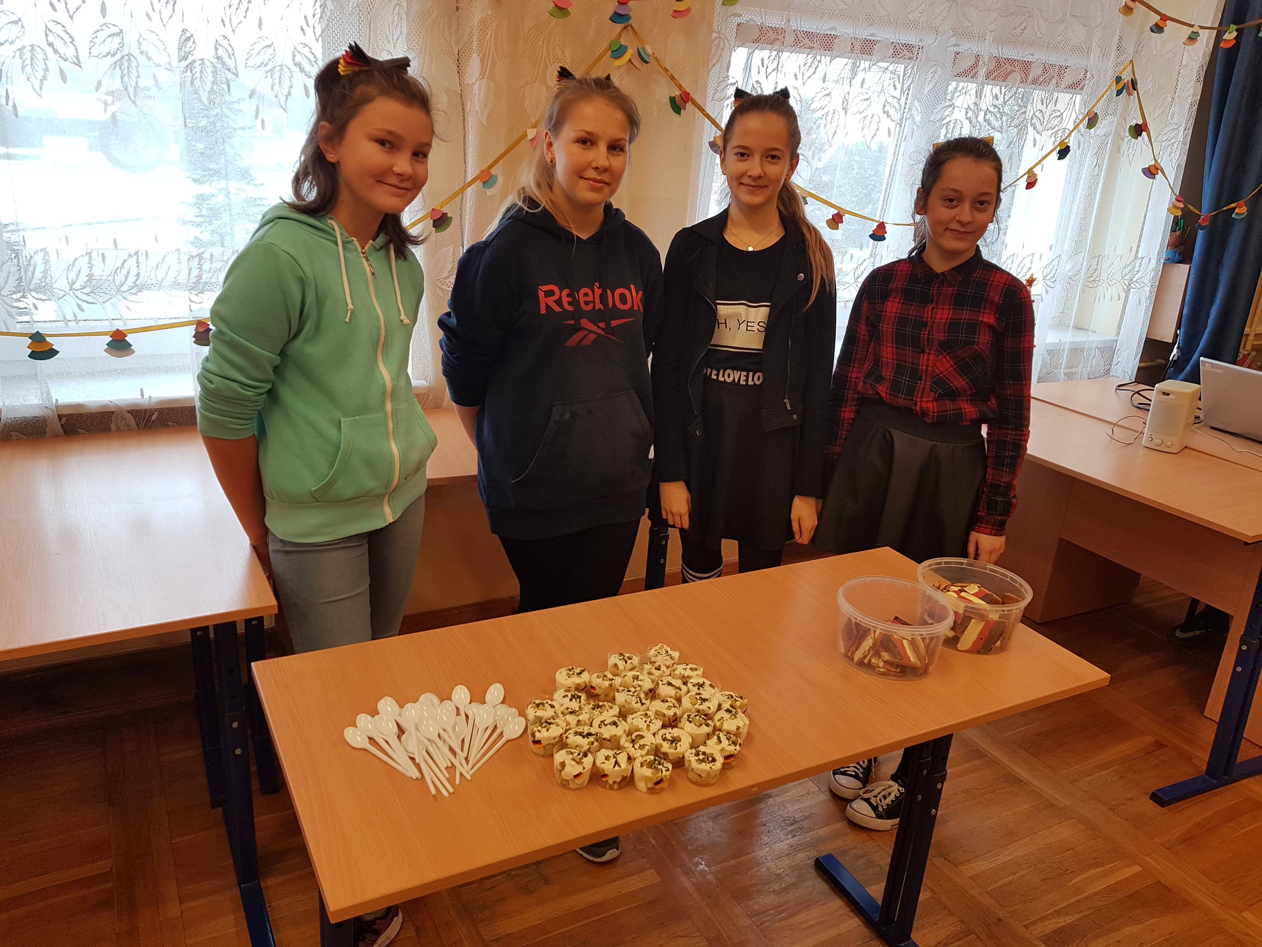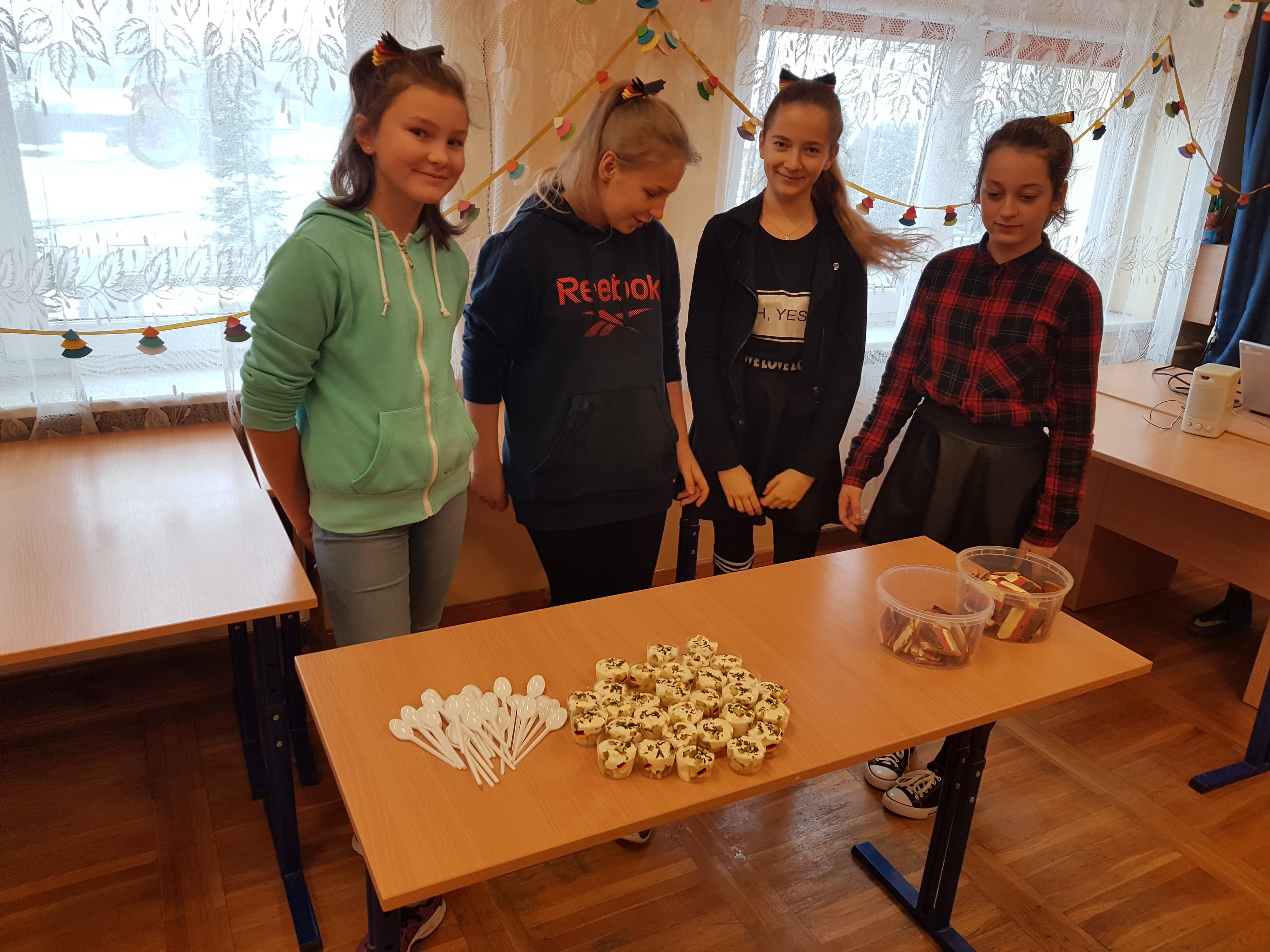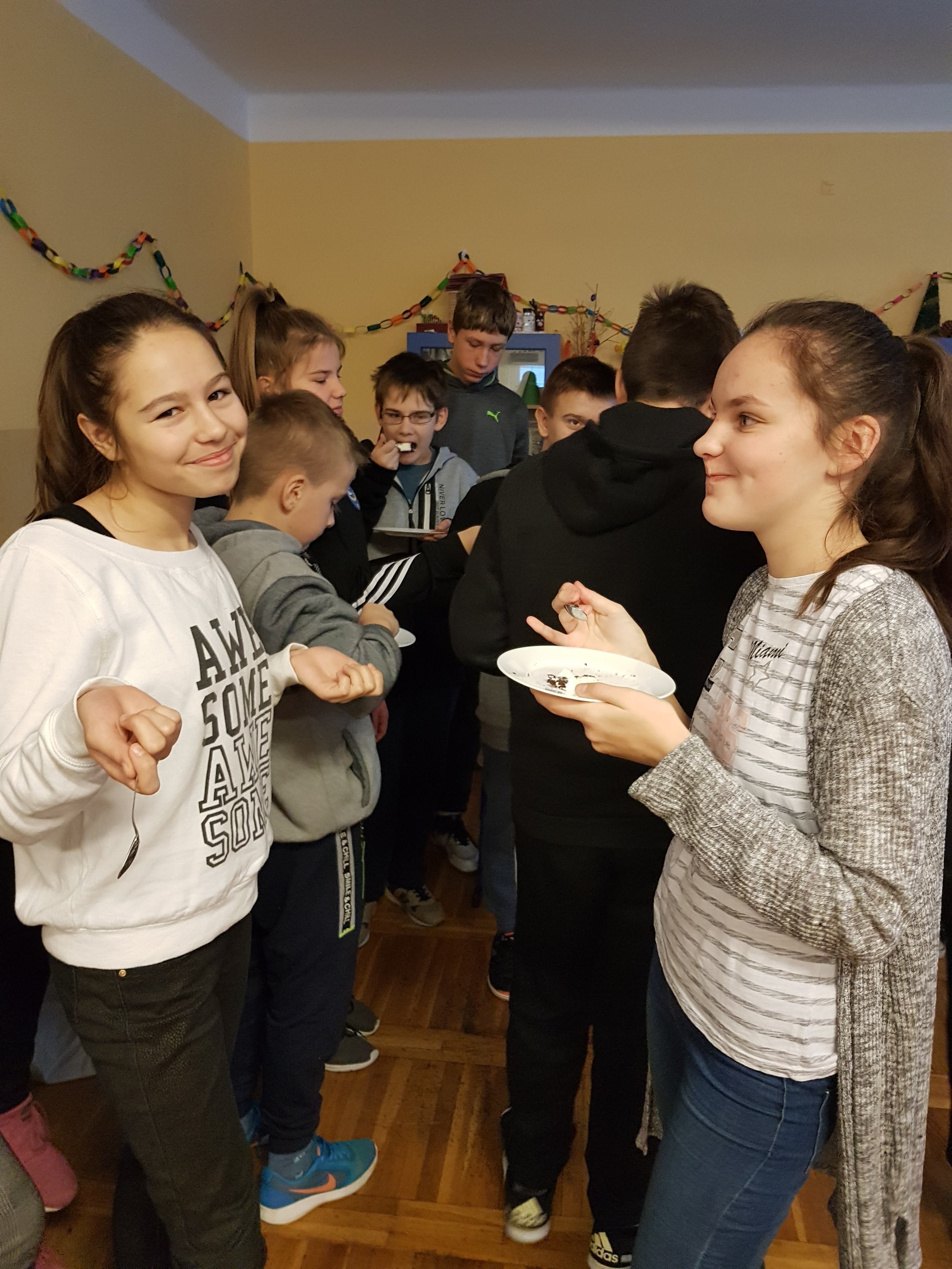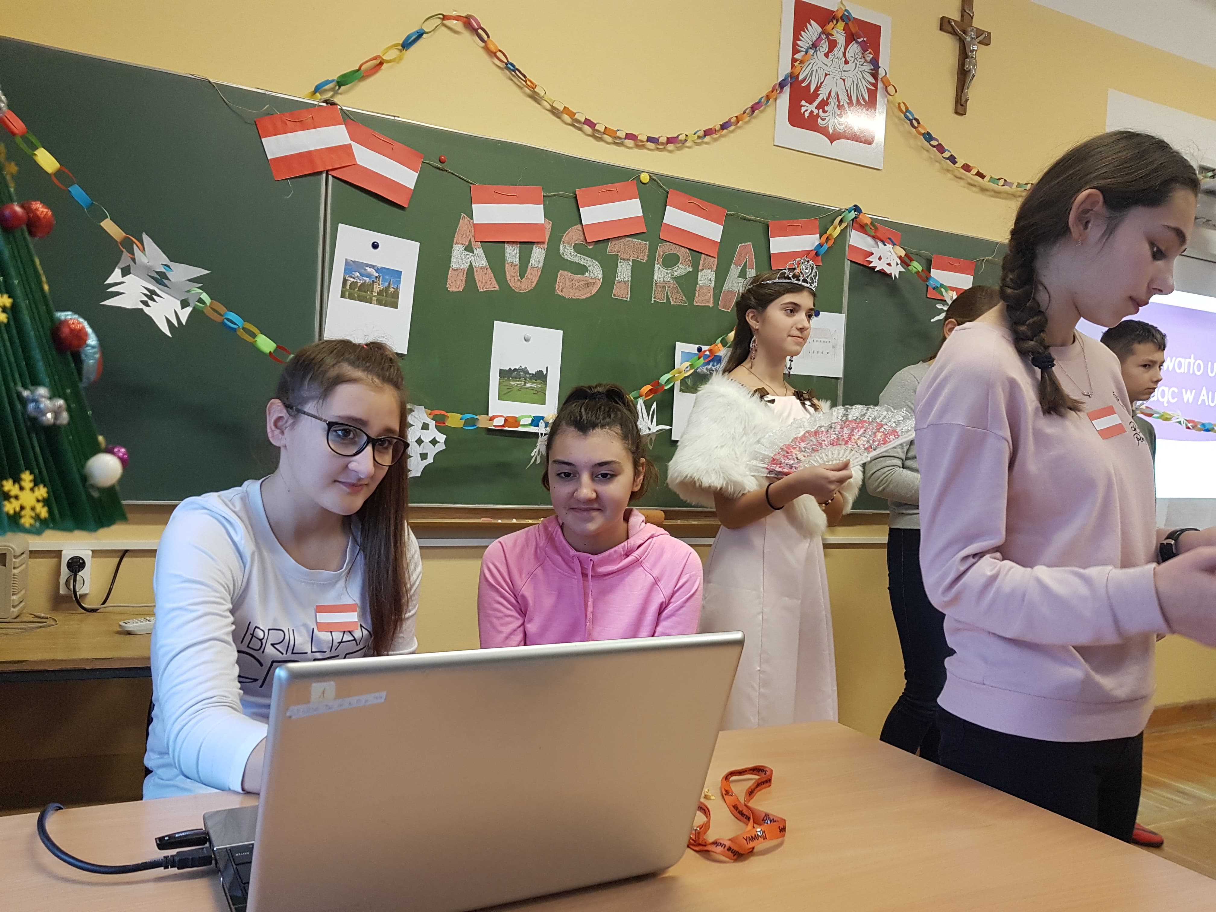 Klasa 7a, 7b i 8 uczestniczyły w projekcie języka niemieckiego „Co wiesz o krajach DACH?”. Zadaniem każdej klasy było przedstawienie kultury i tradycji wylosowanego państwa niemieckojęzycznego (Austria, Niemcy, Szwajcaria). Uczniowie wykazali się dużym zaangażowaniem w przydzielone im zadania i zaskakującą kreatywnością. Podczas pokazowych lekcji można było spotkać Alana – Żołnierza Gwardii Szwajcarskiej, Sissi – cesarzową Austrii, posłuchać utworów Bacha i Beethovena, zobaczyć najpiękniejsze miejsca krajów DACH, poznać zwyczaje adwentowe i świąteczne w Niemczech oraz (co okazało się najważniejsze) skosztować przysmaków z tych krajów np. pysznego fondue, tortu Sachera, pierniczków czy sałatki kartoflanej.