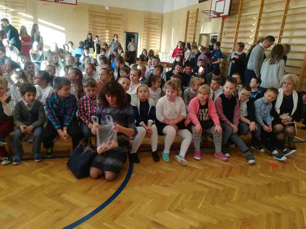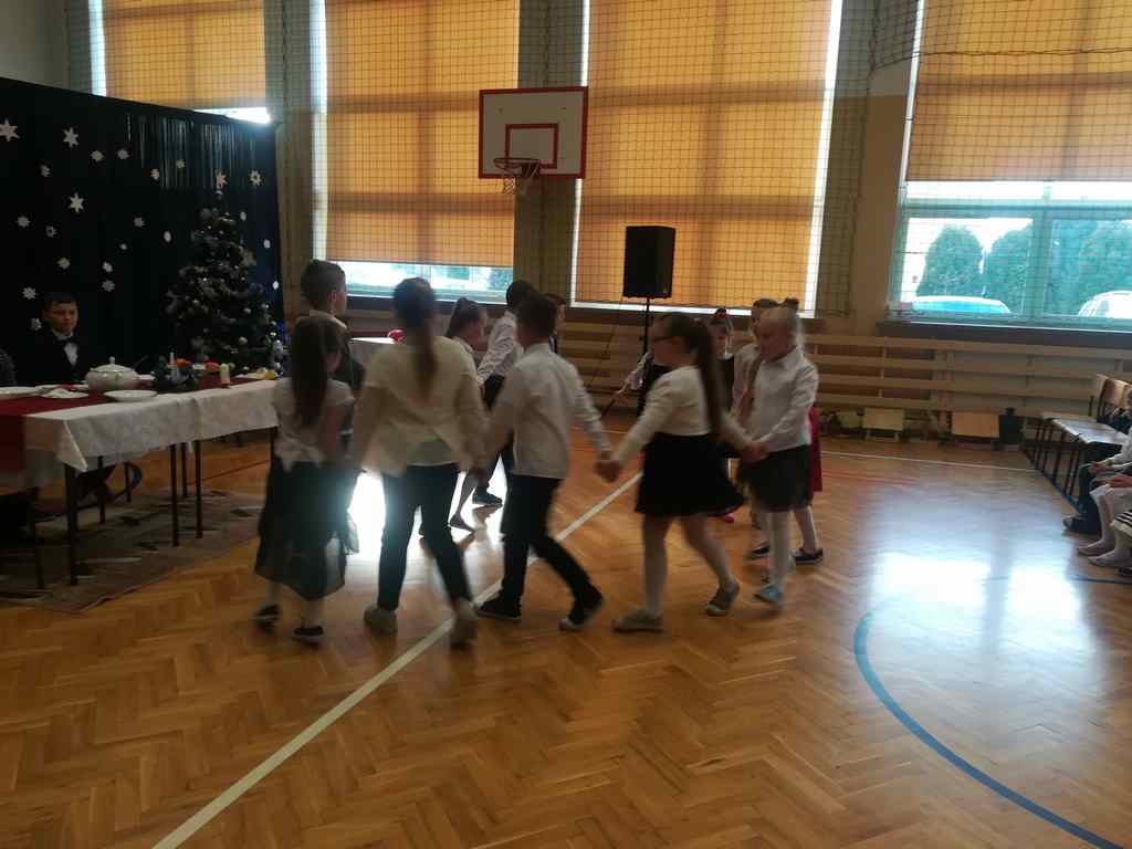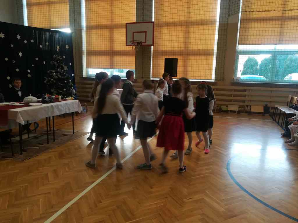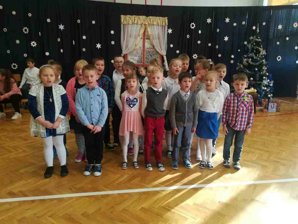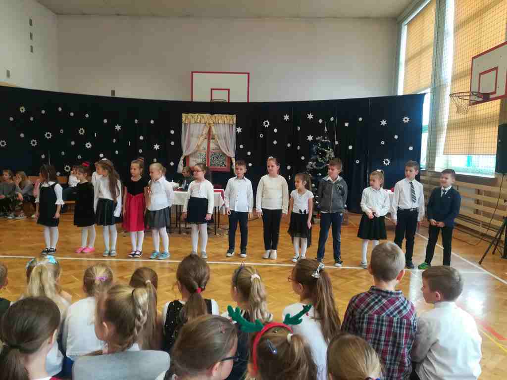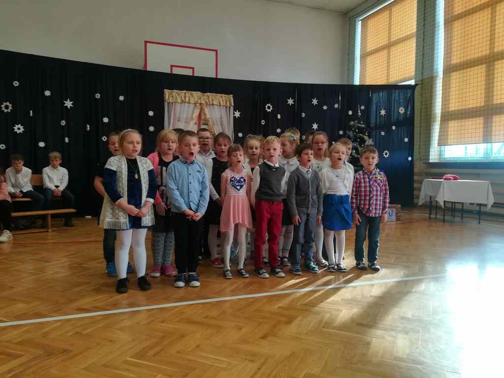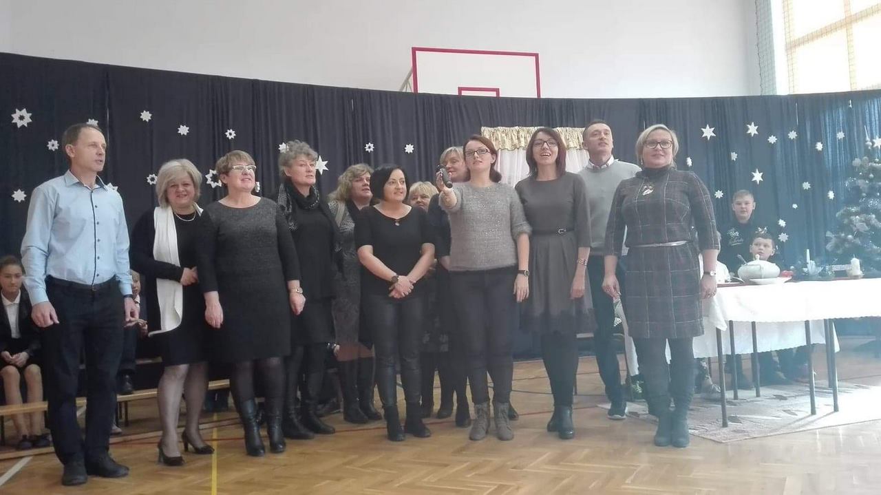 Po części oficjalnej wszyscy uczniowie wraz z nauczycielami wzięli udział we wspólnym kolędowaniu. Podobnie jak w roku poprzednim każda klasa przygotowała wylosowaną wcześniej kolędę lub pastorałkę. I choć z założenia był to międzyklasowy konkurs, to jednak z przygotowanych aranżacji trudno było wybrać zwycięzcę – wszyscy śpiewali pięknie, więc wszyscy wygrali 🙂