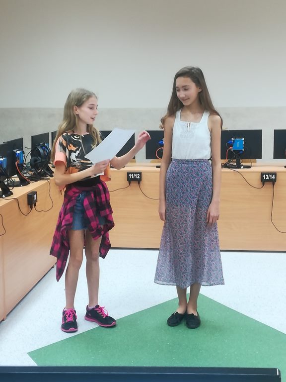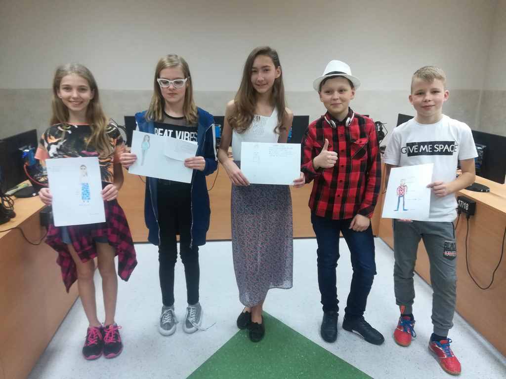 W ubiegłym tygodniu uczniowie klasy 5b wzięli udział w ciekawej lekcji języka angielskiego prowadzonej przez panią Annę Sochę, na której prezentowali przygotowane przez siebie w domu projekty ubiorów. Mieli również za zadanie przebrać jednego ze swoich kolegów/koleżanek z klasy w stroje, które zamieścili na projekcie. Takim sposobem w atrakcyjny dla siebie sposób poszerzyli zasób słownictwa i otrzymali pozytywne oceny.