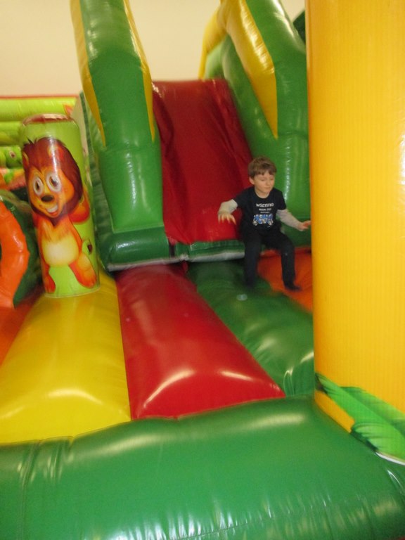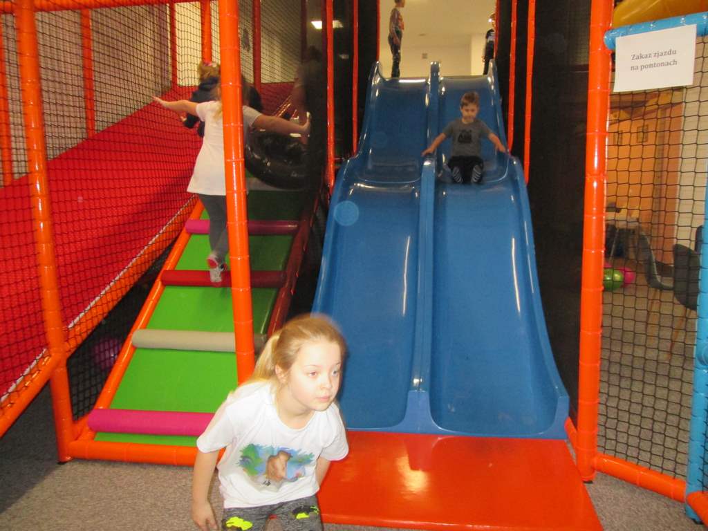 Pierwszoklasiści pod opieką wychowawczyni, pani Alicji Kozioł oraz pani Elżbiety Biedrońskiej spędzili dzisiejsze przedpołudnie w Dziecięcym Raju „Rajtek”. Tym sposobem nowy tydzień rozpoczęli z uśmiechem na ustach do upadłego korzystając ze wszelkich oferowanych tam atrakcji stworzonych z myślą o tych, którzy ze wszystkich rzeczy na ziemi najbardziej lubią ruch 🙂 Świetna zabawa pozwalająca jednocześnie kreatywnie rozwijać możliwości i udoskonalać psychomotorykę naszych dzieciaków z pewnością na długo pozostanie w ich pamięci 🙂