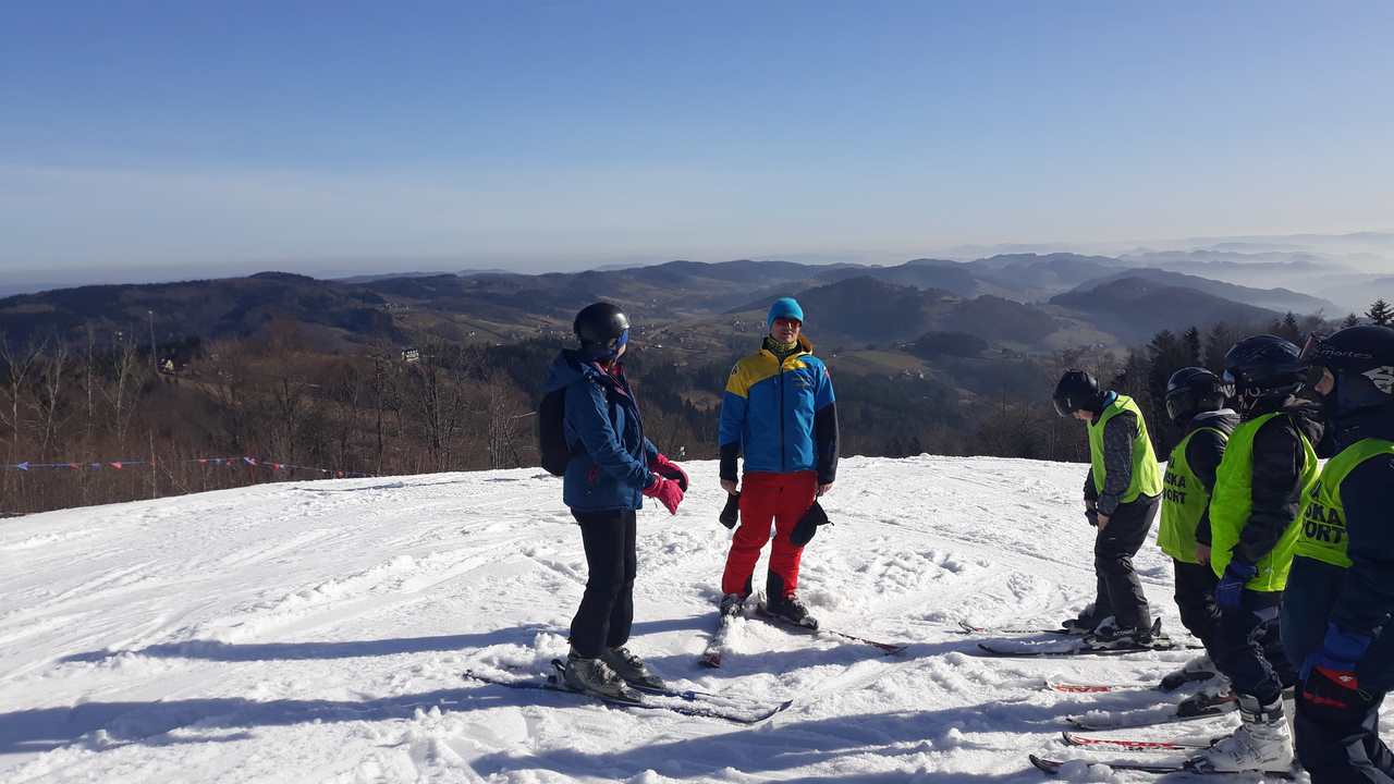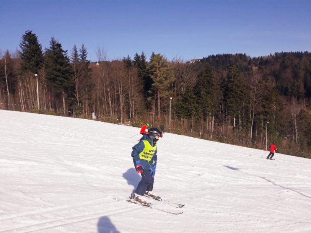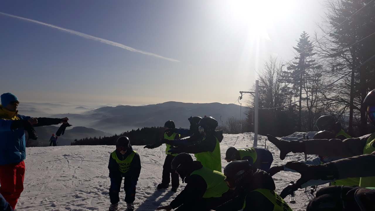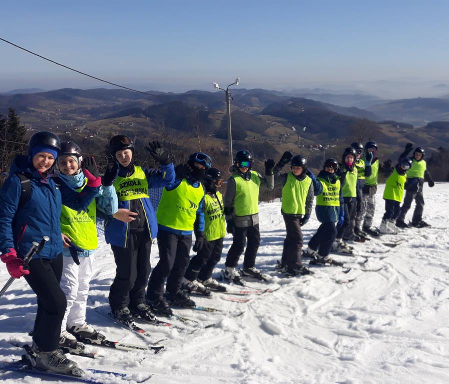 Minęła trzecia sobota naszej nauki jazdy na nartach w ramach projektu „Jeżdżę z głową”. Tym razem stok przywitał nas wiosną, było ciepło i słonecznie. Z oddali horyzont wyłonił szczyty Tatr. W takiej aurze trenowaliśmy 4 godziny, zjeżdżając kolumną z samego szczytu, aż po wyciąg. Warunki zmuszały do mocnego kontrolowania toru jazdy i skrętów. Niektórzy z nas sprawdzili swoje umiejętności na trasie o wyższym stopniu trudności radząc sobie doskonale.