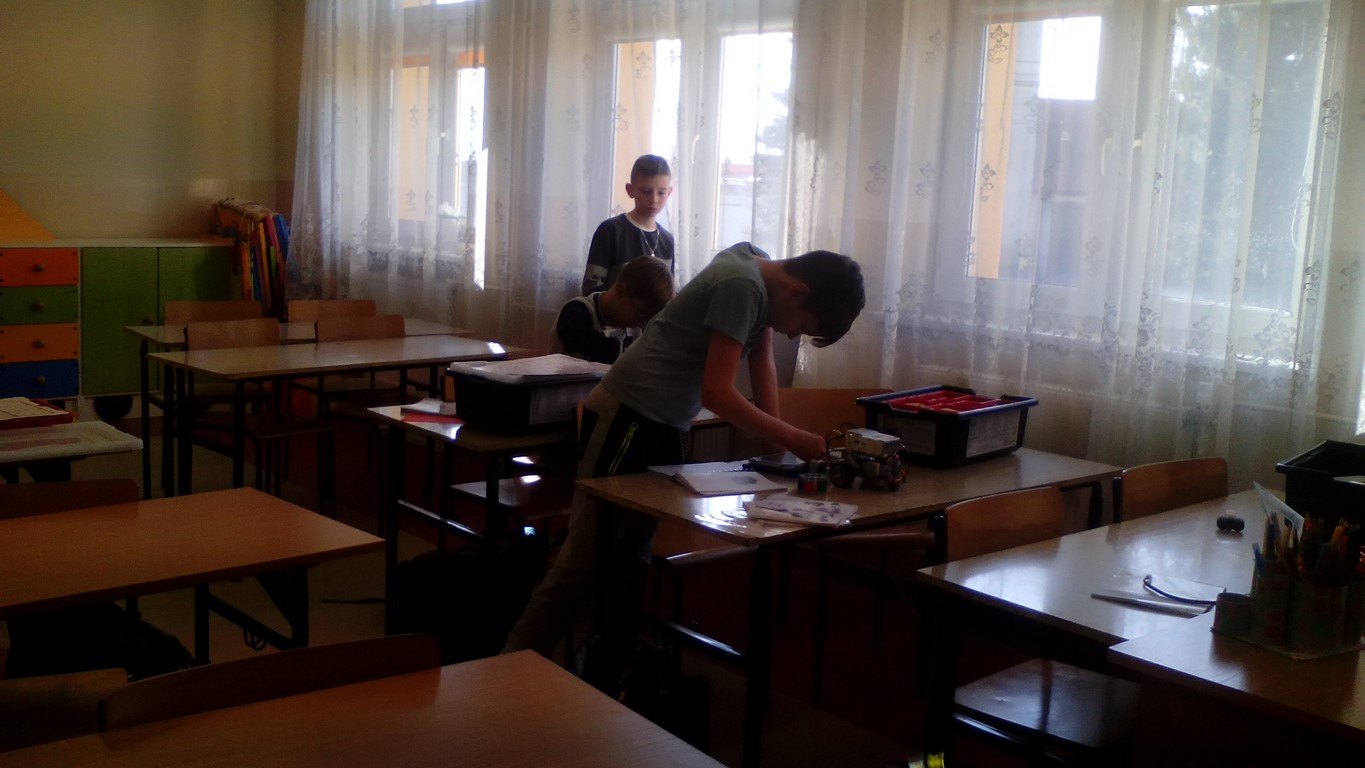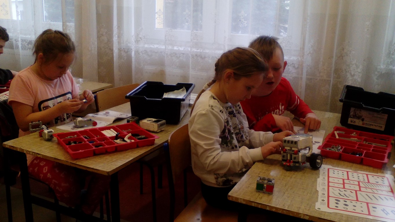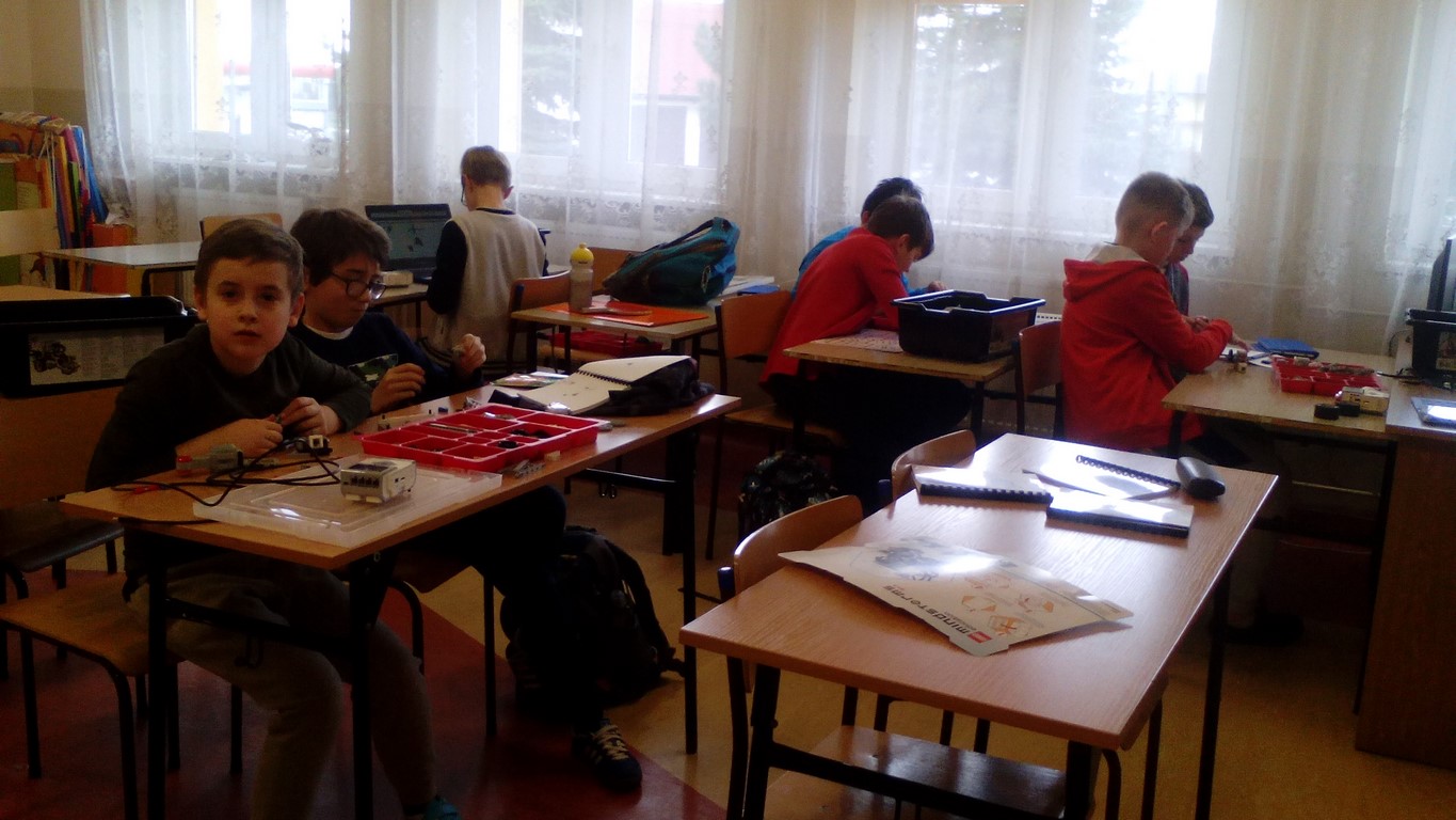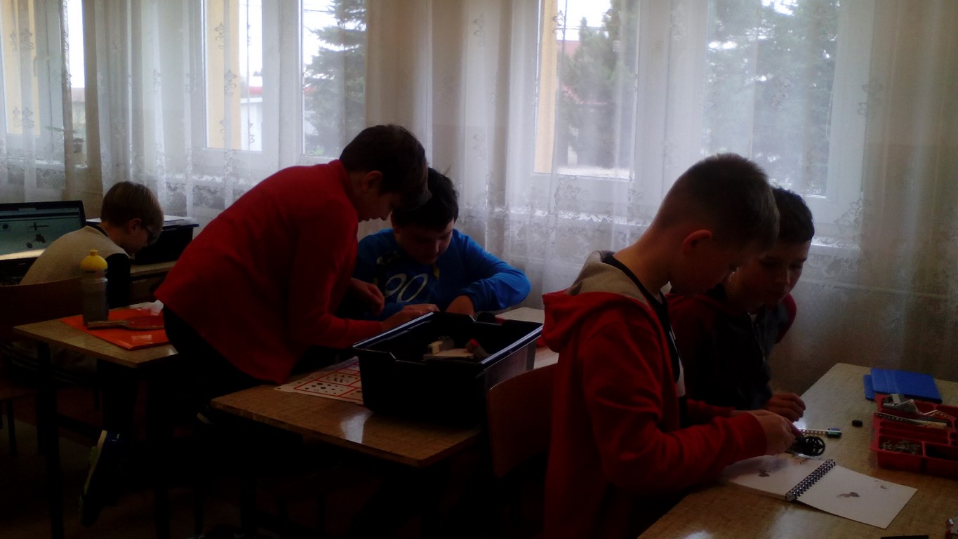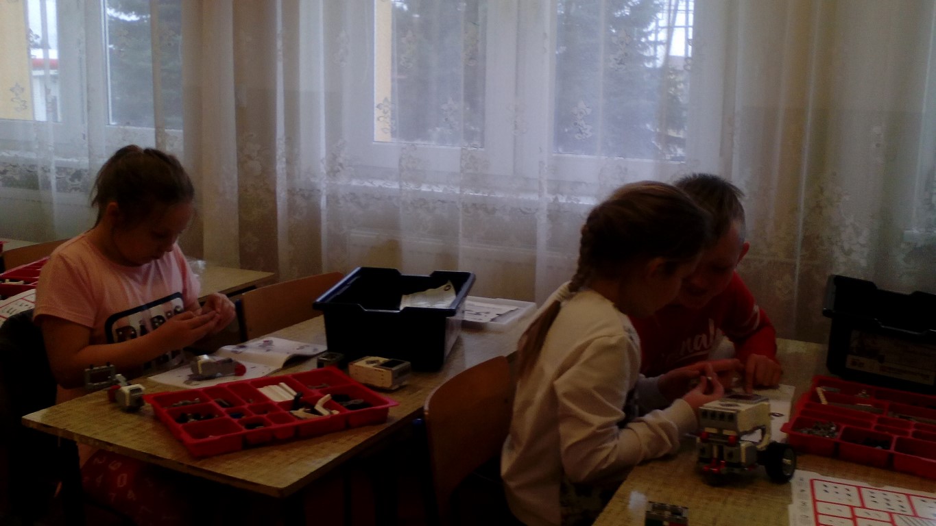 Uczniowie pracują w dwóch grupach ośmioosobowych, po dwie osoby przy jednym zestawie. Wiele radości daje im budowanie robotów z maleńkich elementów, a następnie wprawianie ich w ruch. Nasze „stworki – robotki” potrafią jeździć po linii, wykrywają kolory, przeszkody i odpowiedni na nie reagują. Oczywiście wymaga to dużej sprawności i wytrwałości, aby robot dokładnie wykonywał polecenia konstruktora. Obowiązkowo urządzaliśmy także wyścigi naszych maszyn. Konstruktorzy musieli włożyć wiele wysiłku aby ułożyć program, który powoduje że jego robot jedzie najszybciej, najszybciej i najdokładniej pokonuje przeszkody i oczywiście wraca do twórcy. Teraz budujemy pieska. mając nadzieje że okaże się naszym elektronicznym przyjacielem.