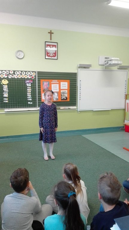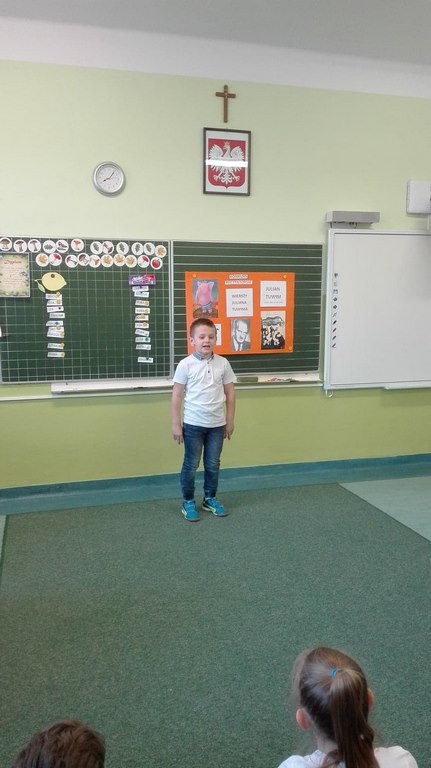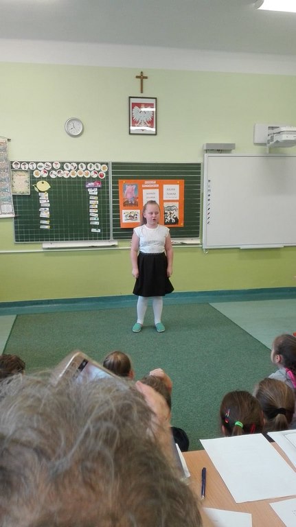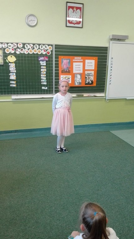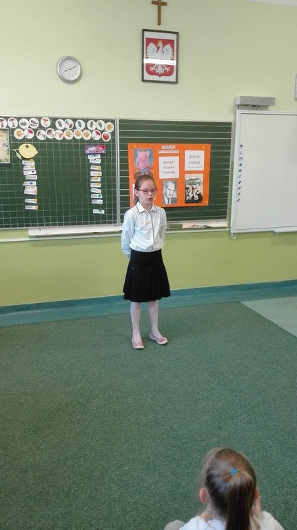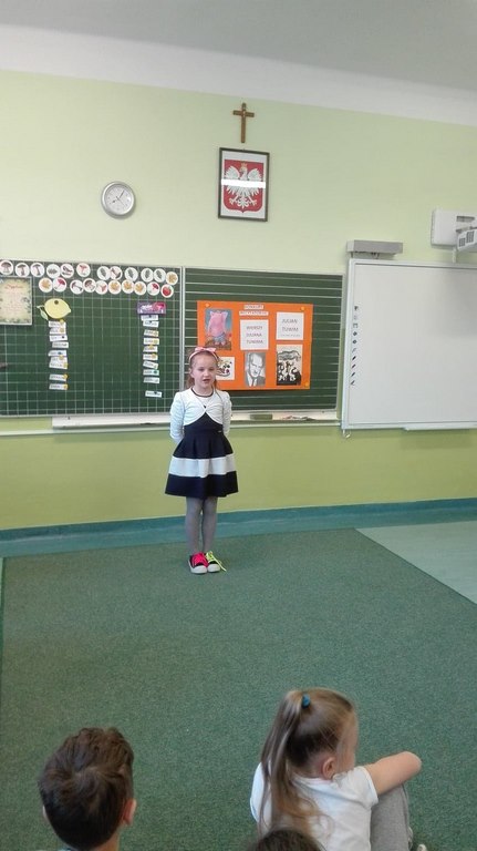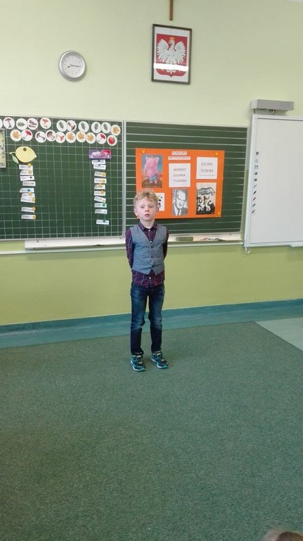 W ostatnich dniach w klasie I w naszej szkole odbył się konkurs recytatorski wierszy Juliana Tuwima. Wzięło w nim udział 13 uczniów, którzy recytowali wybrane przez siebie utwory. W interpretacji pierwszoklasistów wysłuchaliśmy wierszy: „Cuda i dziwy”, „Ptasie radio”, „Abecadło „, „Okulary”, „Bambo”, „Spóźniony słowik”, „Lokomotywa”, „O Grzesiu kłamczuchu” oraz „Kotek”. Mimo ogromnej tremy wszyscy uczniowie podczas prezentacji wypadli świetnie. Komisja konkursowa w składzie: p. Halina Kozłowska, p. Celina Okręglicka – Kostrzewa oraz p. Alina Panek przyznała następujące miejsca:
