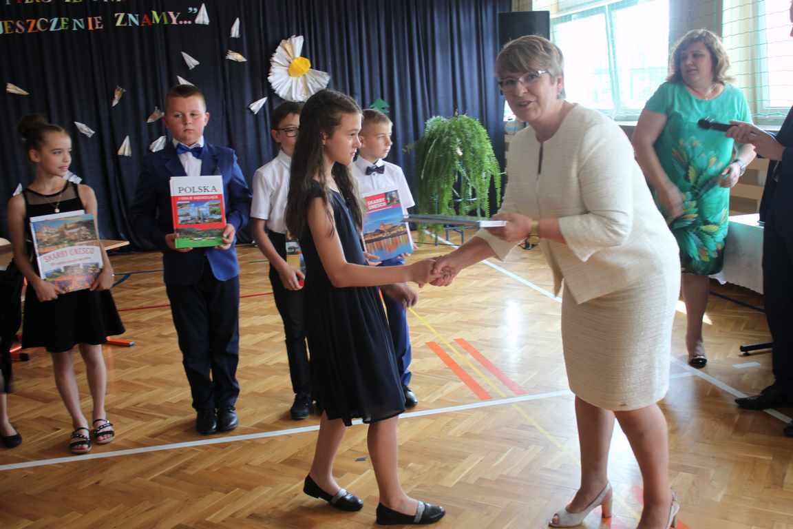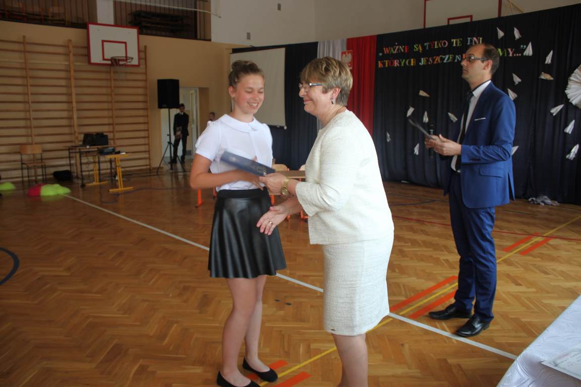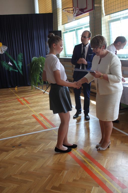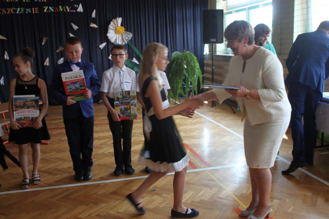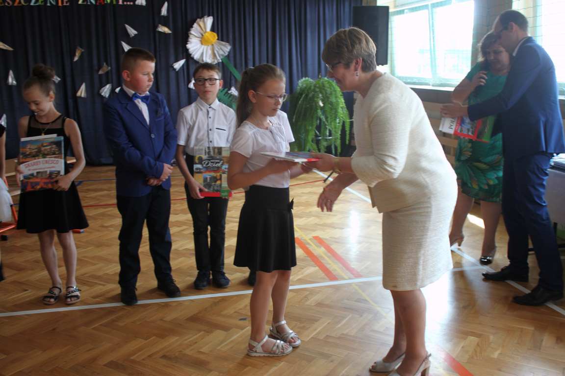 Zakończenie roku szkolnego to również czas podsumowań, świadectw i nagród. Dziś swoje świadectwa z wyróżnieniem z rąk pani dyrektor, Jadwigi Łucarz otrzymali uczniowie, którzy w ciągu roku szkolnego wypracowali średnią 4,75 i wyżej. Rodzicom uczniów ze średnią 5,0 i wyżej pani dyrektor wręczyła listy gratulacyjne 🙂