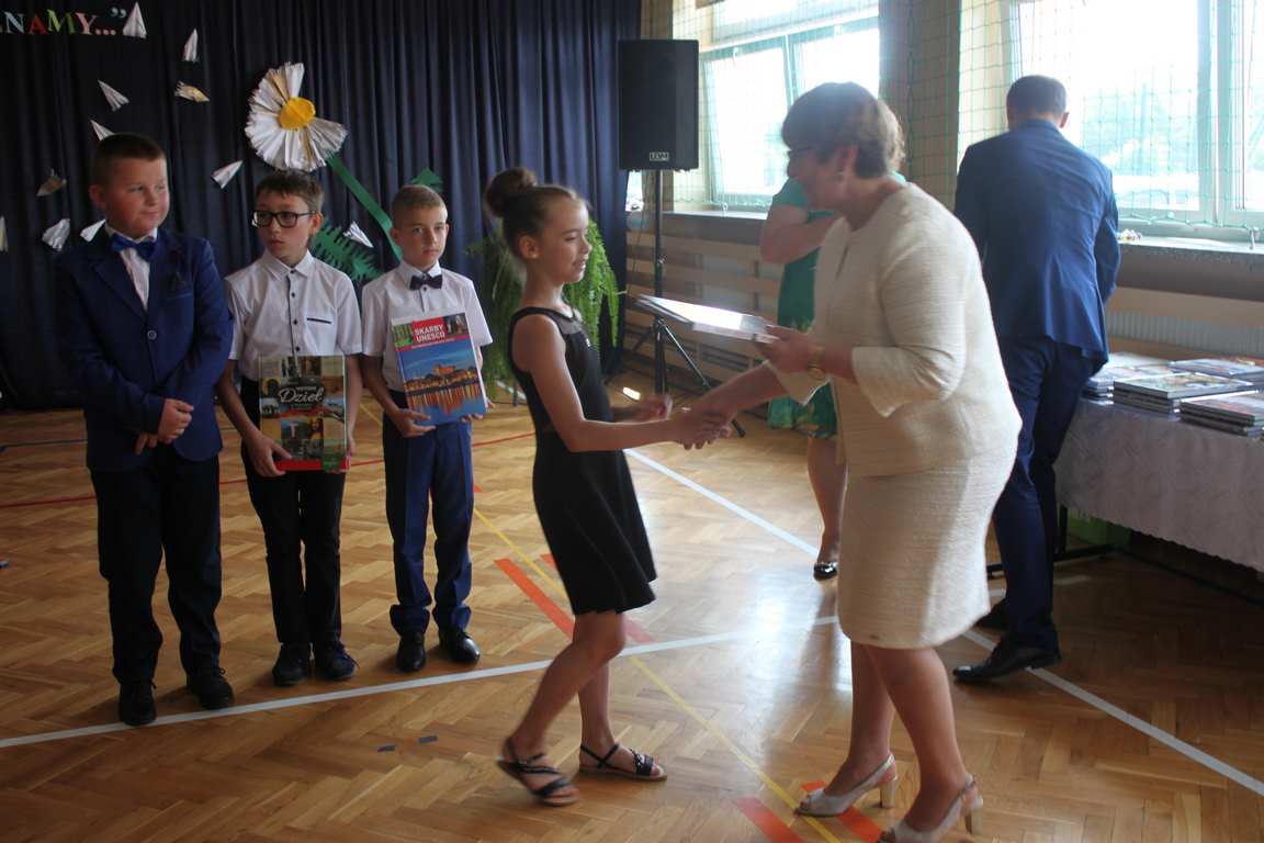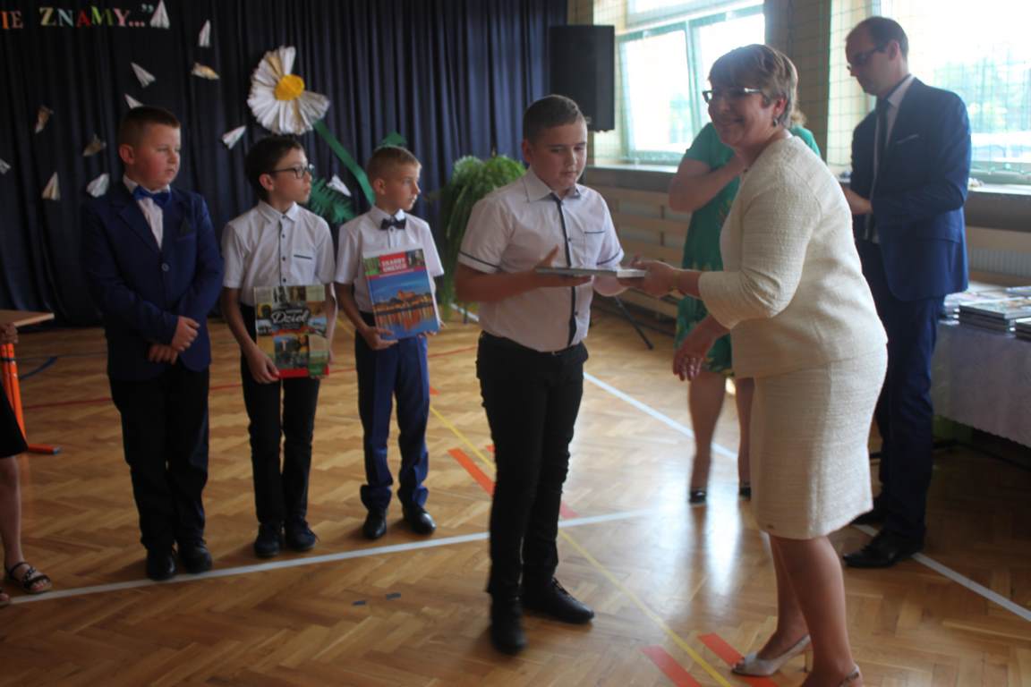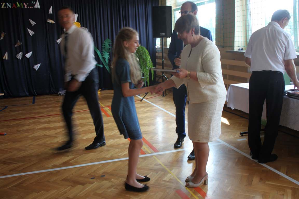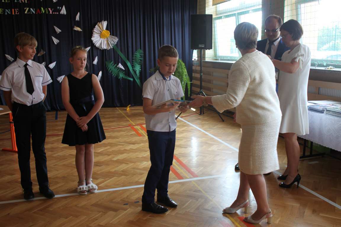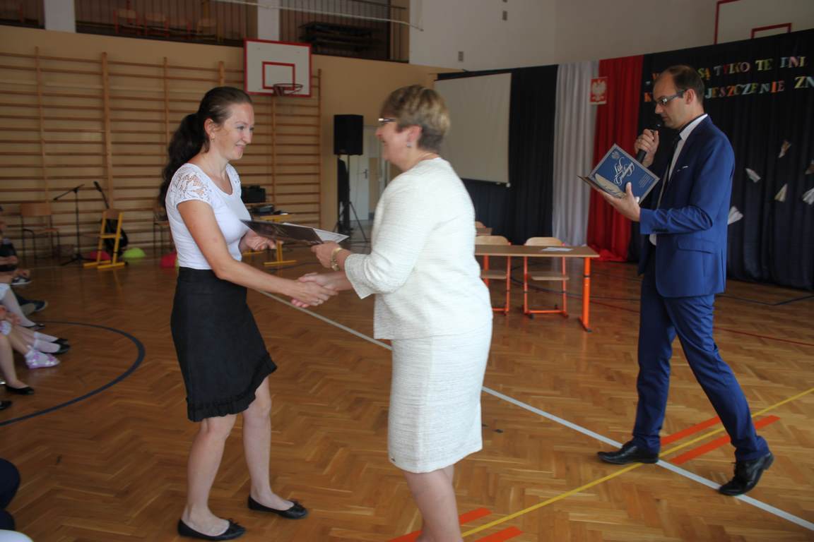Zakończenie roku szkolnego to również czas podsumowań, świadectw i nagród. Dziś swoje świadectwa z wyróżnieniem z rąk pani dyrektor, Jadwigi Łucarz otrzymali uczniowie, którzy w ciągu roku szkolnego wypracowali średnią 4,75 i wyżej. Rodzicom uczniów ze średnią 5,0 i wyżej pani dyrektor wręczyła listy gratulacyjne 🙂