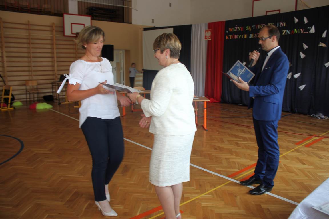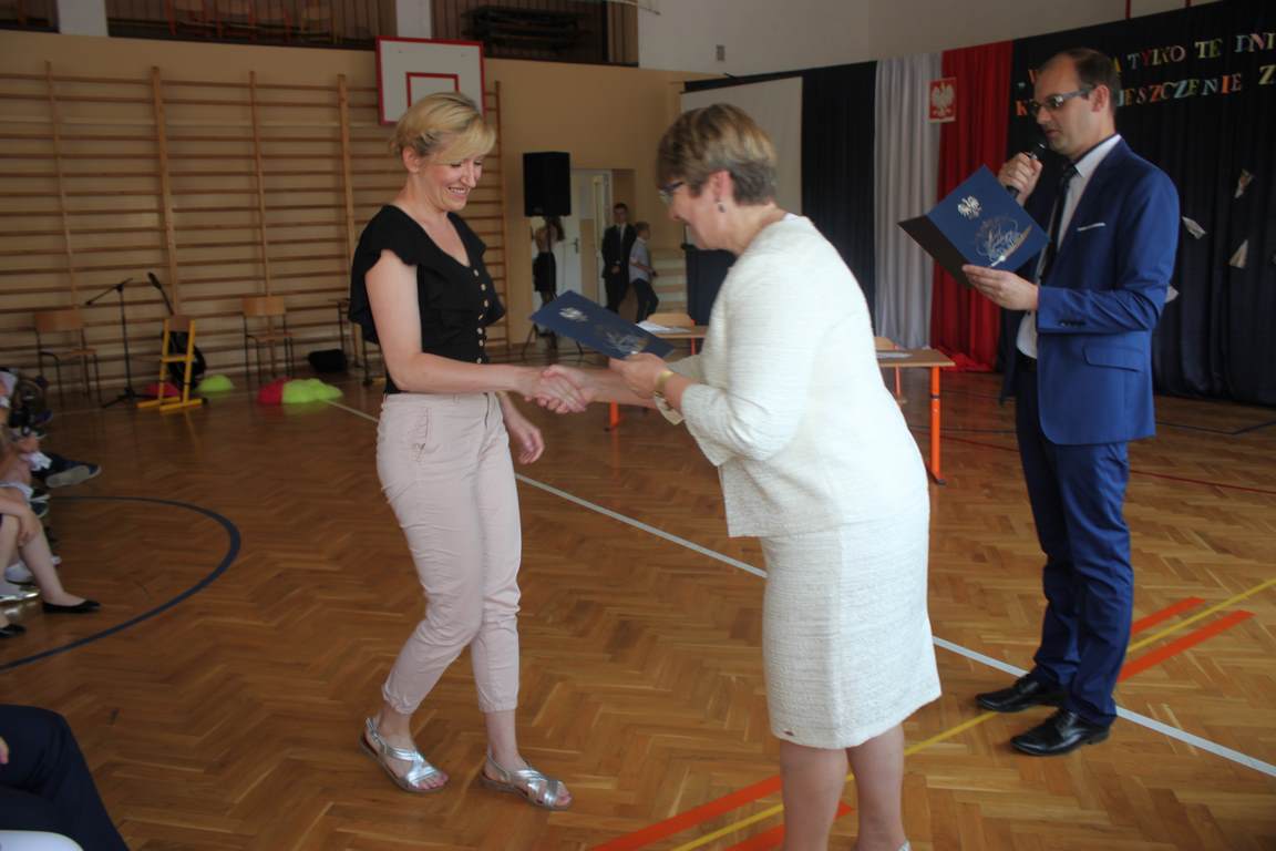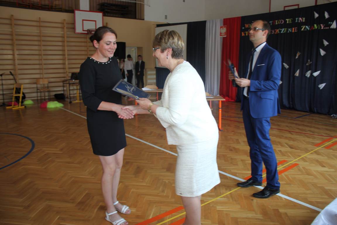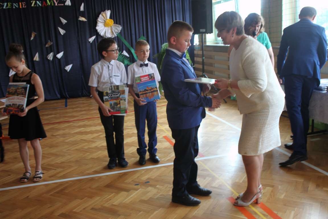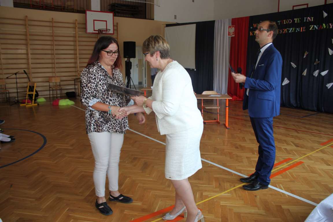 Zakończenie roku szkolnego to również czas podsumowań, świadectw i nagród. Dziś swoje świadectwa z wyróżnieniem z rąk pani dyrektor, Jadwigi Łucarz otrzymali uczniowie, którzy w ciągu roku szkolnego wypracowali średnią 4,75 i wyżej. Rodzicom uczniów ze średnią 5,0 i wyżej pani dyrektor wręczyła listy gratulacyjne 🙂