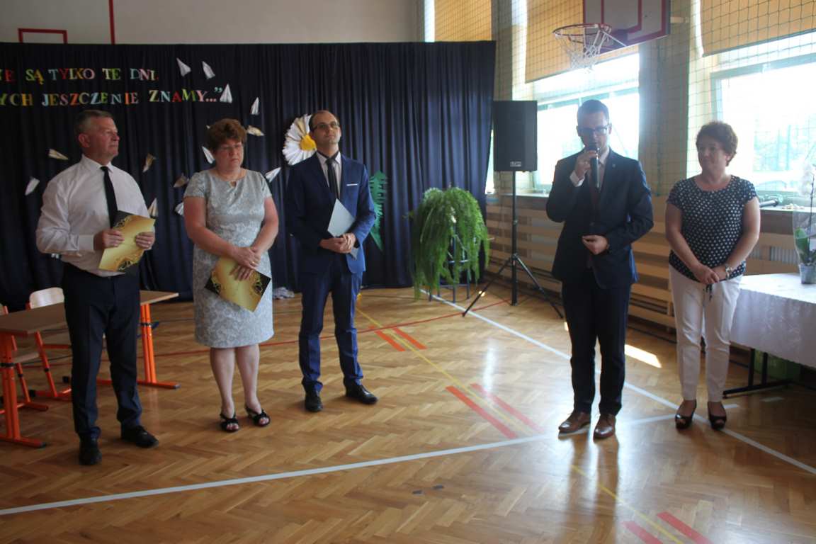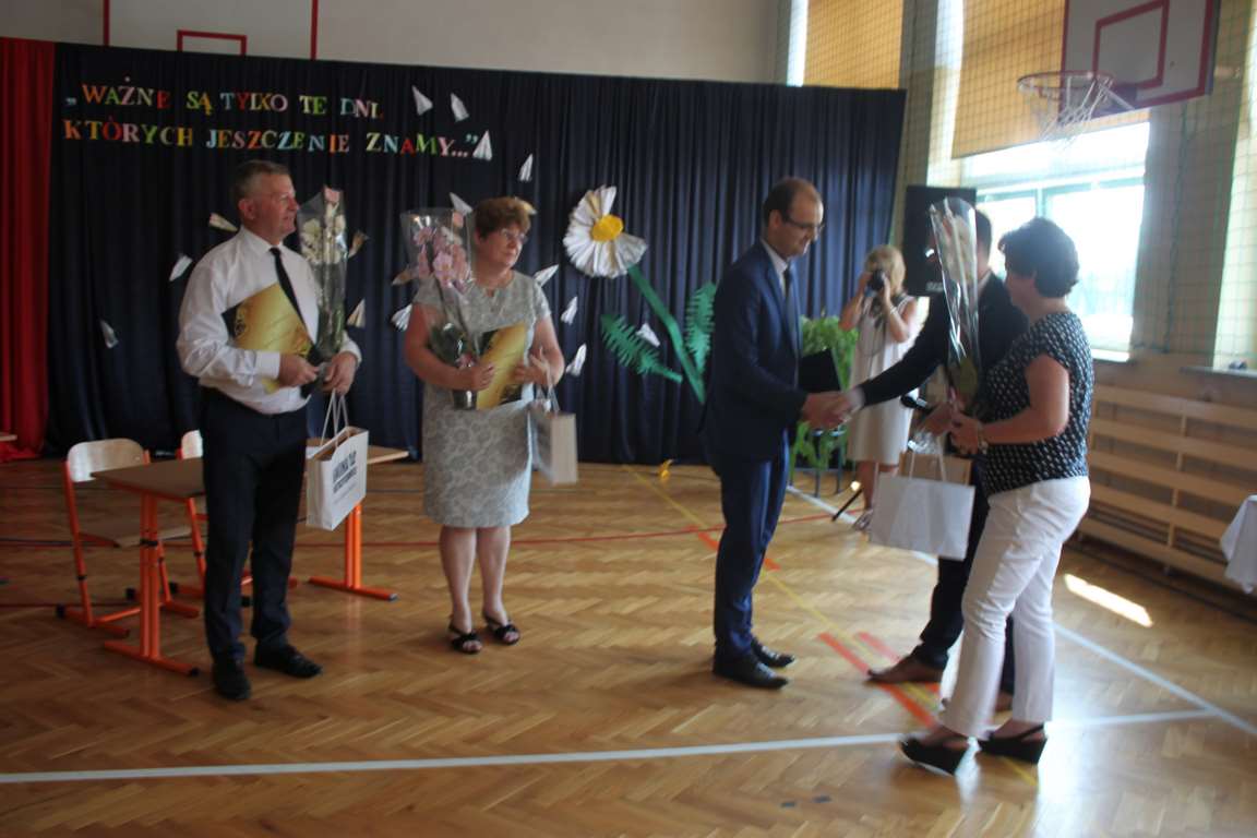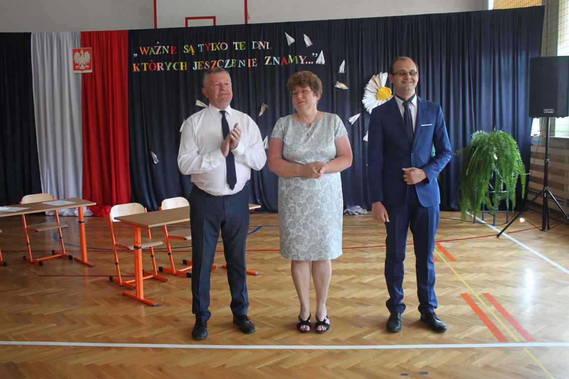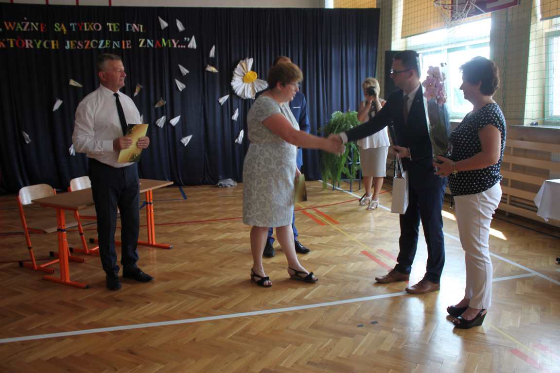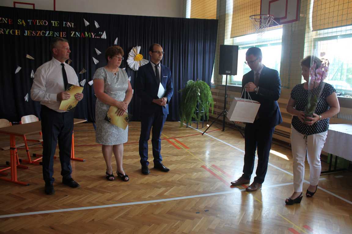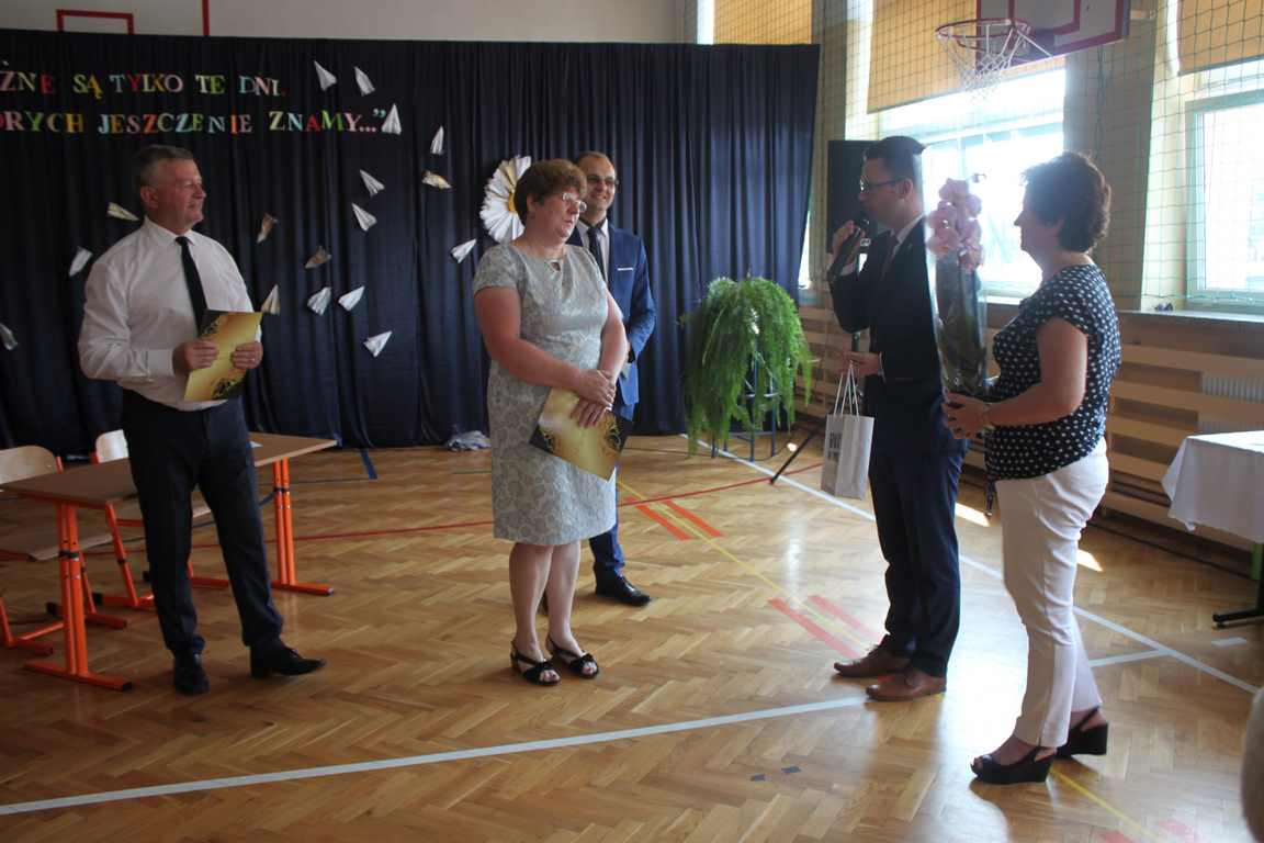 Uroczystość zakończenia roku szkolnego świętowało z nami troje nauczycieli, z którymi nie spotkamy się we wrześniu. Po kilkudziesięciu latach pracy przy tablicy na emeryturę odeszli pani Małgorzata Sieradzka oraz pan Stanisław Magiera. Nasze grono niespodziewanie opuścił również wicedyrektor, pan Michał Wolak, który po wygranym konkursie, od września obejmie posadę dyrektora liceum w Dąbrowie Tarnowskiej. Fakt, że zdajemy sobie sprawę, iż życie to ciągłe rozstania, nie ułatwia niestety pożegnania… Spędziliśmy ze sobą dużo czasu, wystarczająco dużo, żeby się poznać i zaprzyjaźnić, żeby mieć wspólne tematy do rozmów, żartów i przekomarzań. Dziękujemy za spędzone razem chwile, za uśmiech, pomoc, dobre słowo, jakich nigdy nam nie szczędziliście. „Decyzja oswojenia zawsze niesie ze sobą ryzyko łez…” i choć dziś łzy same napływają do oczu, wierzymy, że przed Wami wiele, wiele radości 🙂 Mamy również nadzieję, że od czasu do czasu z nostalgią wspomnicie dni spędzone z nami i nadal będziemy dla Was przyjaciółmi. Życzymy siły do pokonywania wszelkich trudności oraz niegasnącej umiejętności cieszenia się życiem i napotkanymi ludźmi…:)