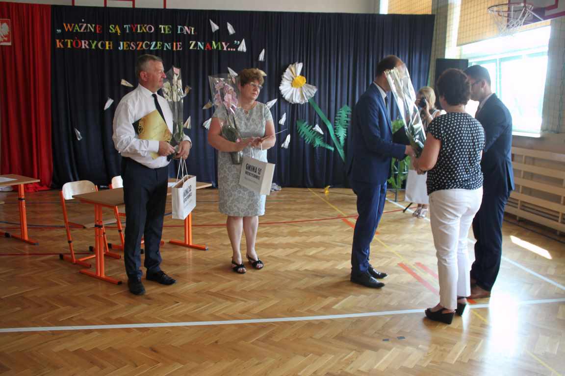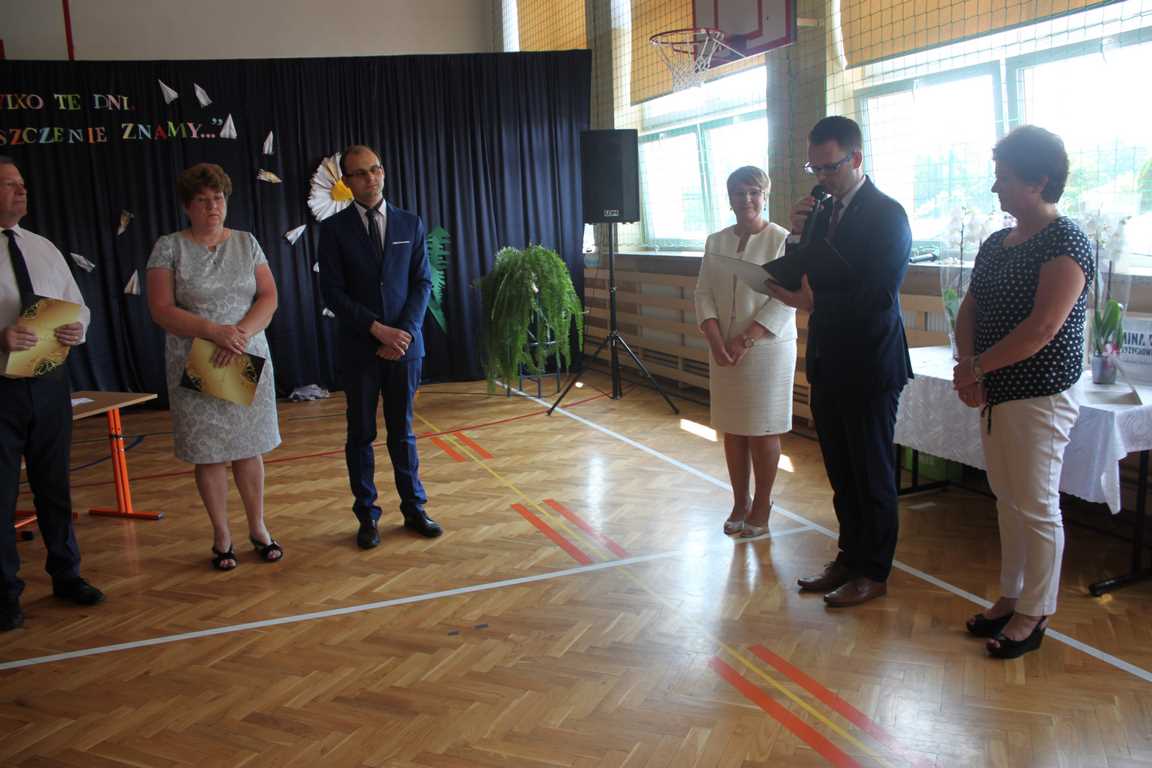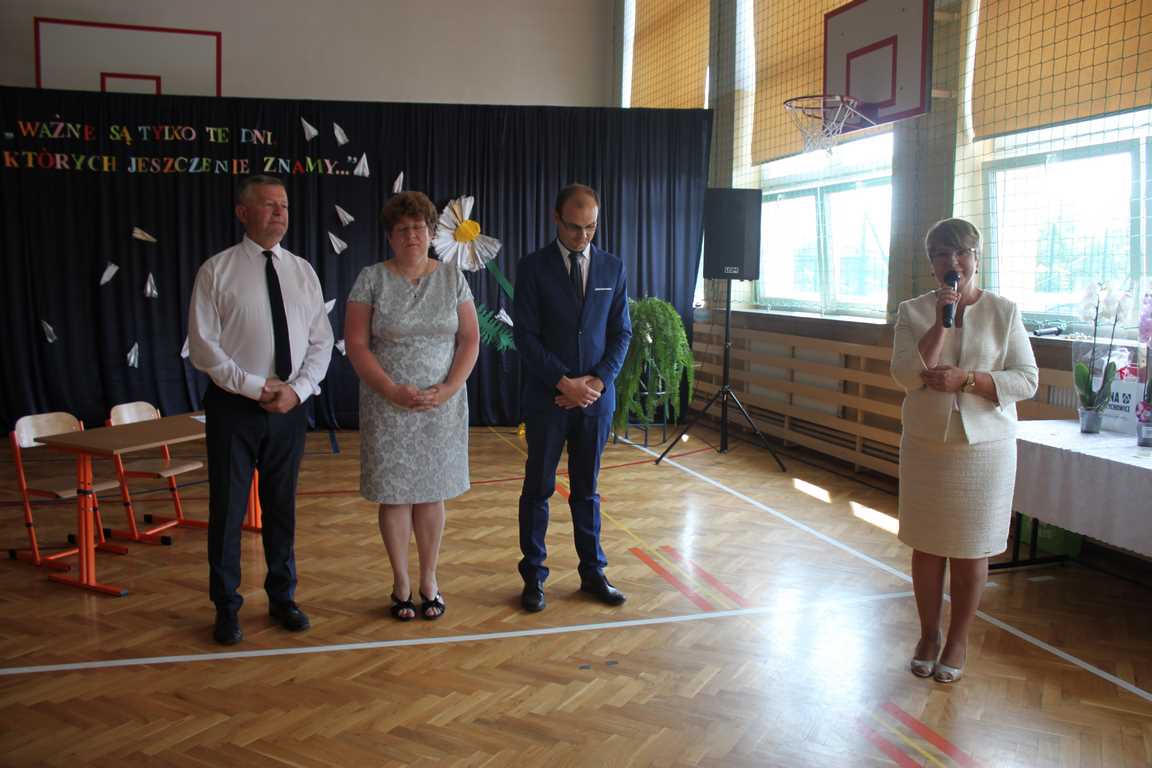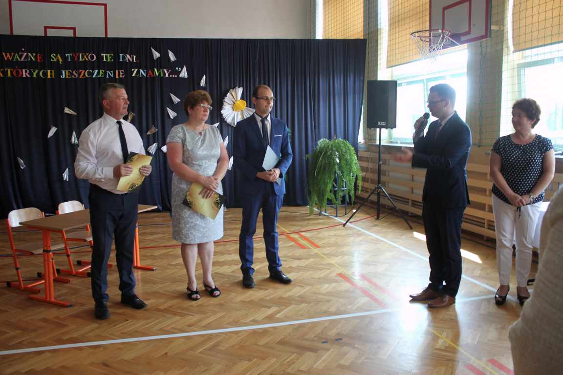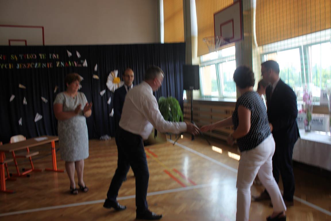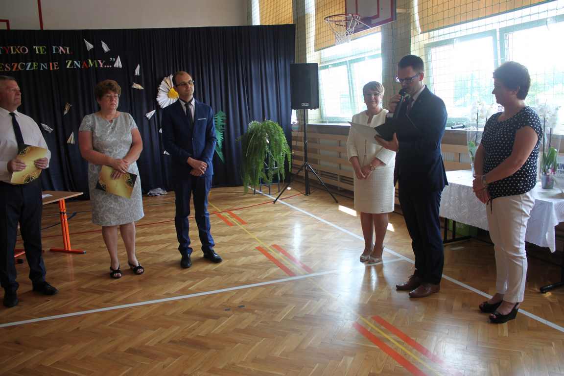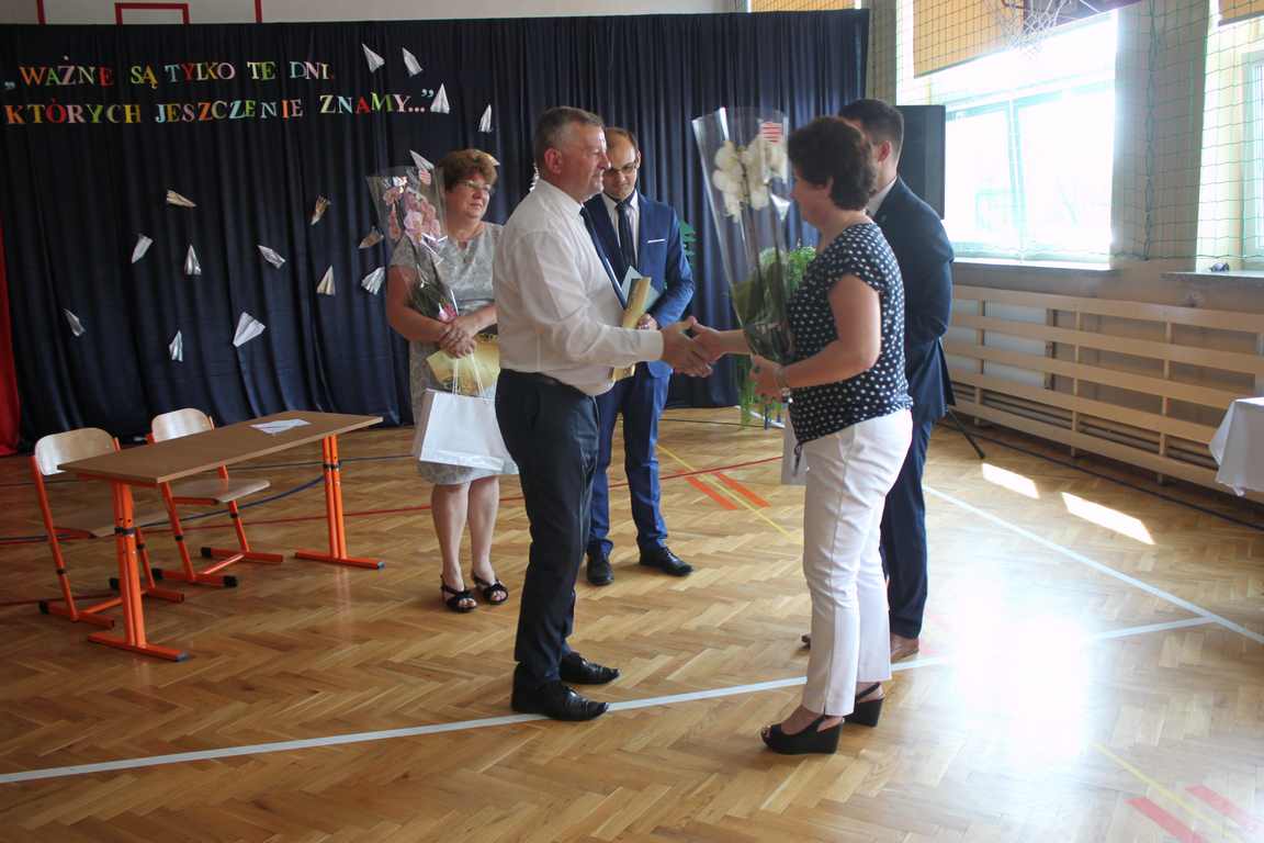 Uroczystość zakończenia roku szkolnego świętowało z nami troje nauczycieli, z którymi nie spotkamy się we wrześniu. Po kilkudziesięciu latach pracy przy tablicy na emeryturę odeszli pani Małgorzata Sieradzka oraz pan Stanisław Magiera. Nasze grono niespodziewanie opuścił również wicedyrektor, pan Michał Wolak, który po wygranym konkursie, od września obejmie posadę dyrektora liceum w Dąbrowie Tarnowskiej. Fakt, że zdajemy sobie sprawę, iż życie to ciągłe rozstania, nie ułatwia niestety pożegnania… Spędziliśmy ze sobą dużo czasu, wystarczająco dużo, żeby się poznać i zaprzyjaźnić, żeby mieć wspólne tematy do rozmów, żartów i przekomarzań. Dziękujemy za spędzone razem chwile, za uśmiech, pomoc, dobre słowo, jakich nigdy nam nie szczędziliście. „Decyzja oswojenia zawsze niesie ze sobą ryzyko łez…” i choć dziś łzy same napływają do oczu, wierzymy, że przed Wami wiele, wiele radości 🙂 Mamy również nadzieję, że od czasu do czasu z nostalgią wspomnicie dni spędzone z nami i nadal będziemy dla Was przyjaciółmi. Życzymy siły do pokonywania wszelkich trudności oraz niegasnącej umiejętności cieszenia się życiem i napotkanymi ludźmi…:)