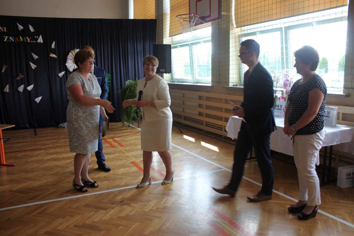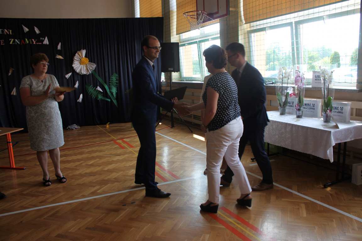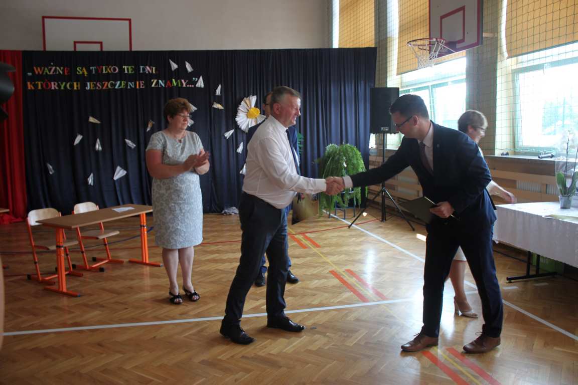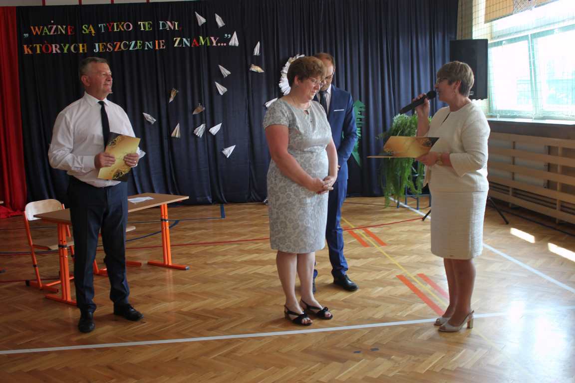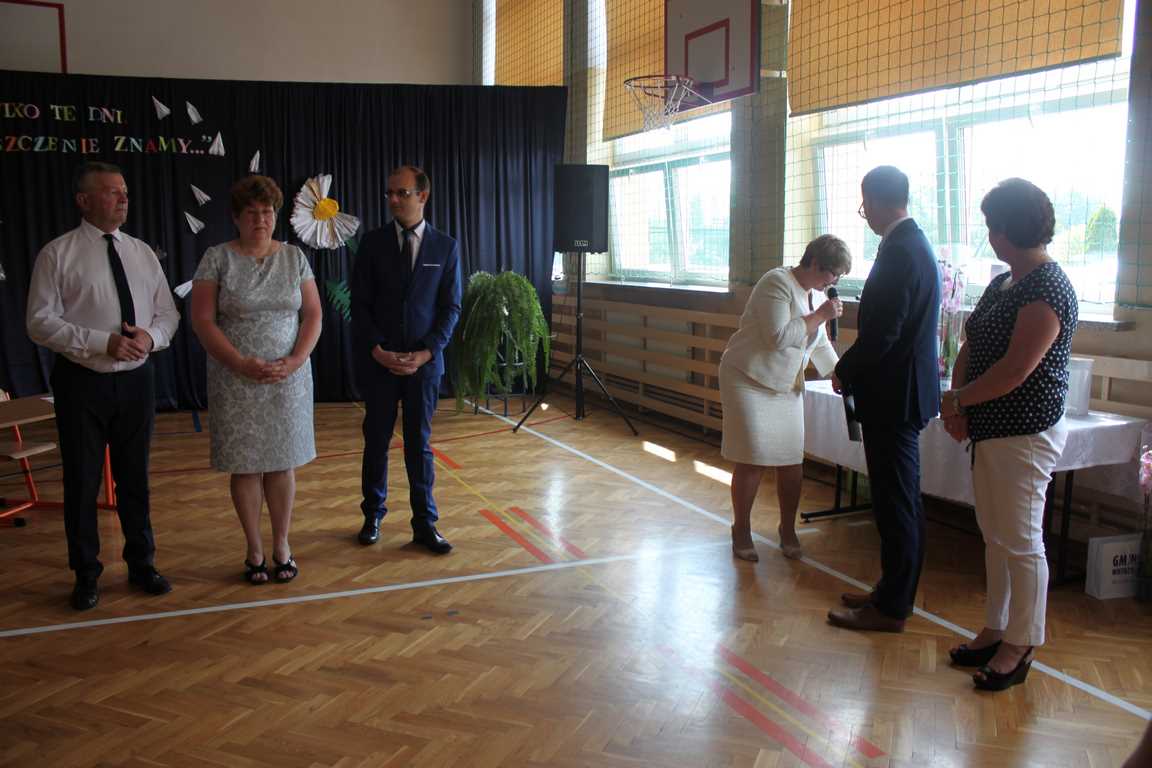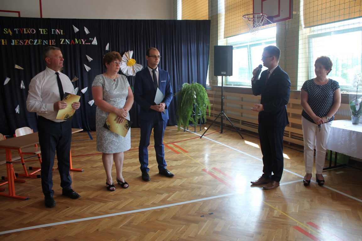 Uroczystość zakończenia roku szkolnego świętowało z nami troje nauczycieli, z którymi nie spotkamy się we wrześniu. Po kilkudziesięciu latach pracy przy tablicy na emeryturę odeszli pani Małgorzata Sieradzka oraz pan Stanisław Magiera. Nasze grono niespodziewanie opuścił również wicedyrektor, pan Michał Wolak, który po wygranym konkursie, od września obejmie posadę dyrektora liceum w Dąbrowie Tarnowskiej. Fakt, że zdajemy sobie sprawę, iż życie to ciągłe rozstania, nie ułatwia niestety pożegnania… Spędziliśmy ze sobą dużo czasu, wystarczająco dużo, żeby się poznać i zaprzyjaźnić, żeby mieć wspólne tematy do rozmów, żartów i przekomarzań. Dziękujemy za spędzone razem chwile, za uśmiech, pomoc, dobre słowo, jakich nigdy nam nie szczędziliście. „Decyzja oswojenia zawsze niesie ze sobą ryzyko łez…” i choć dziś łzy same napływają do oczu, wierzymy, że przed Wami wiele, wiele radości 🙂 Mamy również nadzieję, że od czasu do czasu z nostalgią wspomnicie dni spędzone z nami i nadal będziemy dla Was przyjaciółmi. Życzymy siły do pokonywania wszelkich trudności oraz niegasnącej umiejętności cieszenia się życiem i napotkanymi ludźmi…:)