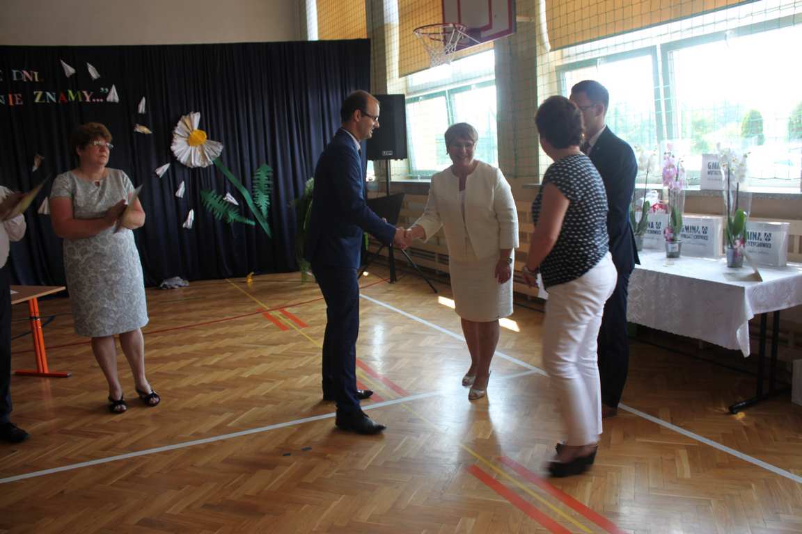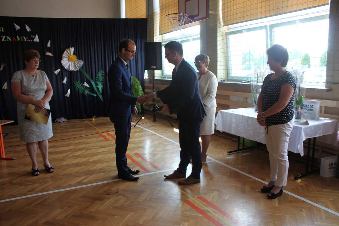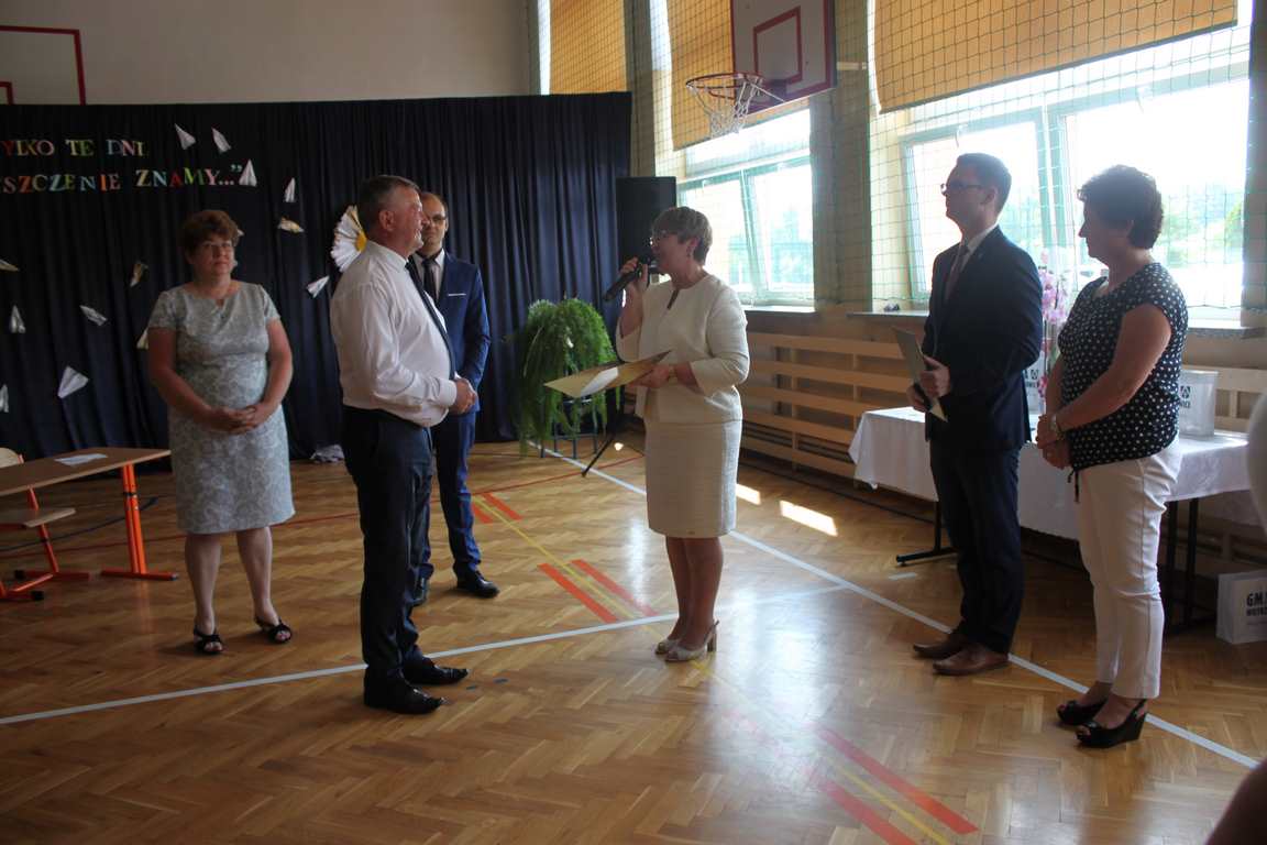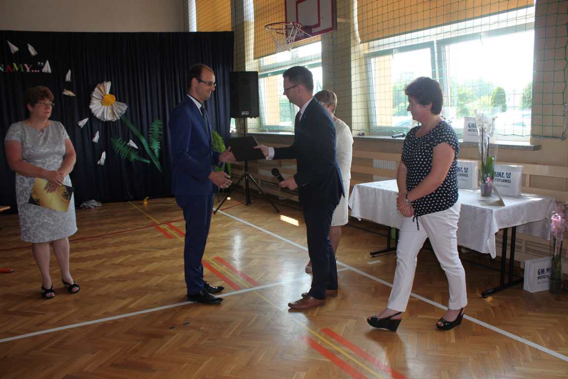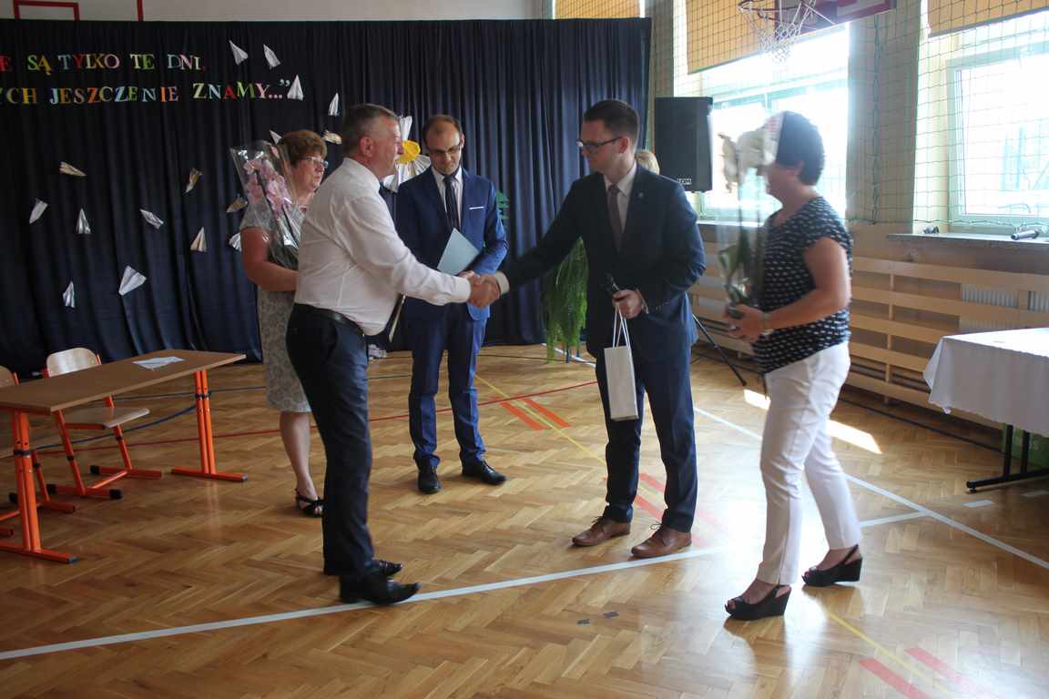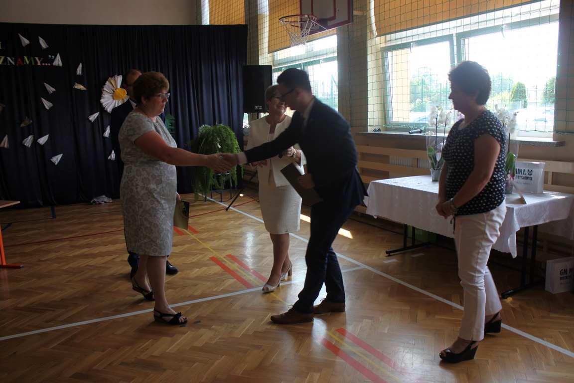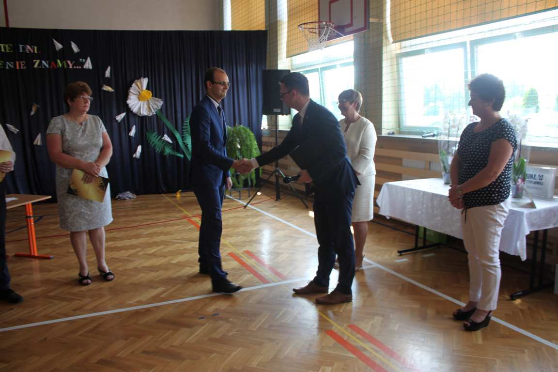 Uroczystość zakończenia roku szkolnego świętowało z nami troje nauczycieli, z którymi nie spotkamy się we wrześniu. Po kilkudziesięciu latach pracy przy tablicy na emeryturę odeszli pani Małgorzata Sieradzka oraz pan Stanisław Magiera. Nasze grono niespodziewanie opuścił również wicedyrektor, pan Michał Wolak, który po wygranym konkursie, od września obejmie posadę dyrektora liceum w Dąbrowie Tarnowskiej. Fakt, że zdajemy sobie sprawę, iż życie to ciągłe rozstania, nie ułatwia niestety pożegnania… Spędziliśmy ze sobą dużo czasu, wystarczająco dużo, żeby się poznać i zaprzyjaźnić, żeby mieć wspólne tematy do rozmów, żartów i przekomarzań. Dziękujemy za spędzone razem chwile, za uśmiech, pomoc, dobre słowo, jakich nigdy nam nie szczędziliście. „Decyzja oswojenia zawsze niesie ze sobą ryzyko łez…” i choć dziś łzy same napływają do oczu, wierzymy, że przed Wami wiele, wiele radości 🙂 Mamy również nadzieję, że od czasu do czasu z nostalgią wspomnicie dni spędzone z nami i nadal będziemy dla Was przyjaciółmi. Życzymy siły do pokonywania wszelkich trudności oraz niegasnącej umiejętności cieszenia się życiem i napotkanymi ludźmi…:)