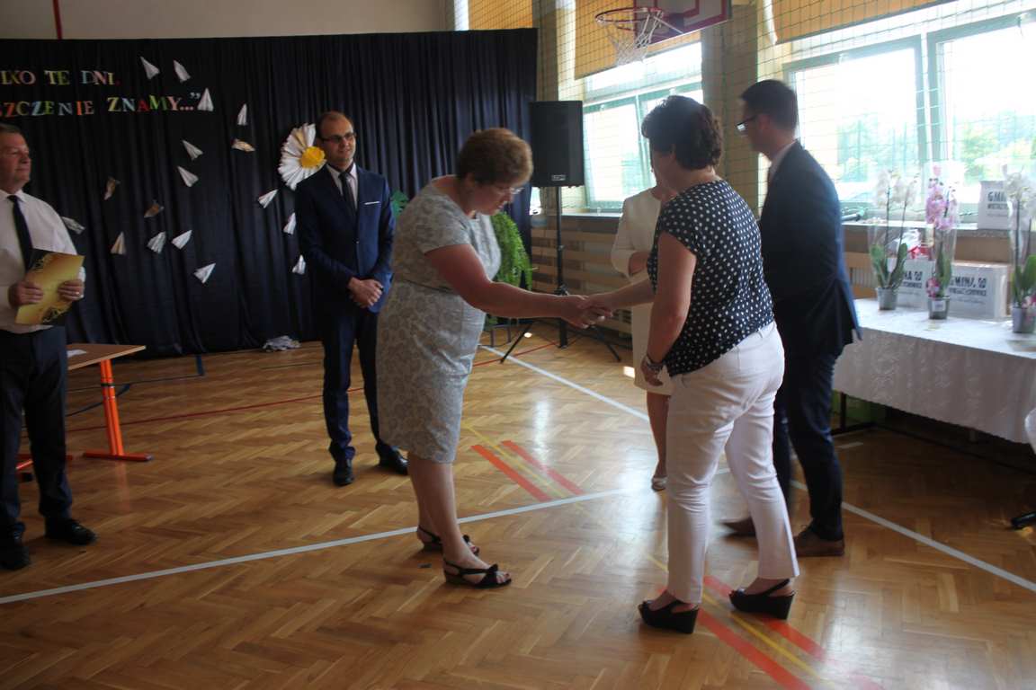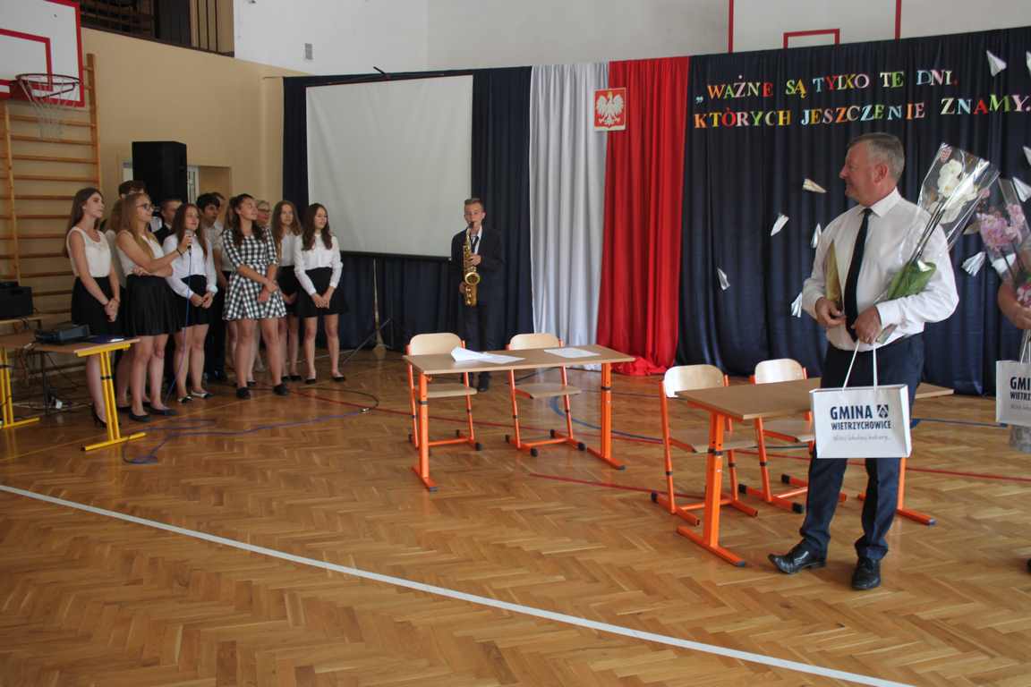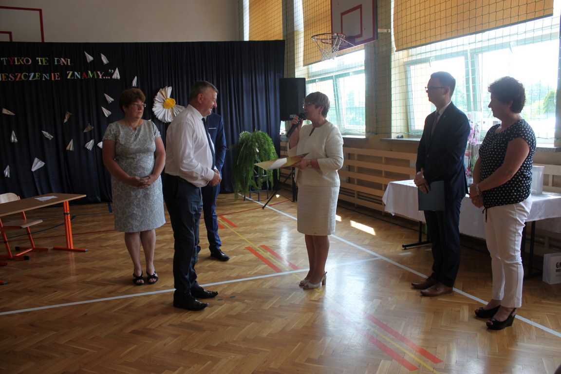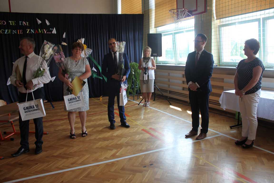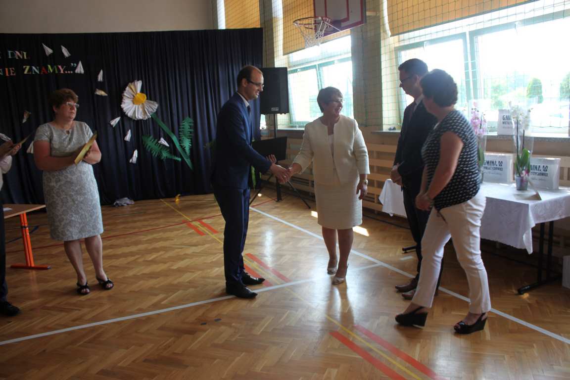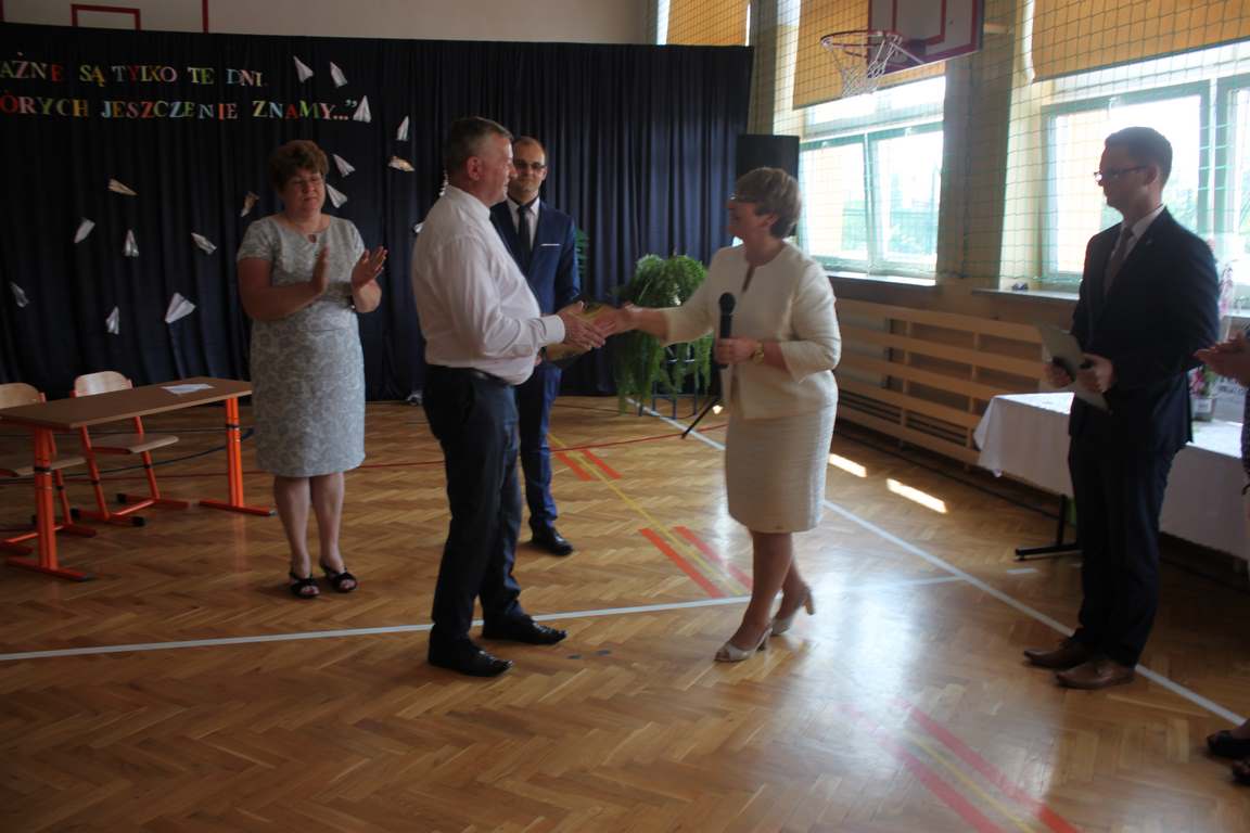 Uroczystość zakończenia roku szkolnego świętowało z nami troje nauczycieli, z którymi nie spotkamy się we wrześniu. Po kilkudziesięciu latach pracy przy tablicy na emeryturę odeszli pani Małgorzata Sieradzka oraz pan Stanisław Magiera. Nasze grono niespodziewanie opuścił również wicedyrektor, pan Michał Wolak, który po wygranym konkursie, od września obejmie posadę dyrektora liceum w Dąbrowie Tarnowskiej. Fakt, że zdajemy sobie sprawę, iż życie to ciągłe rozstania, nie ułatwia niestety pożegnania… Spędziliśmy ze sobą dużo czasu, wystarczająco dużo, żeby się poznać i zaprzyjaźnić, żeby mieć wspólne tematy do rozmów, żartów i przekomarzań. Dziękujemy za spędzone razem chwile, za uśmiech, pomoc, dobre słowo, jakich nigdy nam nie szczędziliście. „Decyzja oswojenia zawsze niesie ze sobą ryzyko łez…” i choć dziś łzy same napływają do oczu, wierzymy, że przed Wami wiele, wiele radości 🙂 Mamy również nadzieję, że od czasu do czasu z nostalgią wspomnicie dni spędzone z nami i nadal będziemy dla Was przyjaciółmi. Życzymy siły do pokonywania wszelkich trudności oraz niegasnącej umiejętności cieszenia się życiem i napotkanymi ludźmi…:)