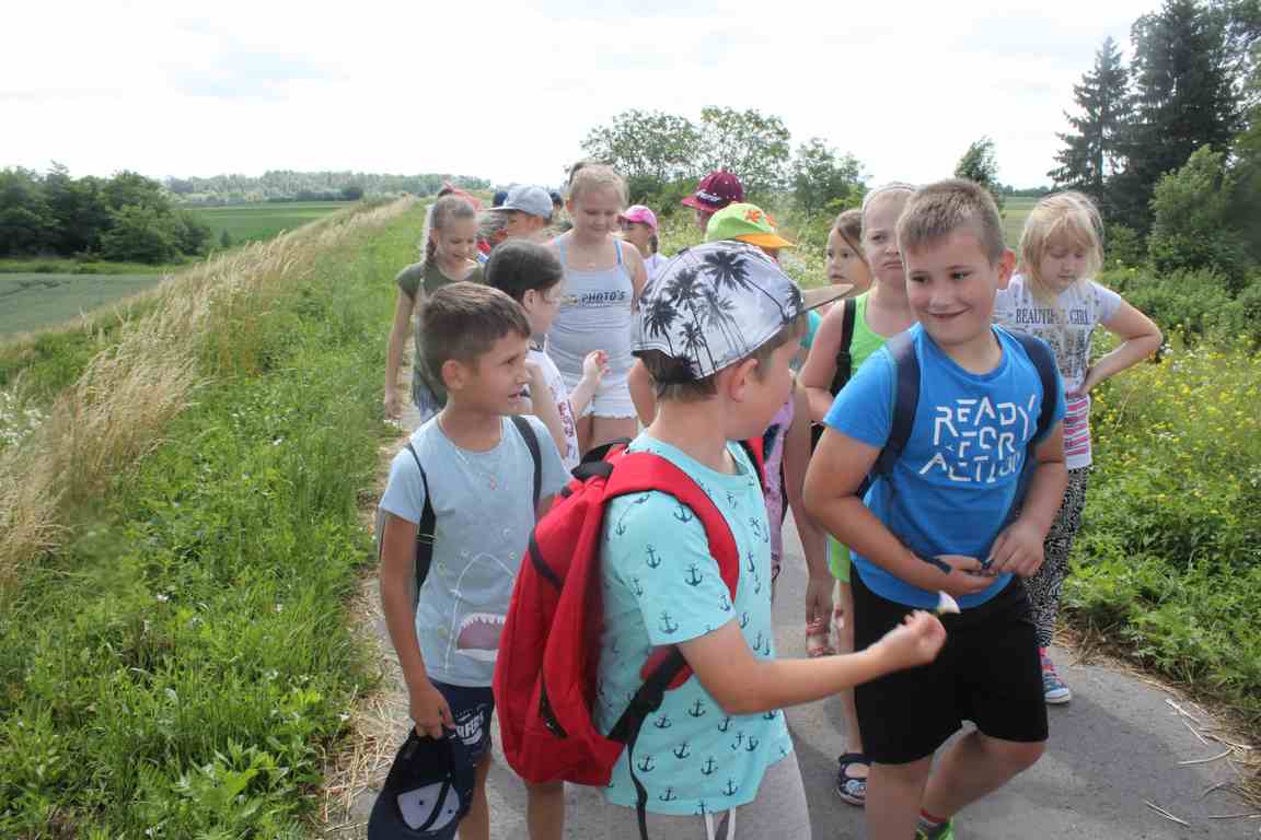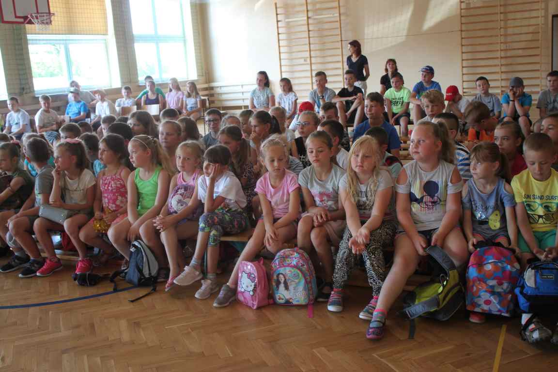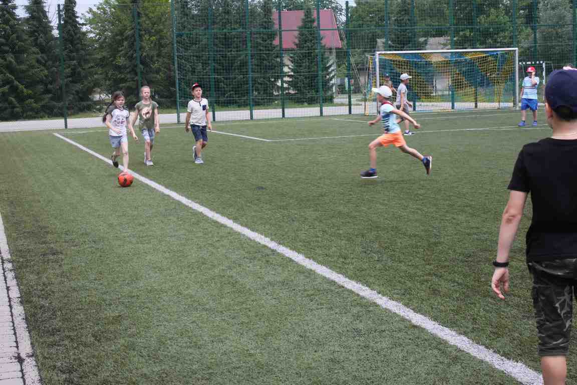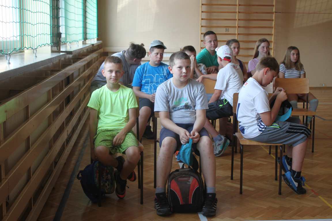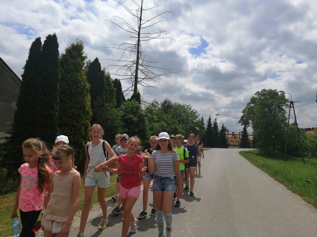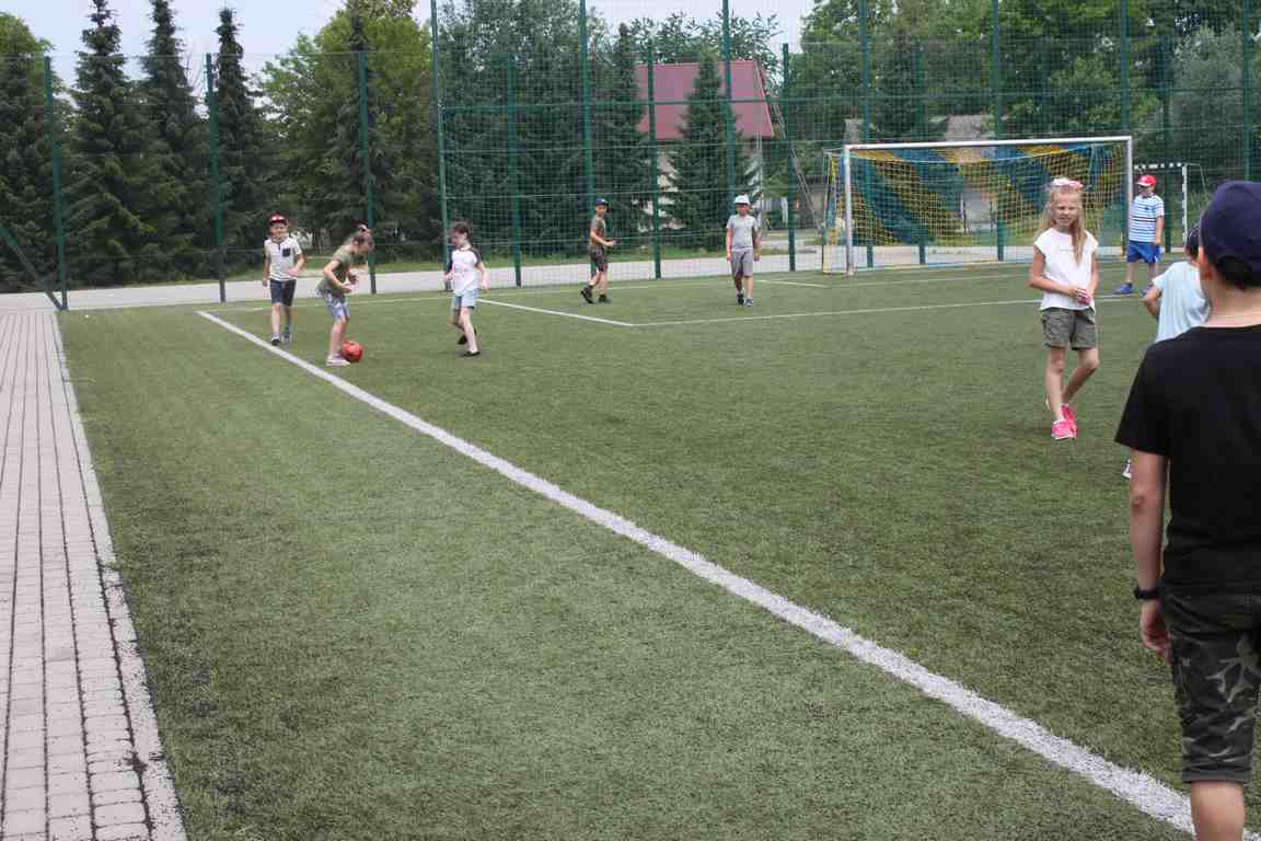 Wraz z początkiem wakacji w naszej szkole rozpoczęła się kolejna już Półkolonia. Pierwszy dzień tradycyjnie nastawiony był na zapoznanie się i integrację. Młodsze dzieci wybrały się na długi spacer po okolicy, rozegrały mecze piłki nożnej oraz do oporu korzystały z placu zabaw wykazując się niezwykłą kreatywnością w wymyślaniu różnego rodzaju gier. Znalazły również czas na rozegranie pierwszego etapu turnieju wiedzy „1 z 10”. Grupa starsza również wykorzystała piękną pogodę na gry i zabawy na świeżym powietrzu. Ponadto rozegrała zawody w przeciąganiu liny oraz odbyła wycieczkę po okolicy połączoną z konkursem plastycznym:)