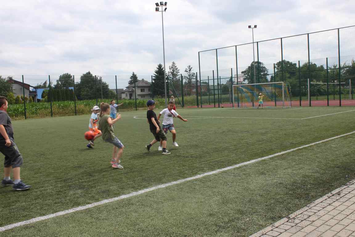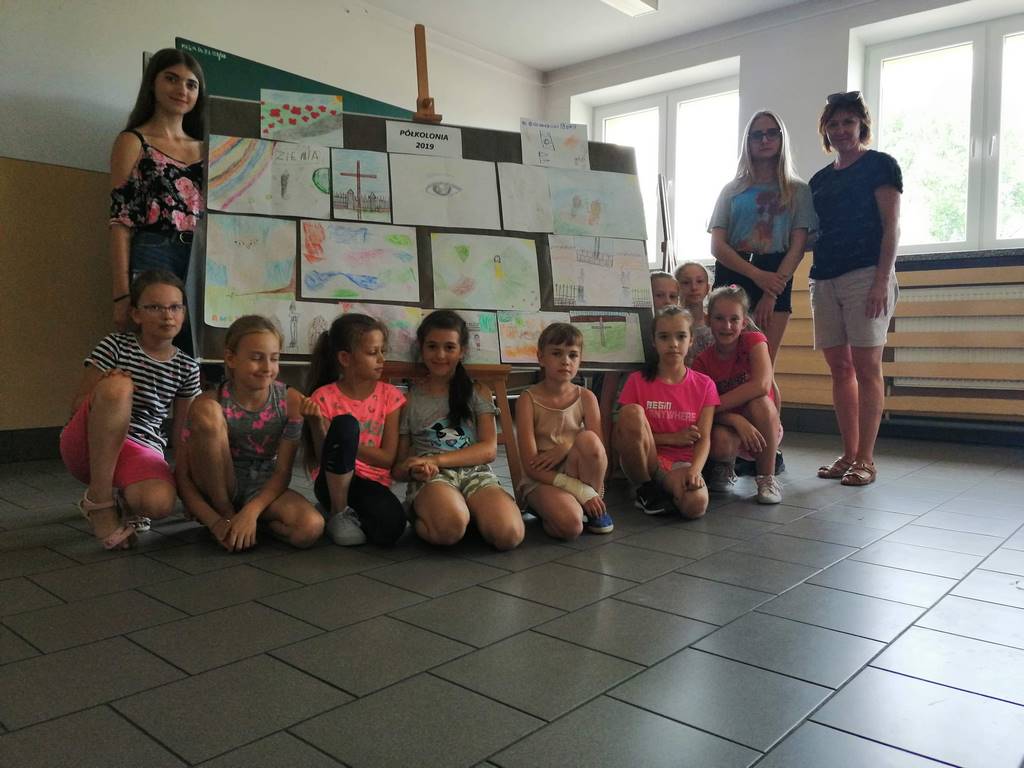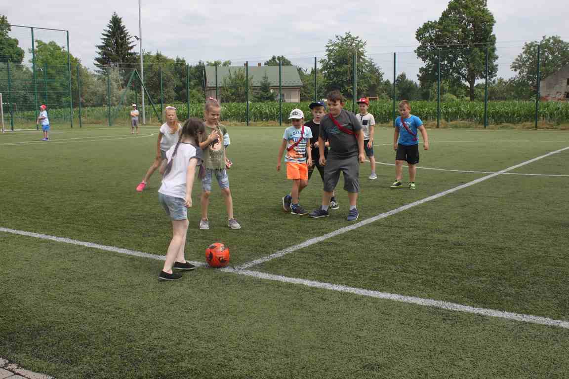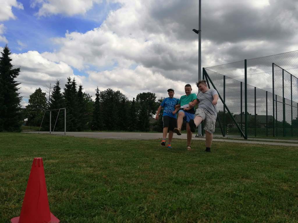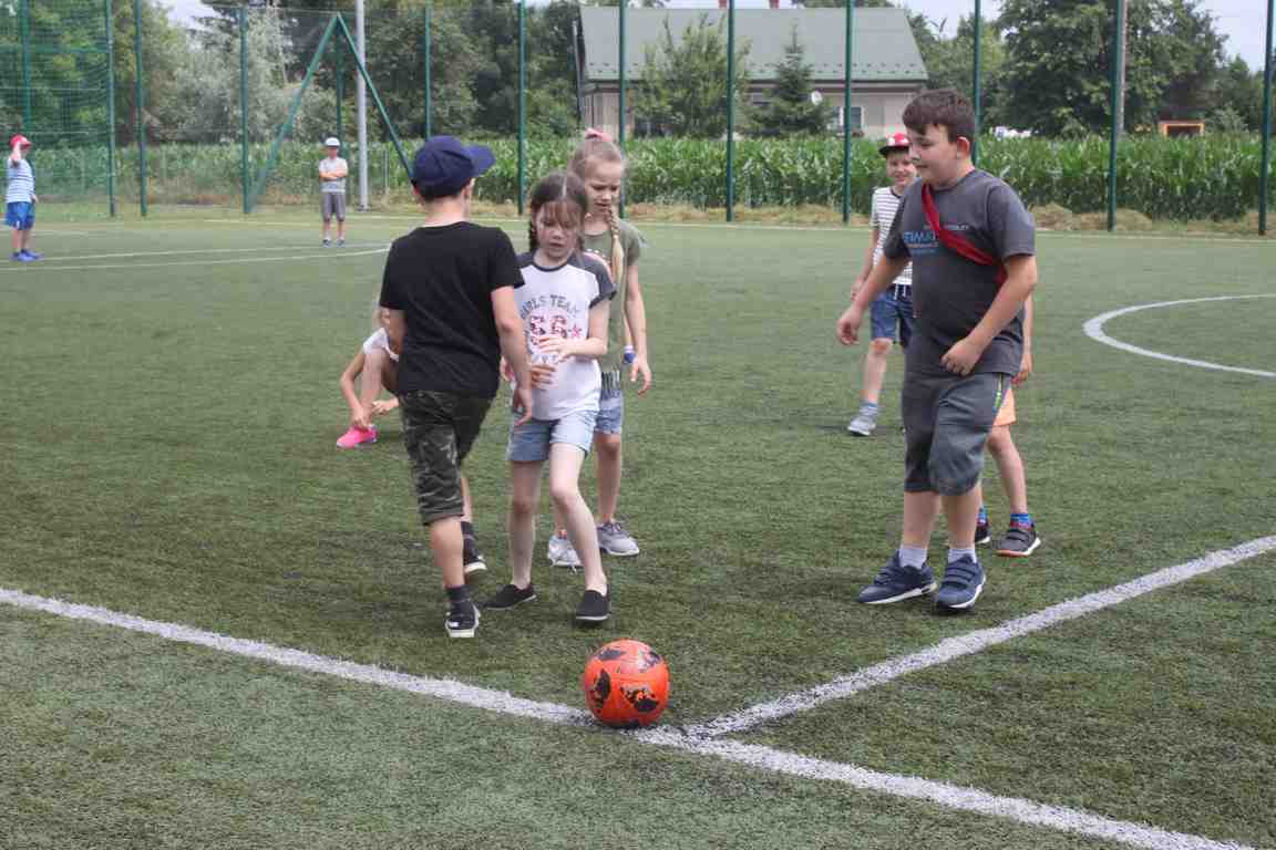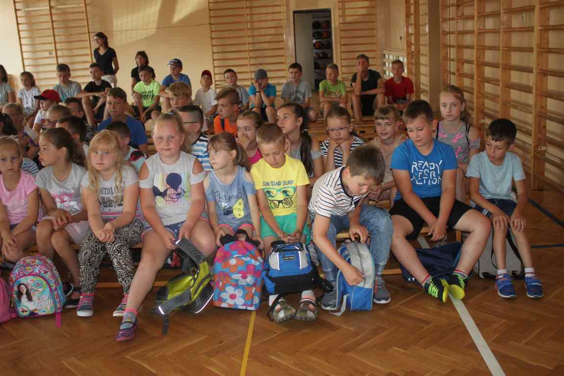 Wraz z początkiem wakacji w naszej szkole rozpoczęła się kolejna już Półkolonia. Pierwszy dzień tradycyjnie nastawiony był na zapoznanie się i integrację. Młodsze dzieci wybrały się na długi spacer po okolicy, rozegrały mecze piłki nożnej oraz do oporu korzystały z placu zabaw wykazując się niezwykłą kreatywnością w wymyślaniu różnego rodzaju gier. Znalazły również czas na rozegranie pierwszego etapu turnieju wiedzy „1 z 10”. Grupa starsza również wykorzystała piękną pogodę na gry i zabawy na świeżym powietrzu. Ponadto rozegrała zawody w przeciąganiu liny oraz odbyła wycieczkę po okolicy połączoną z konkursem plastycznym:)