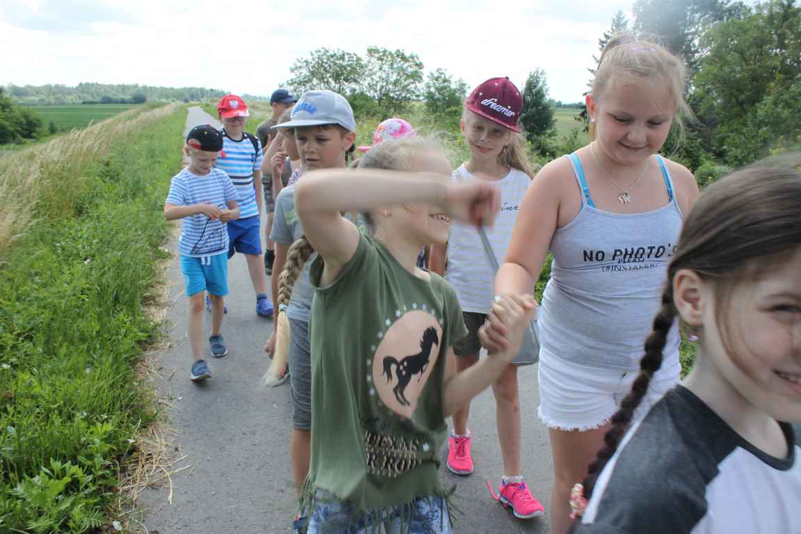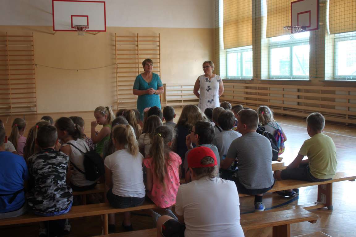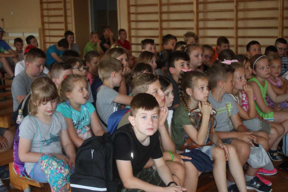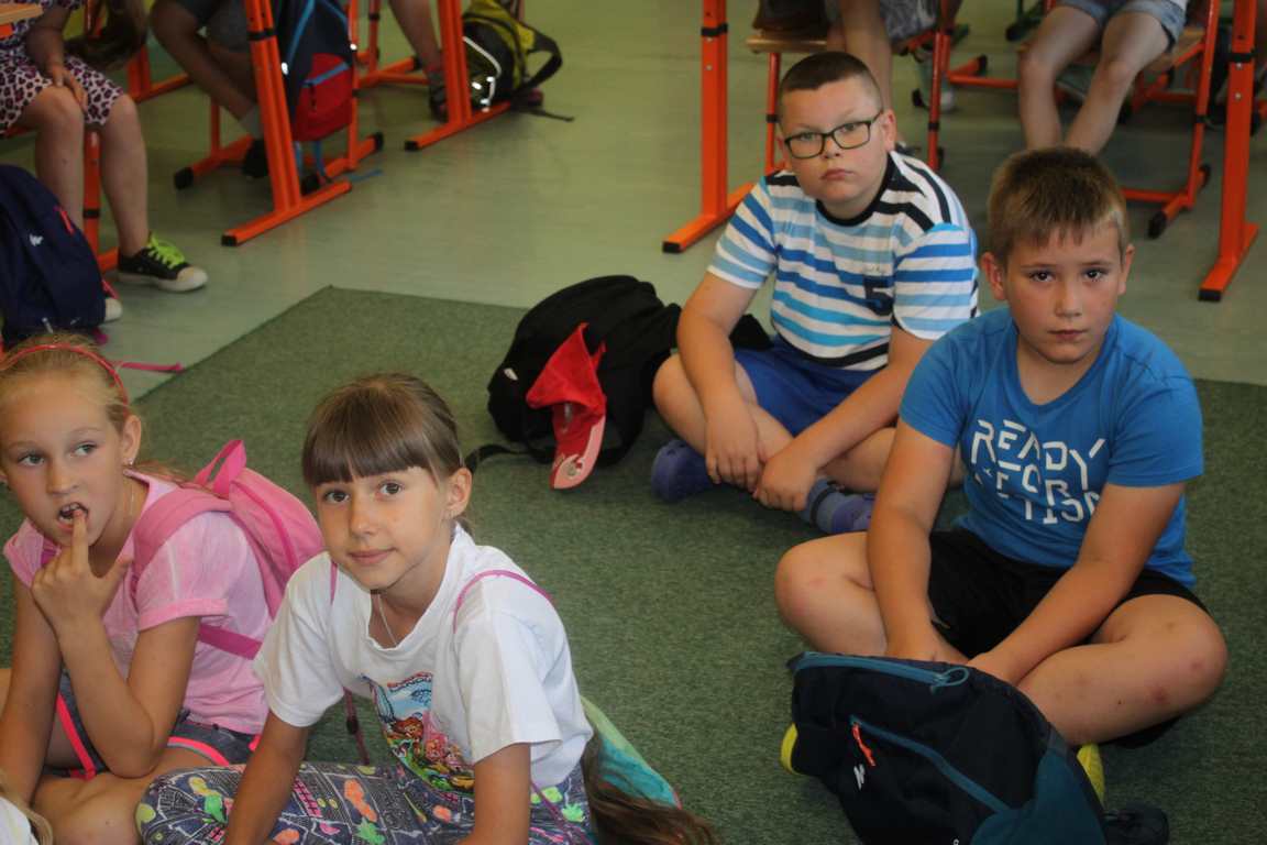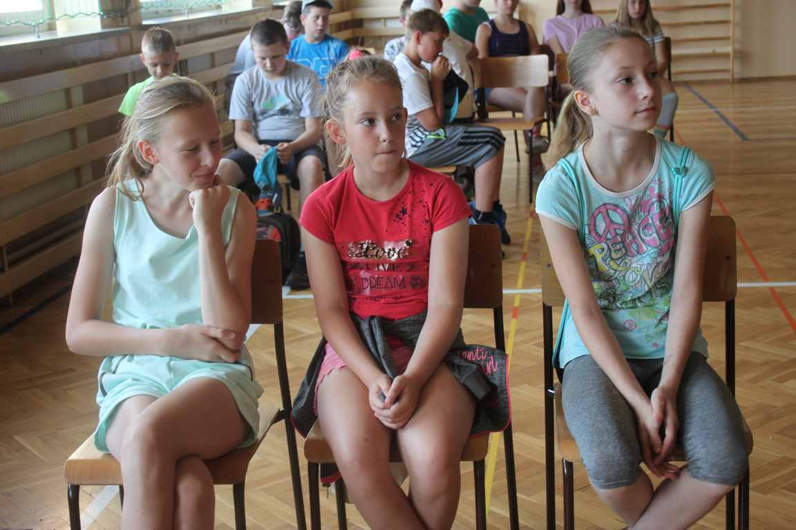 Wraz z początkiem wakacji w naszej szkole rozpoczęła się kolejna już Półkolonia. Pierwszy dzień tradycyjnie nastawiony był na zapoznanie się i integrację. Młodsze dzieci wybrały się na długi spacer po okolicy, rozegrały mecze piłki nożnej oraz do oporu korzystały z placu zabaw wykazując się niezwykłą kreatywnością w wymyślaniu różnego rodzaju gier. Znalazły również czas na rozegranie pierwszego etapu turnieju wiedzy „1 z 10”. Grupa starsza również wykorzystała piękną pogodę na gry i zabawy na świeżym powietrzu. Ponadto rozegrała zawody w przeciąganiu liny oraz odbyła wycieczkę po okolicy połączoną z konkursem plastycznym:)