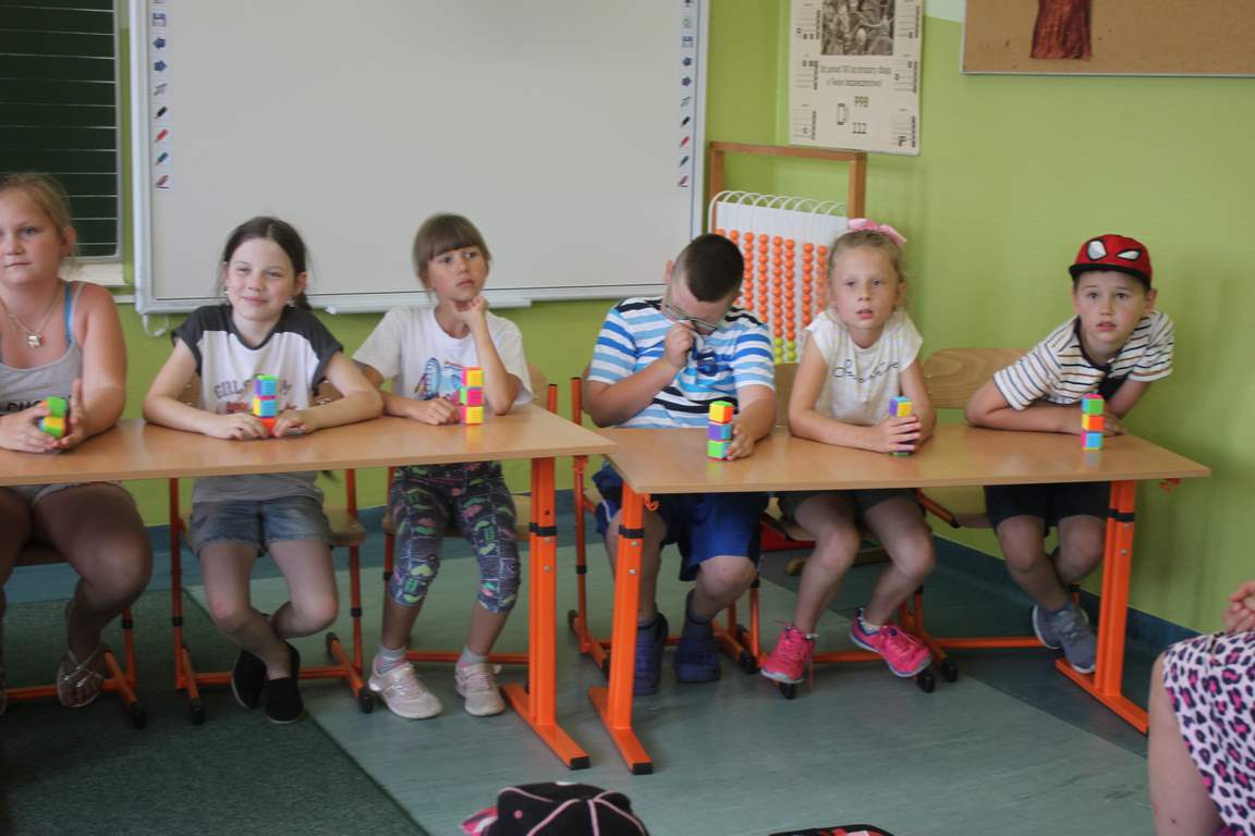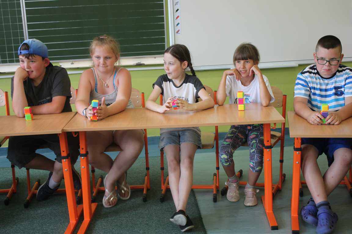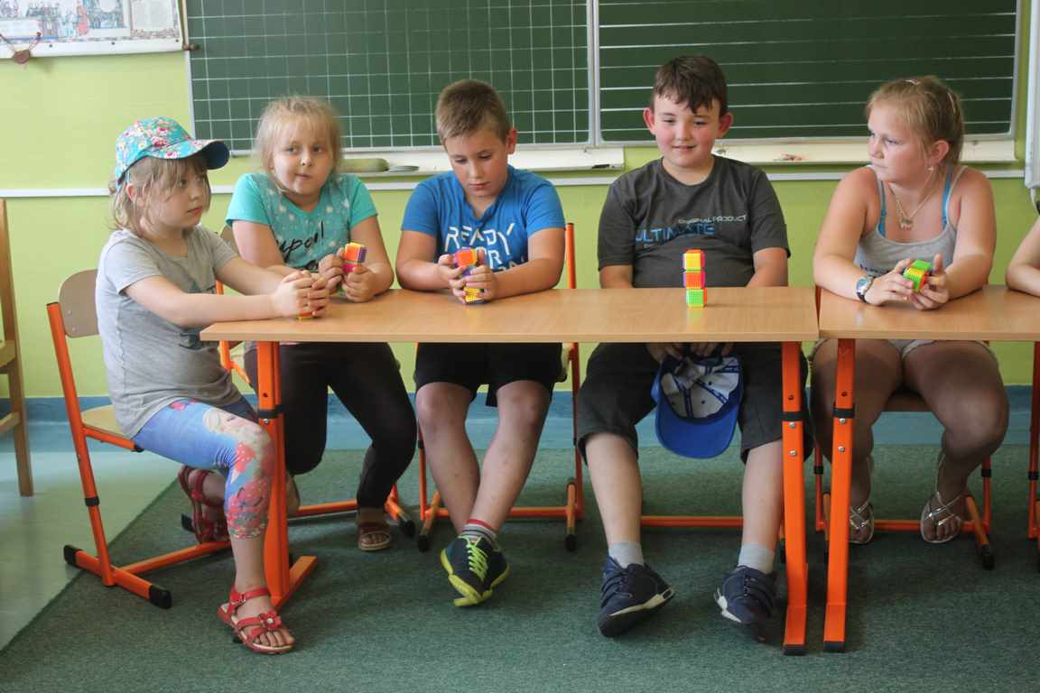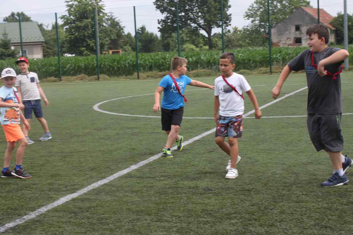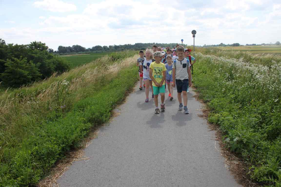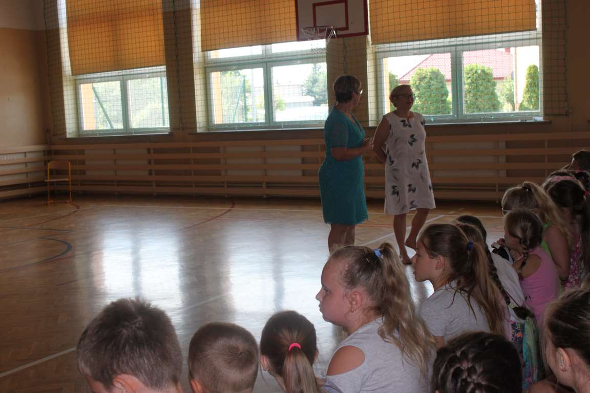 Wraz z początkiem wakacji w naszej szkole rozpoczęła się kolejna już Półkolonia. Pierwszy dzień tradycyjnie nastawiony był na zapoznanie się i integrację. Młodsze dzieci wybrały się na długi spacer po okolicy, rozegrały mecze piłki nożnej oraz do oporu korzystały z placu zabaw wykazując się niezwykłą kreatywnością w wymyślaniu różnego rodzaju gier. Znalazły również czas na rozegranie pierwszego etapu turnieju wiedzy „1 z 10”. Grupa starsza również wykorzystała piękną pogodę na gry i zabawy na świeżym powietrzu. Ponadto rozegrała zawody w przeciąganiu liny oraz odbyła wycieczkę po okolicy połączoną z konkursem plastycznym:)