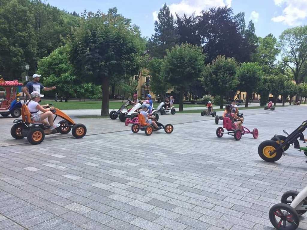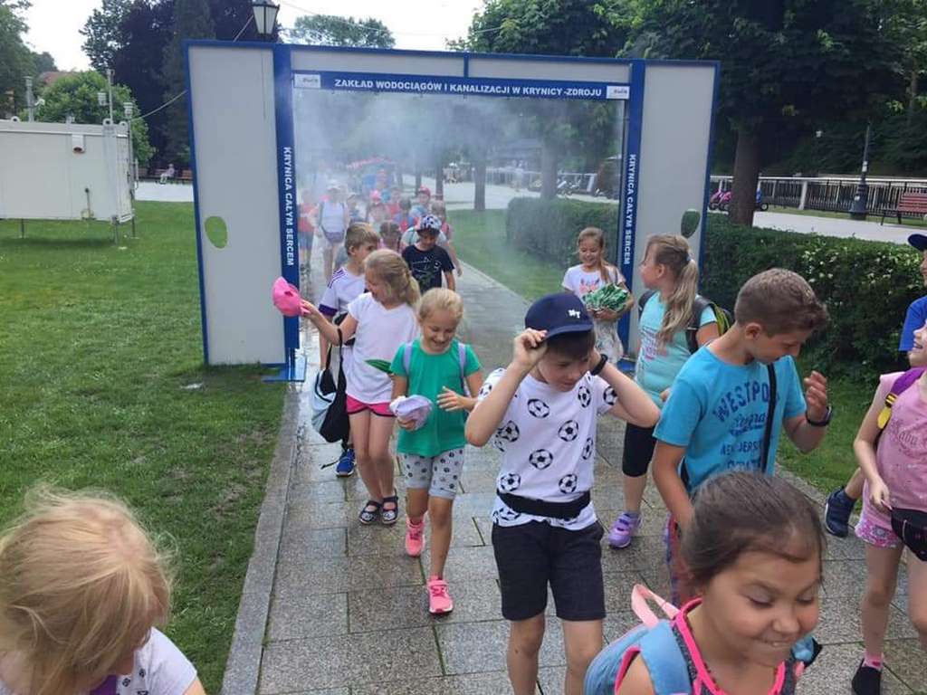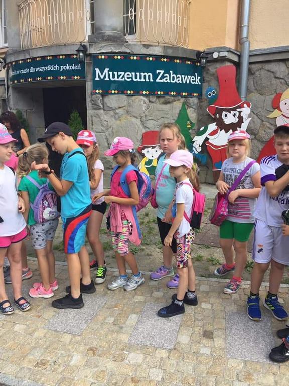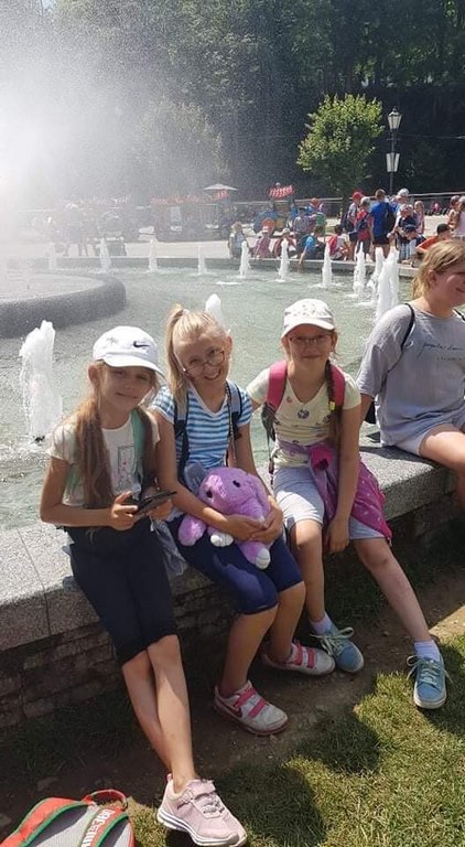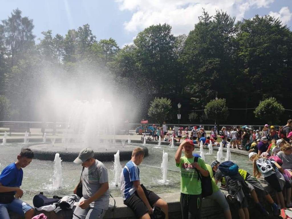 Dzisiejszy dzień obie grupy spędziły w Krynicy. Młodsi zwiedzili Muzeum Zabawek, spacerowali po rynku oraz szaleli na gokartach 🙂 Starsi mieli bardziej „pod górkę”: z centrum przez Huzara wyruszyli na Górę Parkową, po której zdobyciu i obowiązkowym zakupie pamiątek zeszli obok Pijalni wód i spotkali się z młodszymi kolegami 🙂 Pobyt w centrum zakończył wspólny odpoczynek przy fontannie, chwila ochłody pod kurtyną wodną i przejście do autokarów, które zawiozły wszystkich na pyszny, suty obiad do restauracji „Cichy kącik” 🙂