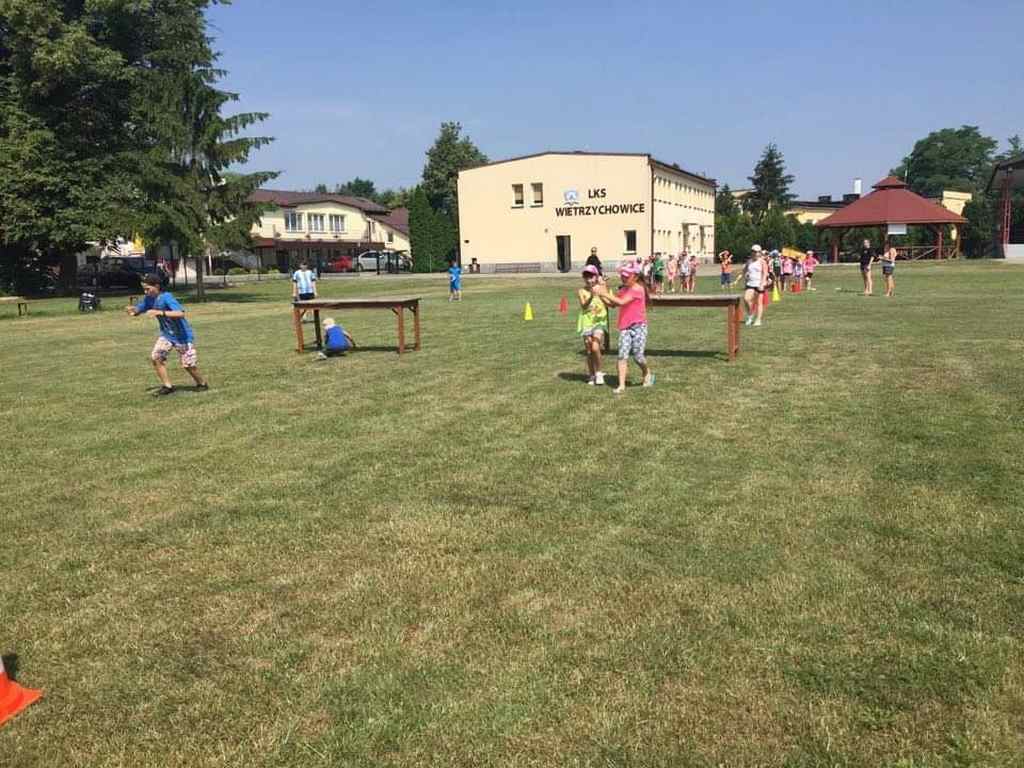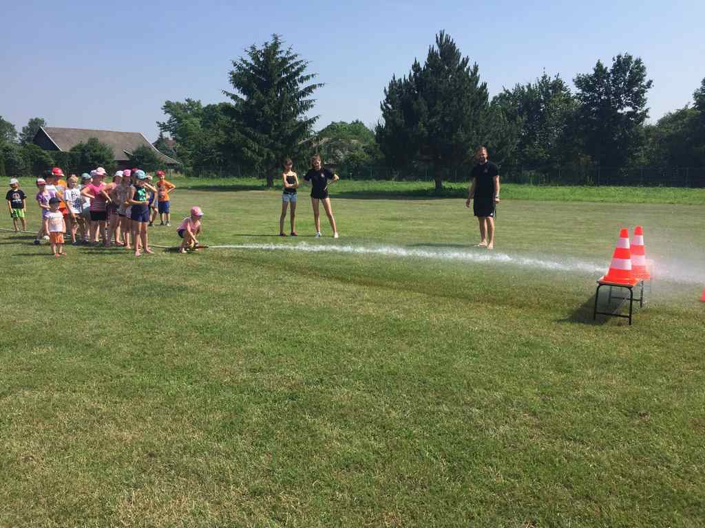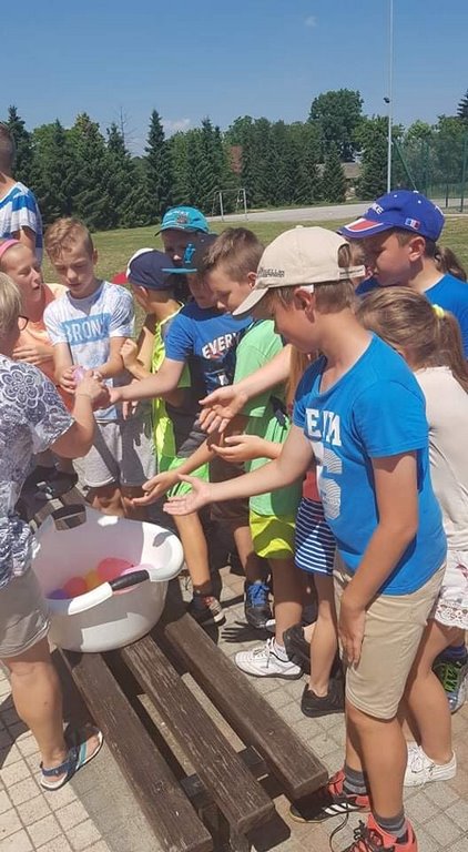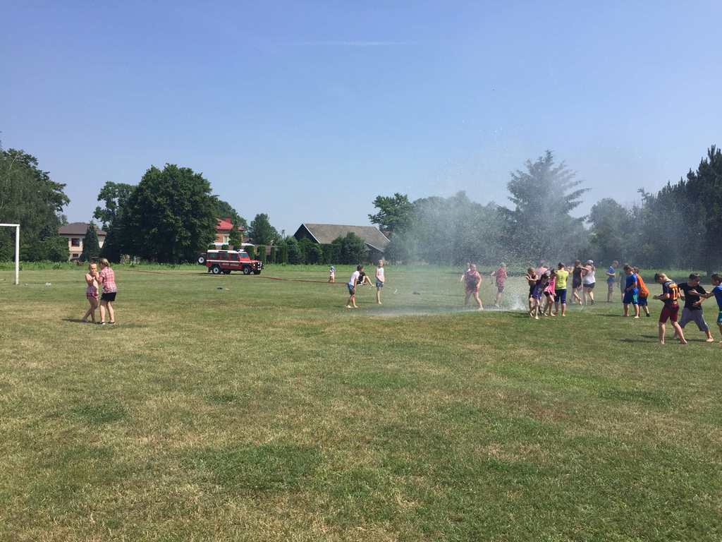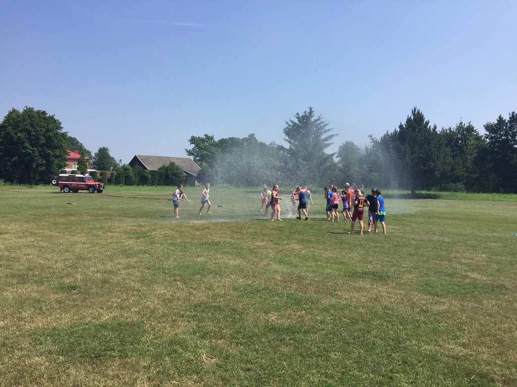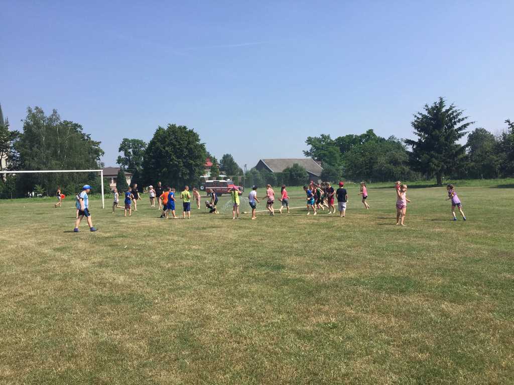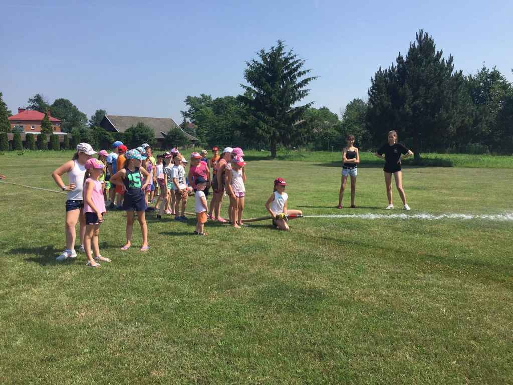 Dziś było upalnie, ale za to mokro i wesoło. Grupa młodsza spędziła dzień ze strażakami z OSP Wietrzychowice, którzy przygotowali dla dzieciaków zawody strażackie, a na koniec największą radość – kurtynę wodną, za co im bardzo serdecznie dziękujemy 🙂 Grupa starsza zgodnie z planem odbyła Dzień Sportu: były mecze piłki nożnej i mini siatkówki, zawody w kręceniu hula hop oraz bitwa na wodne baloniki 🙂