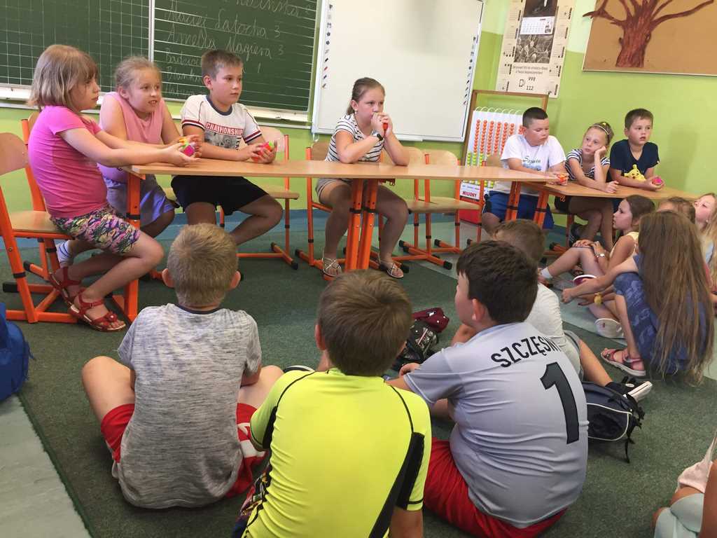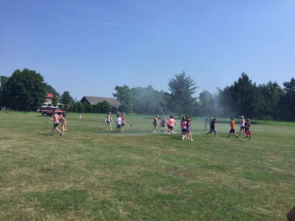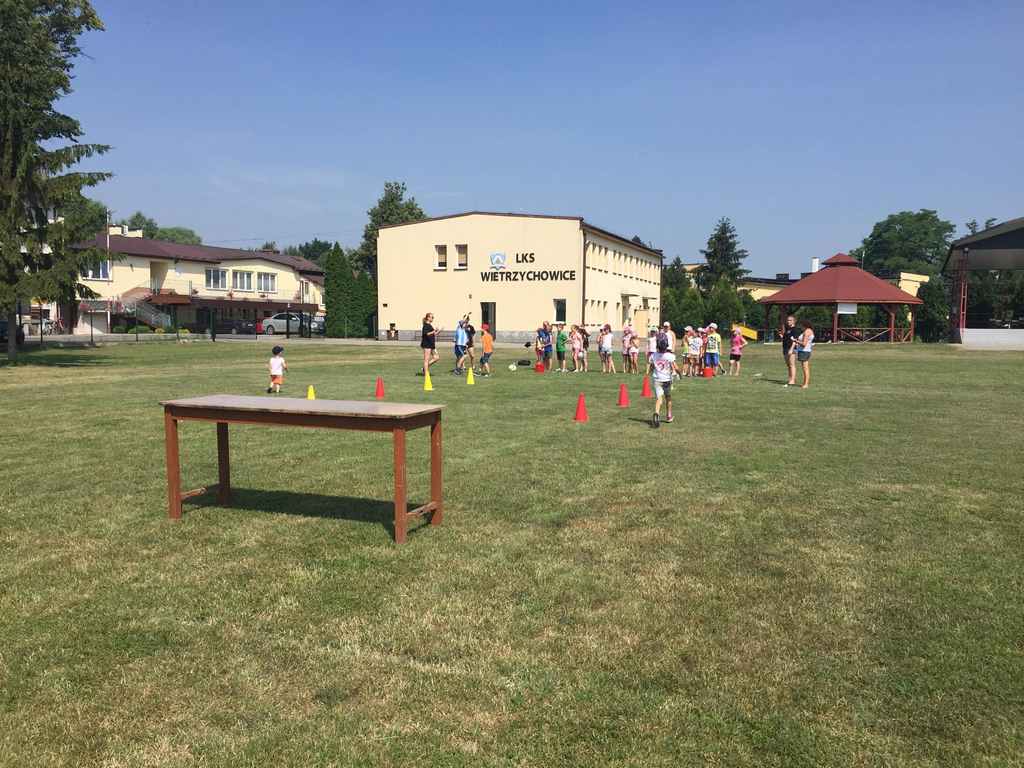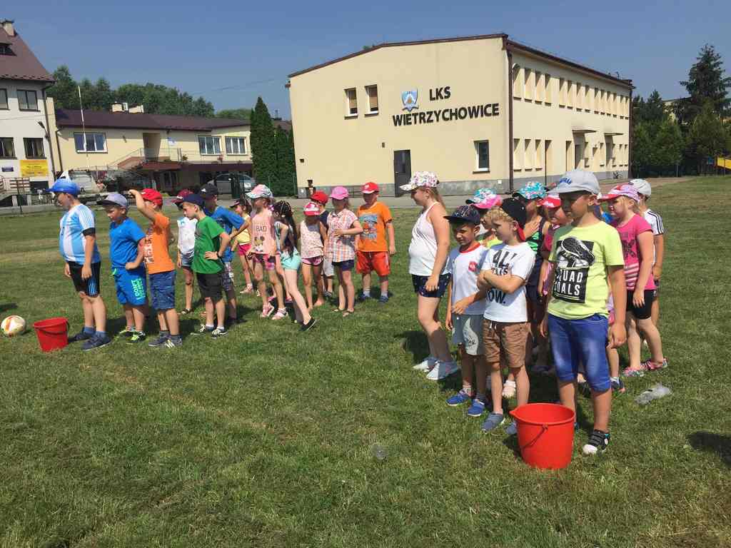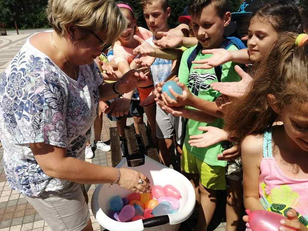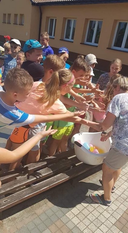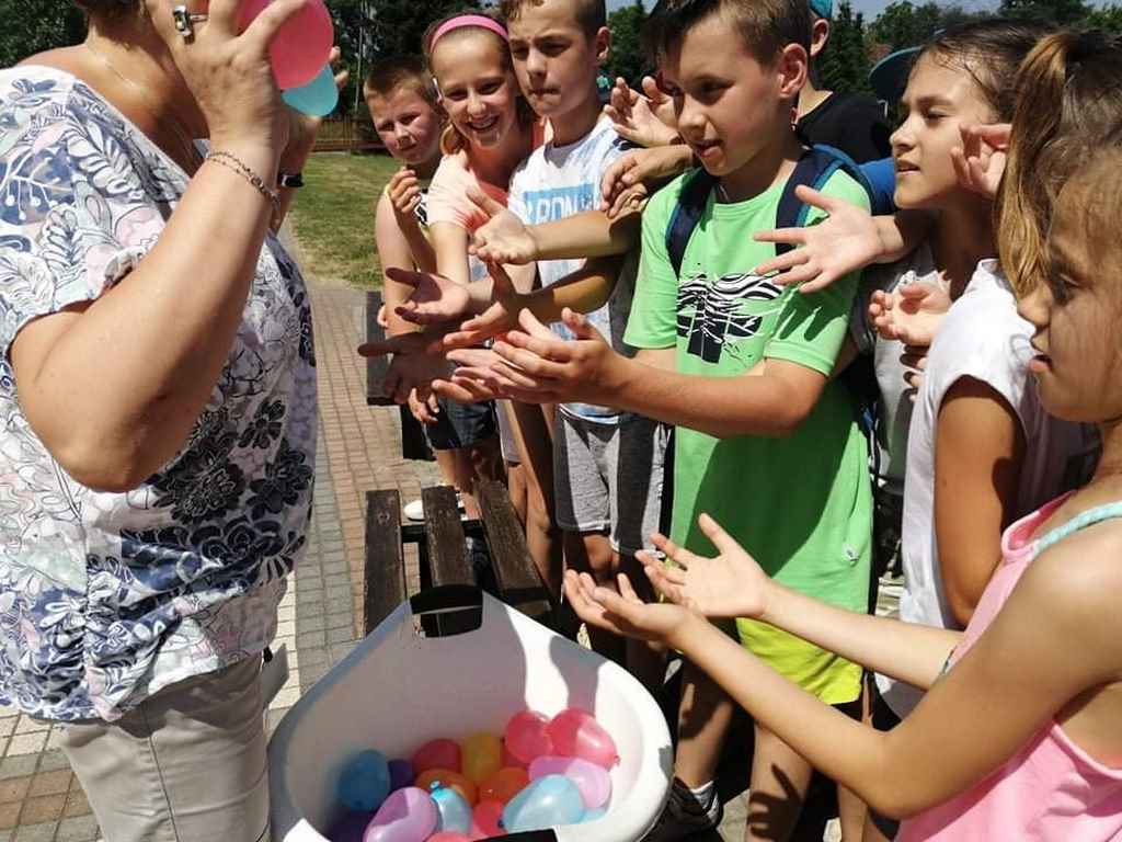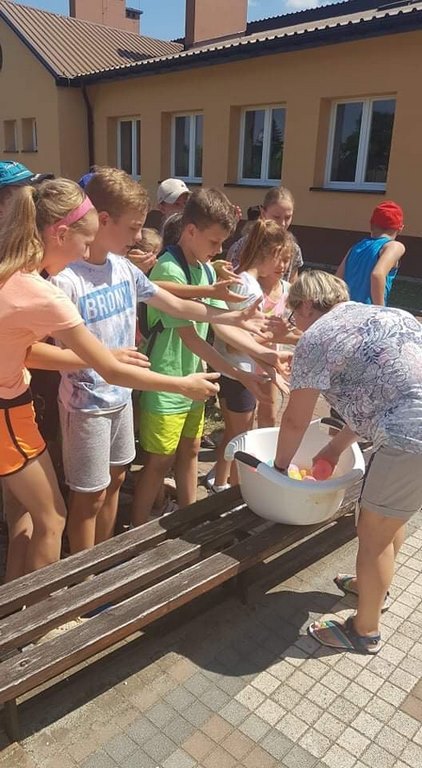 Dziś było upalnie, ale za to mokro i wesoło. Grupa młodsza spędziła dzień ze strażakami z OSP Wietrzychowice, którzy przygotowali dla dzieciaków zawody strażackie, a na koniec największą radość – kurtynę wodną, za co im bardzo serdecznie dziękujemy 🙂 Grupa starsza zgodnie z planem odbyła Dzień Sportu: były mecze piłki nożnej i mini siatkówki, zawody w kręceniu hula hop oraz bitwa na wodne baloniki 🙂
