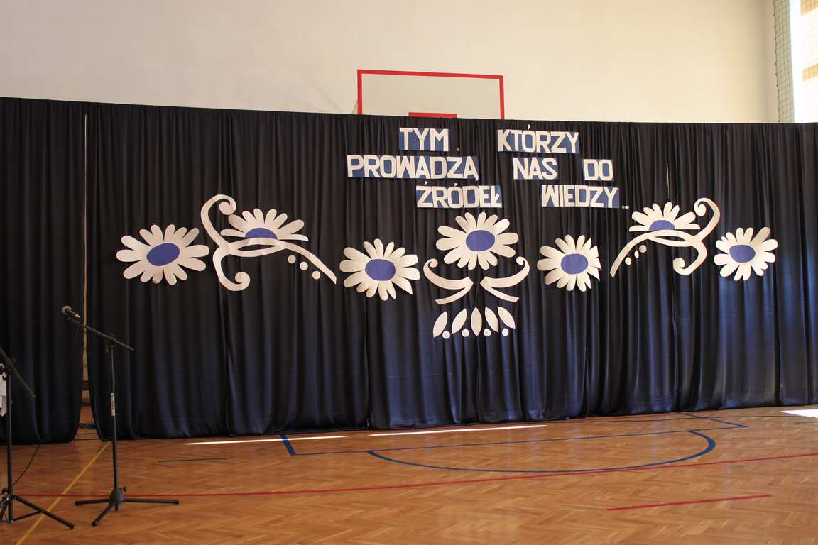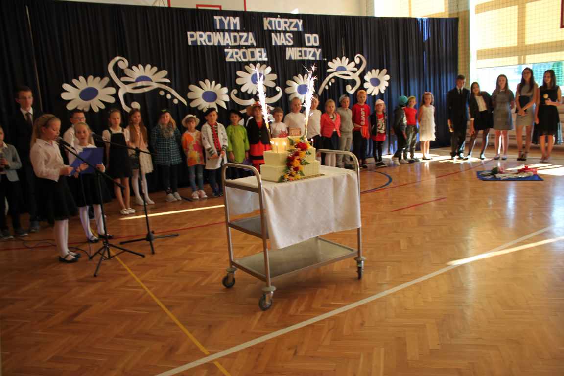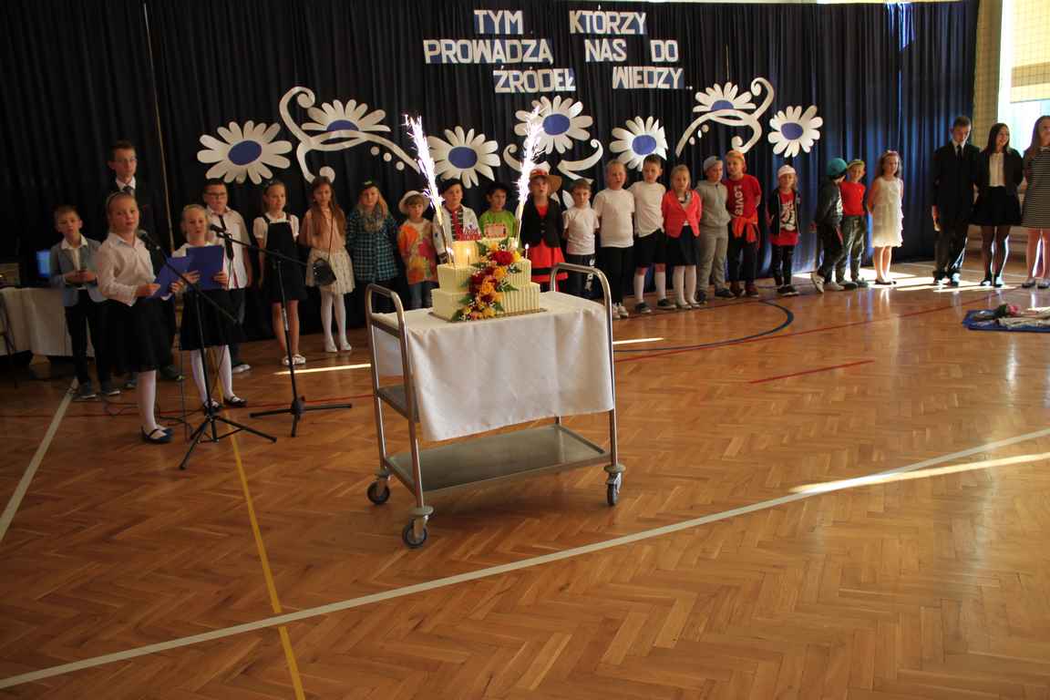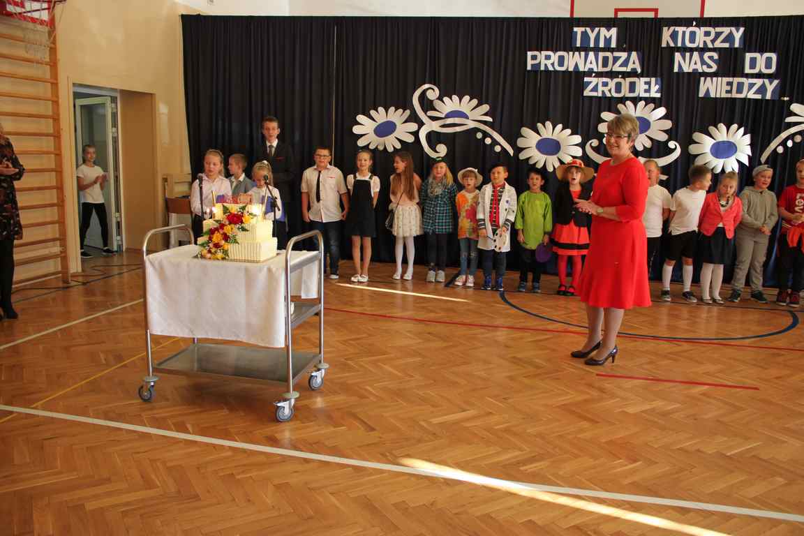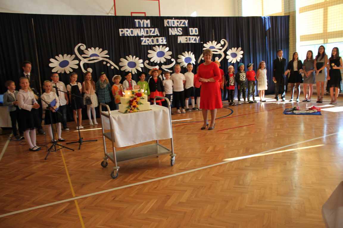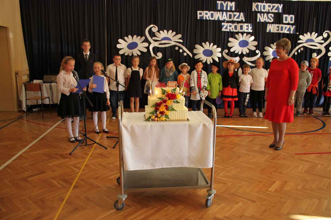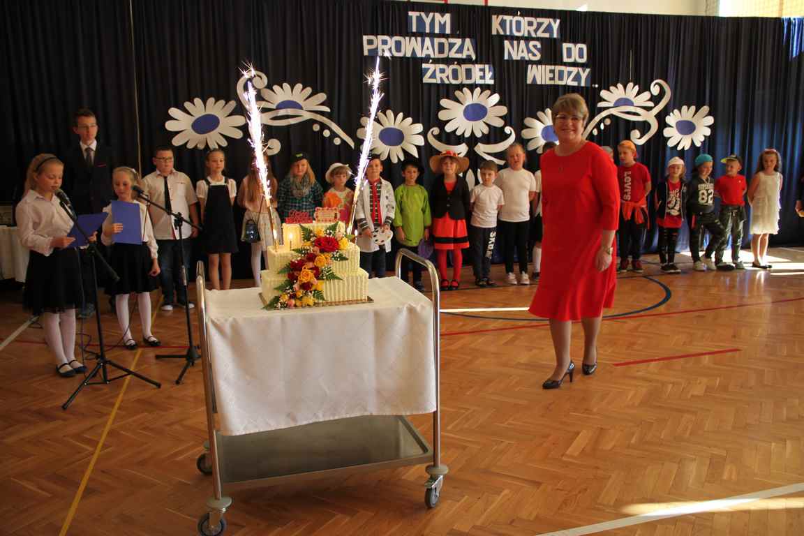 Dziś w naszej szkole odbyła się uroczystość z okazji Dnia Edukacji Narodowej, zwanego również Dniem Nauczyciela. Obchody rozpoczęliśmy modlitwą różańcową w kościele parafialnym w Wietrzychowicach, następnie zaś zgromadziliśmy się na sali gimnastycznej, gdzie klasy II i VIII b przedstawiły piękną akademię z humorem prezentującą życie szkoły, przygotowaną pod kierunkiem pań: Alicji Kozioł i Anny Sochy. Po części artystycznej, wójt gminy, pan Tomasz Banek oraz dyrektor szkoły, pani Jadwiga Łucarz, wręczyli nagrody wyróżniającym się nauczycielom i pracownikom szkoły. W świętowaniu tradycyjnie towarzyszyli nam liczni przyjaciele szkoły, którym serdecznie dziękujemy za obecność i chęć przeżywania z nami dzisiejszej uroczystości.