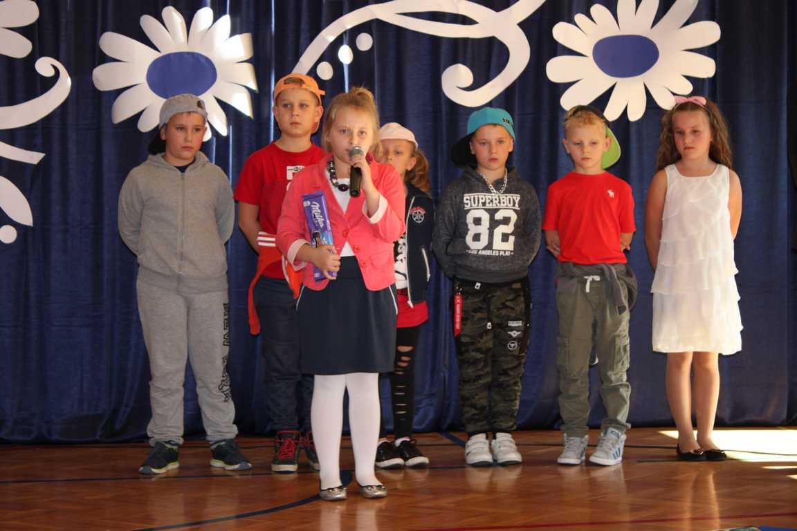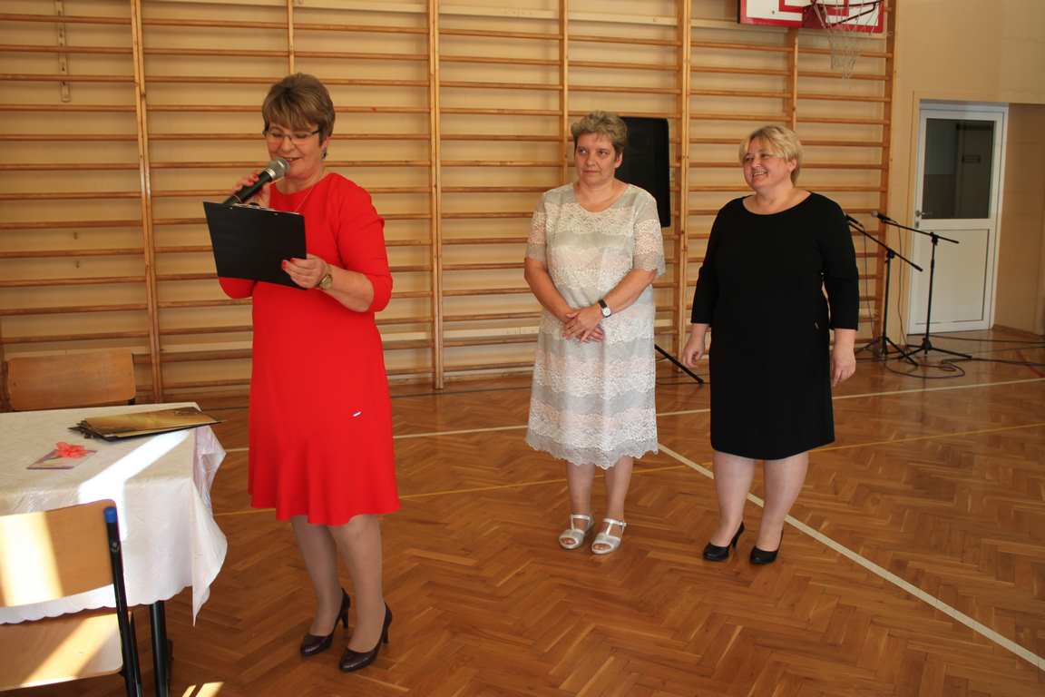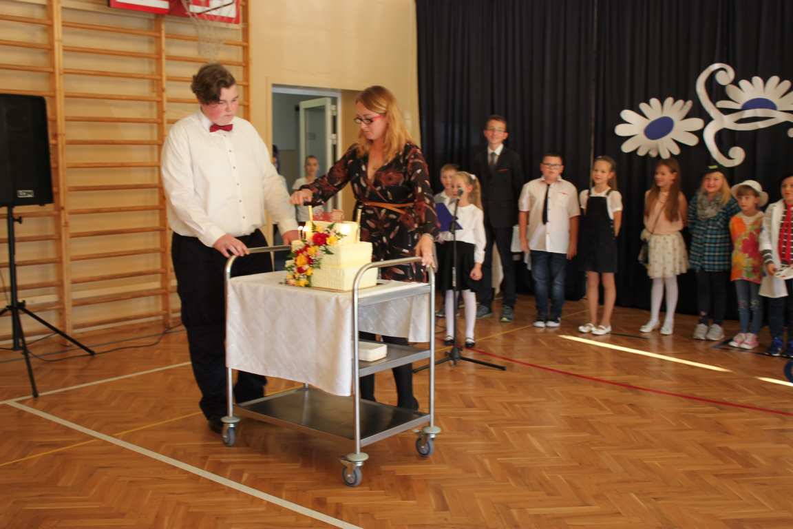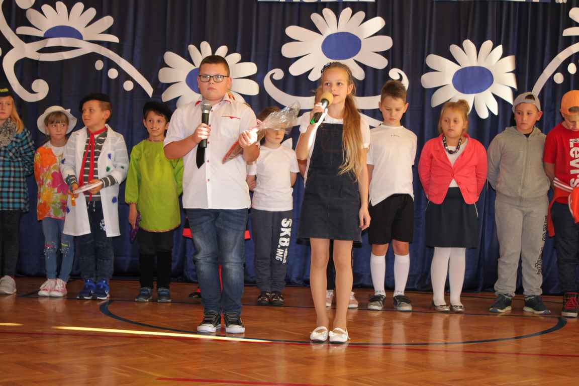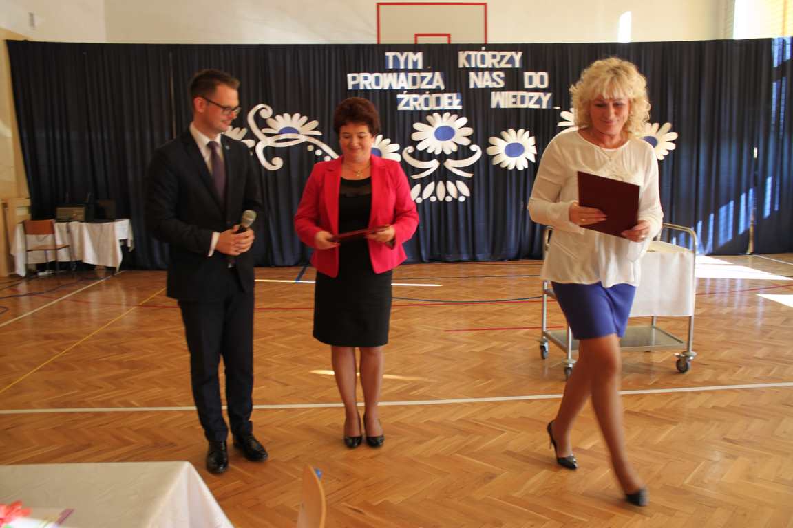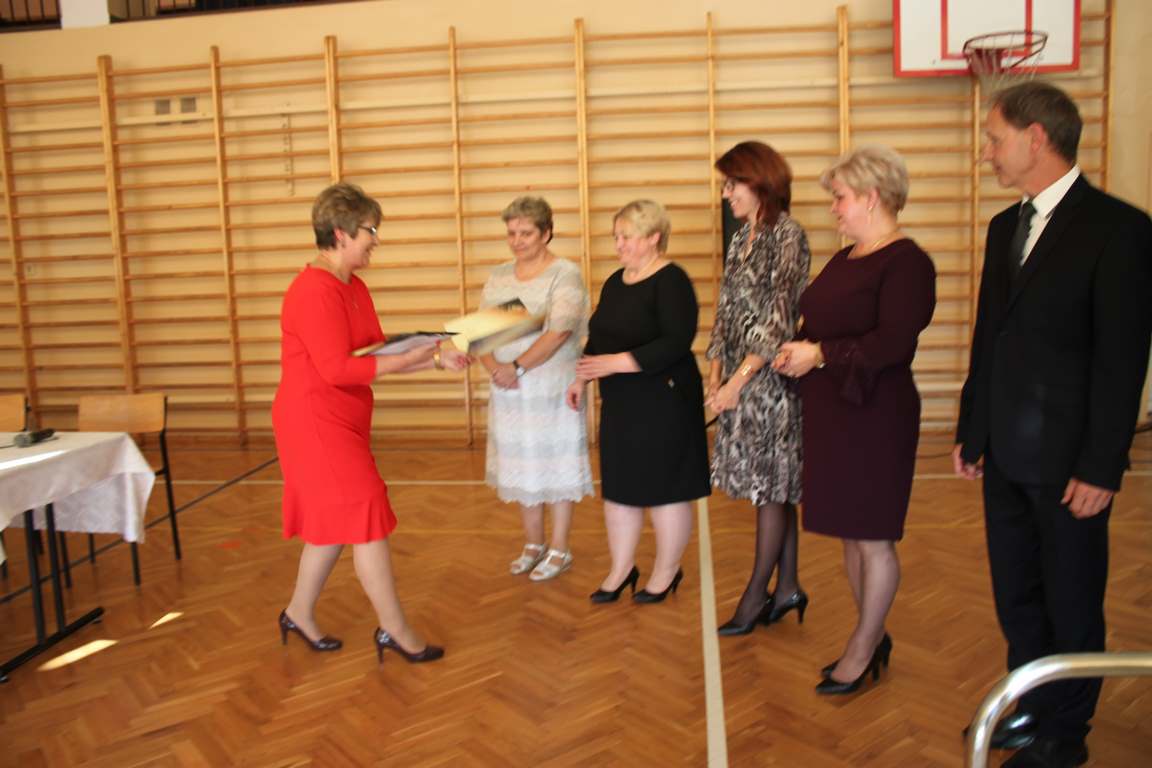 Dziś w naszej szkole odbyła się uroczystość z okazji Dnia Edukacji Narodowej, zwanego również Dniem Nauczyciela. Obchody rozpoczęliśmy modlitwą różańcową w kościele parafialnym w Wietrzychowicach, następnie zaś zgromadziliśmy się na sali gimnastycznej, gdzie klasy II i VIII b przedstawiły piękną akademię z humorem prezentującą życie szkoły, przygotowaną pod kierunkiem pań: Alicji Kozioł i Anny Sochy. Po części artystycznej, wójt gminy, pan Tomasz Banek oraz dyrektor szkoły, pani Jadwiga Łucarz, wręczyli nagrody wyróżniającym się nauczycielom i pracownikom szkoły. W świętowaniu tradycyjnie towarzyszyli nam liczni przyjaciele szkoły, którym serdecznie dziękujemy za obecność i chęć przeżywania z nami dzisiejszej uroczystości.