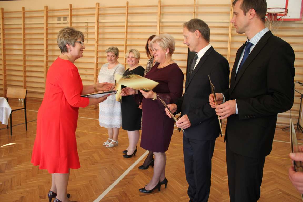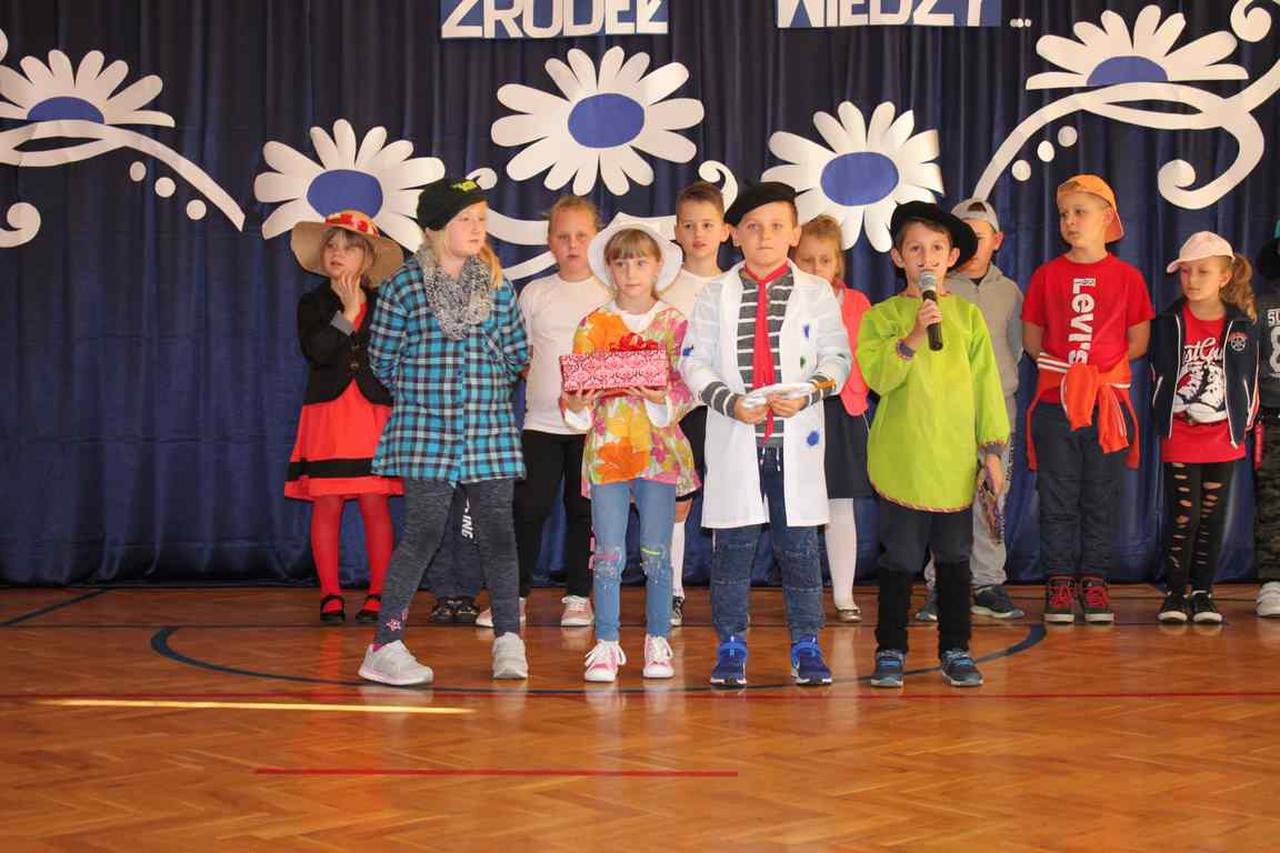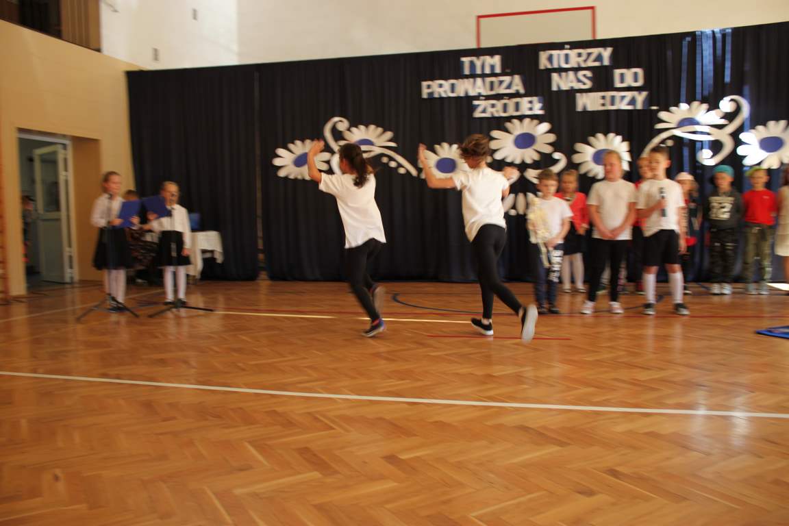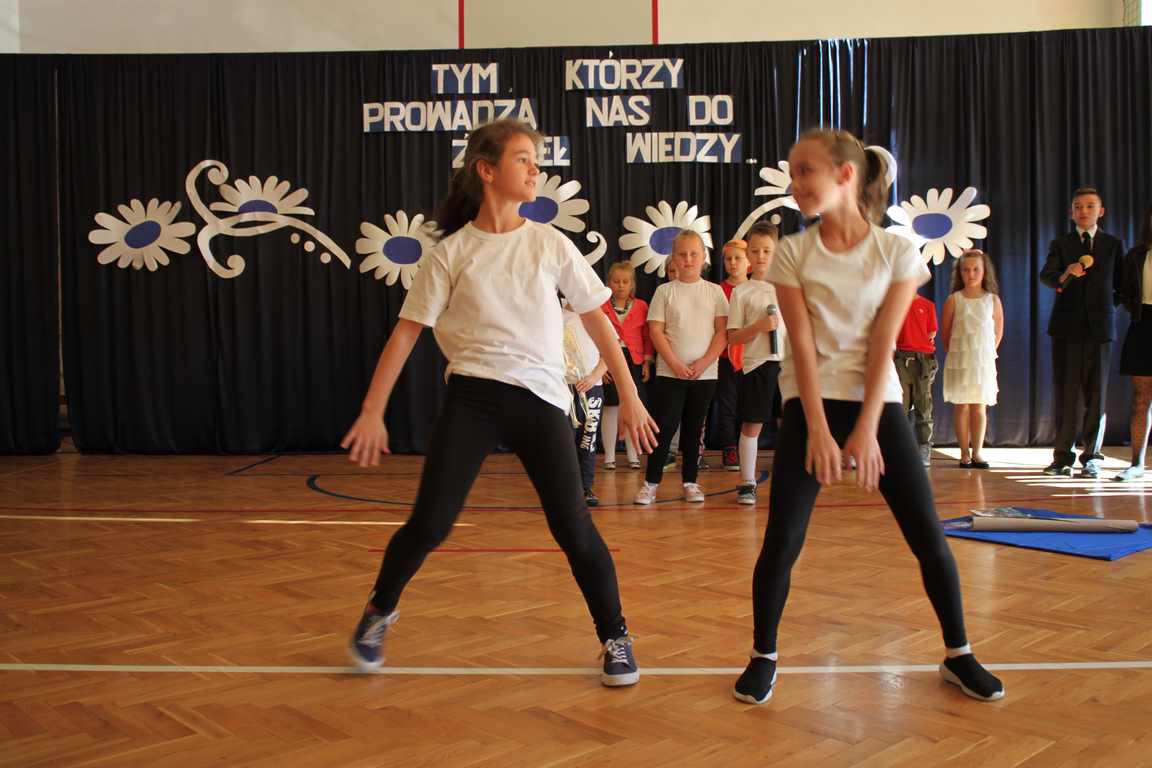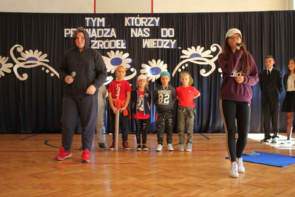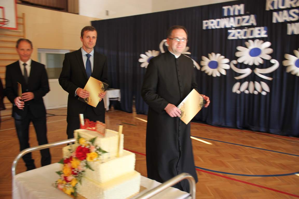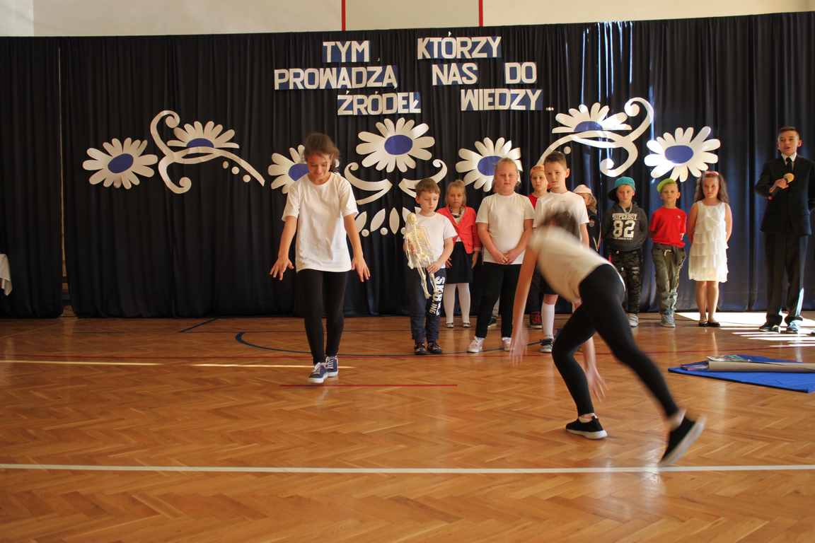 Dziś w naszej szkole odbyła się uroczystość z okazji Dnia Edukacji Narodowej, zwanego również Dniem Nauczyciela. Obchody rozpoczęliśmy modlitwą różańcową w kościele parafialnym w Wietrzychowicach, następnie zaś zgromadziliśmy się na sali gimnastycznej, gdzie klasy II i VIII b przedstawiły piękną akademię z humorem prezentującą życie szkoły, przygotowaną pod kierunkiem pań: Alicji Kozioł i Anny Sochy. Po części artystycznej, wójt gminy, pan Tomasz Banek oraz dyrektor szkoły, pani Jadwiga Łucarz, wręczyli nagrody wyróżniającym się nauczycielom i pracownikom szkoły. W świętowaniu tradycyjnie towarzyszyli nam liczni przyjaciele szkoły, którym serdecznie dziękujemy za obecność i chęć przeżywania z nami dzisiejszej uroczystości.