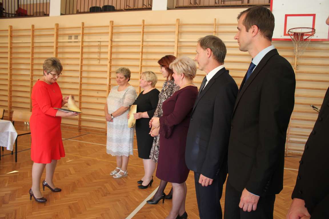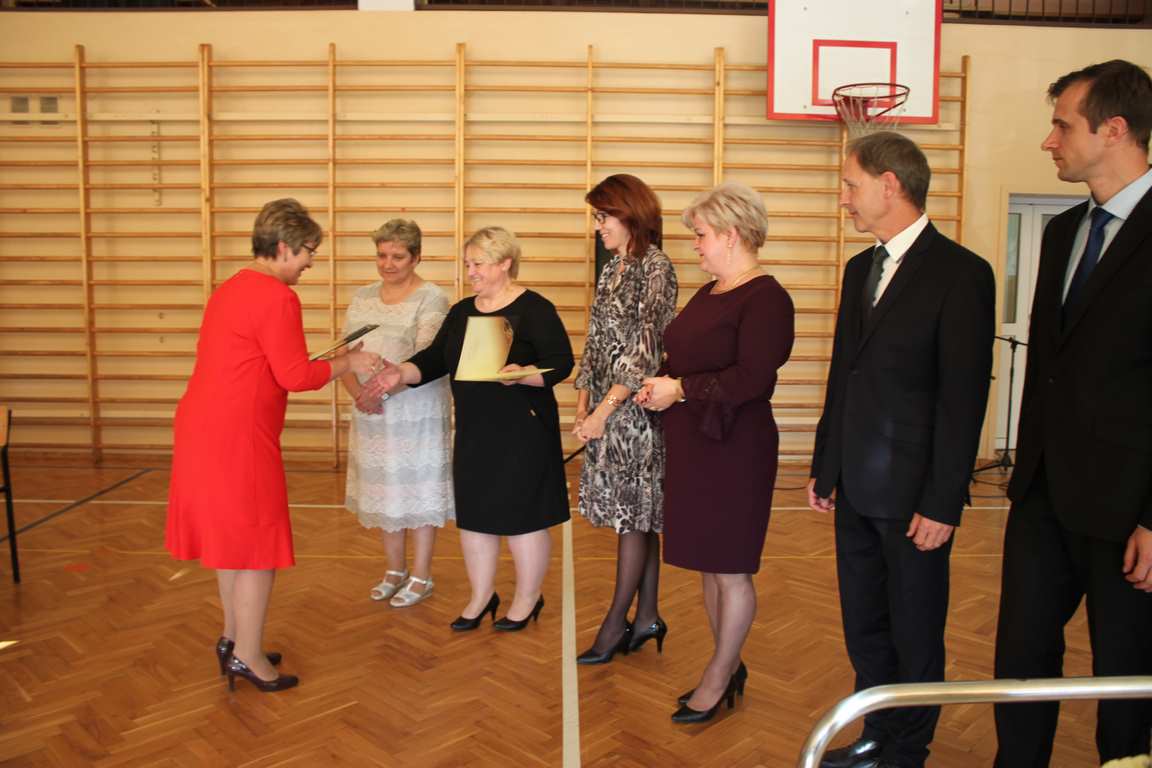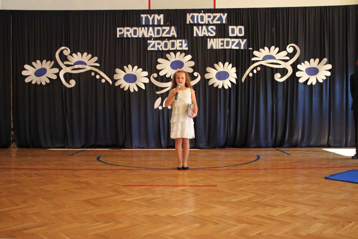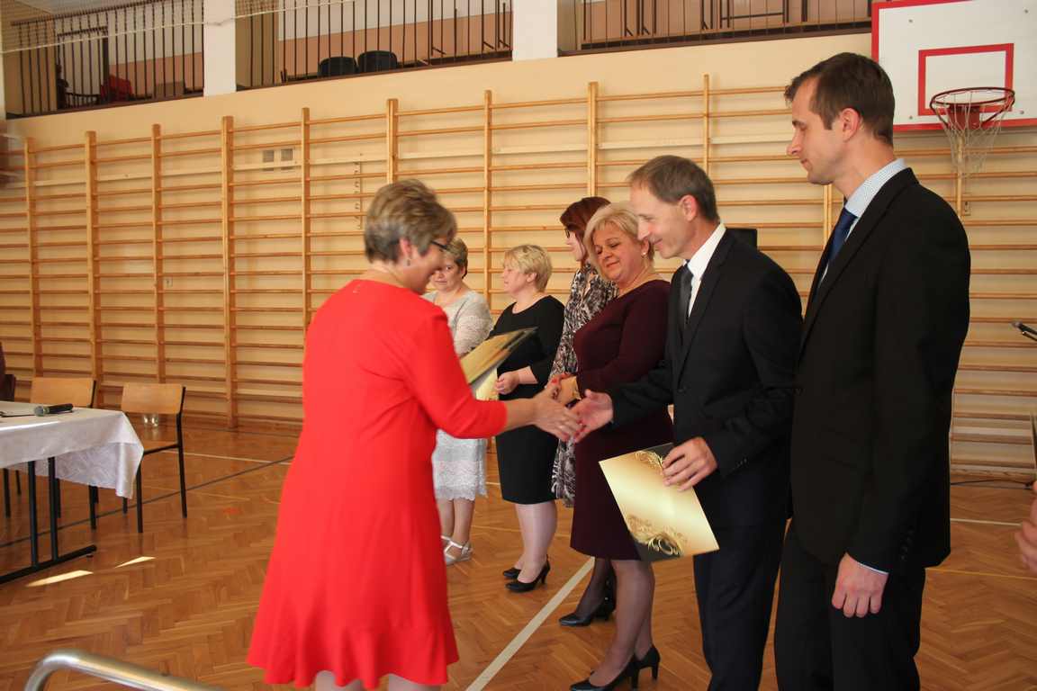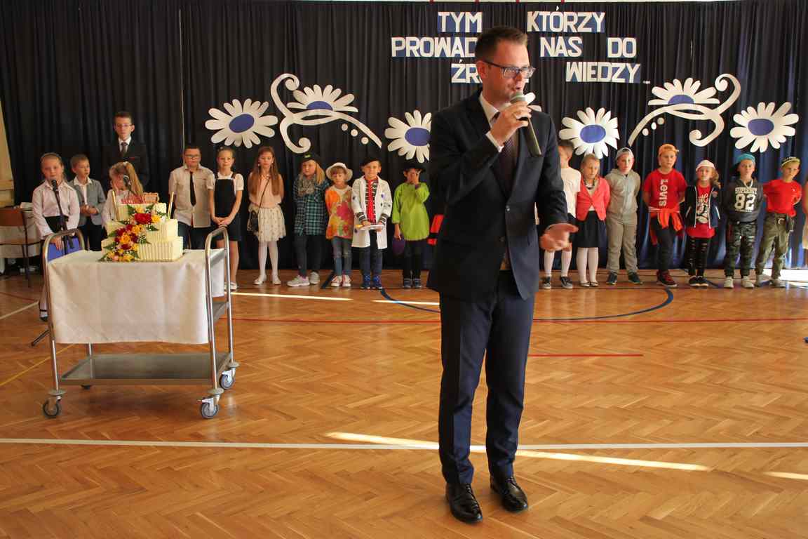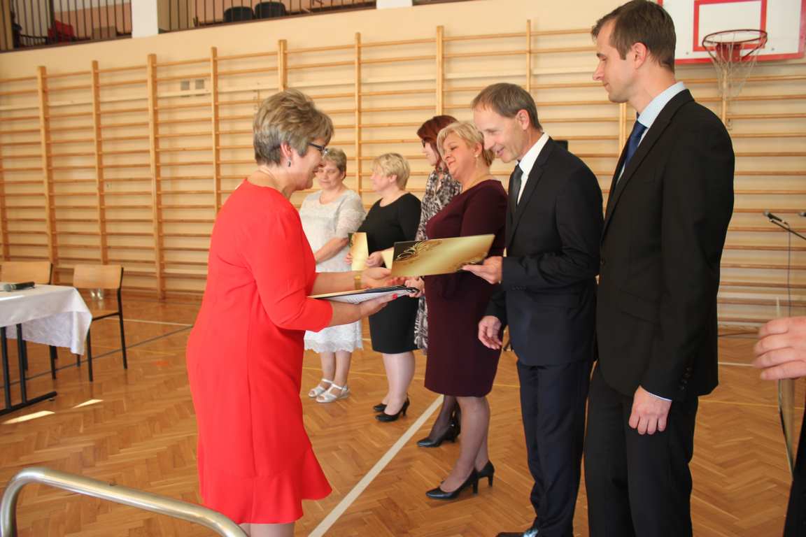 Dziś w naszej szkole odbyła się uroczystość z okazji Dnia Edukacji Narodowej, zwanego również Dniem Nauczyciela. Obchody rozpoczęliśmy modlitwą różańcową w kościele parafialnym w Wietrzychowicach, następnie zaś zgromadziliśmy się na sali gimnastycznej, gdzie klasy II i VIII b przedstawiły piękną akademię z humorem prezentującą życie szkoły, przygotowaną pod kierunkiem pań: Alicji Kozioł i Anny Sochy. Po części artystycznej, wójt gminy, pan Tomasz Banek oraz dyrektor szkoły, pani Jadwiga Łucarz, wręczyli nagrody wyróżniającym się nauczycielom i pracownikom szkoły. W świętowaniu tradycyjnie towarzyszyli nam liczni przyjaciele szkoły, którym serdecznie dziękujemy za obecność i chęć przeżywania z nami dzisiejszej uroczystości.