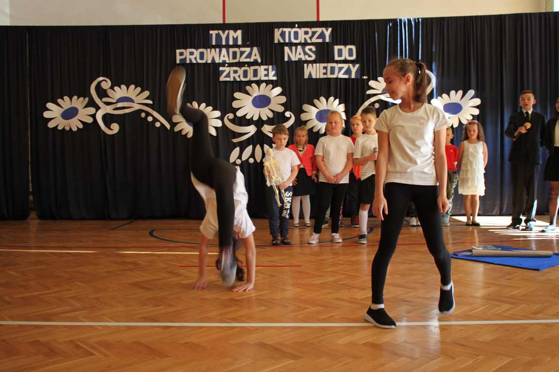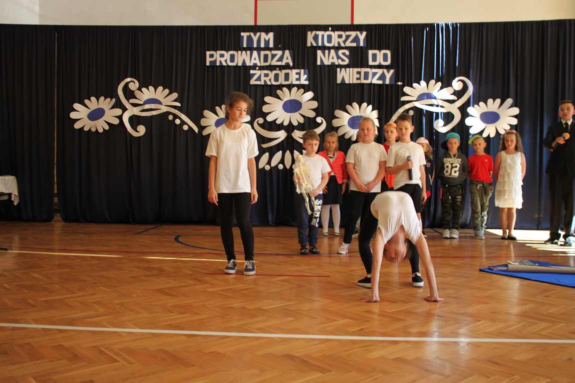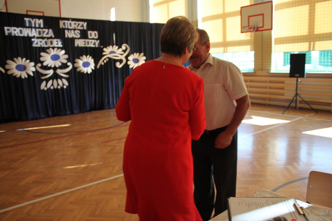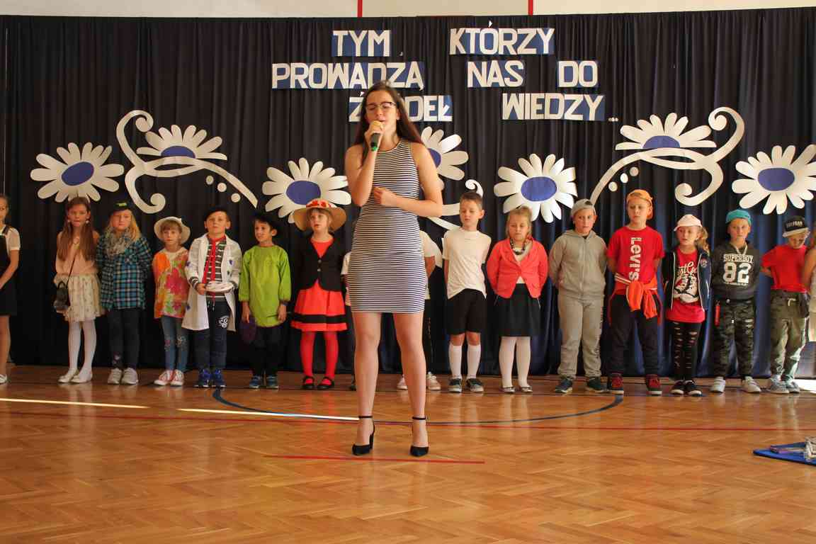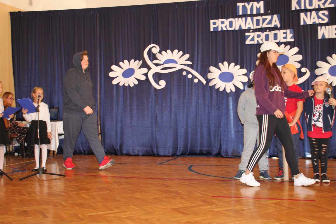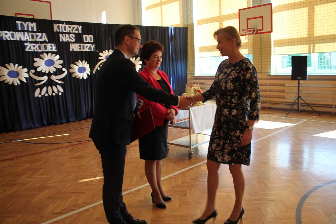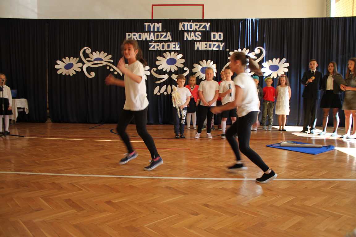 Dziś w naszej szkole odbyła się uroczystość z okazji Dnia Edukacji Narodowej, zwanego również Dniem Nauczyciela. Obchody rozpoczęliśmy modlitwą różańcową w kościele parafialnym w Wietrzychowicach, następnie zaś zgromadziliśmy się na sali gimnastycznej, gdzie klasy II i VIII b przedstawiły piękną akademię z humorem prezentującą życie szkoły, przygotowaną pod kierunkiem pań: Alicji Kozioł i Anny Sochy. Po części artystycznej, wójt gminy, pan Tomasz Banek oraz dyrektor szkoły, pani Jadwiga Łucarz, wręczyli nagrody wyróżniającym się nauczycielom i pracownikom szkoły. W świętowaniu tradycyjnie towarzyszyli nam liczni przyjaciele szkoły, którym serdecznie dziękujemy za obecność i chęć przeżywania z nami dzisiejszej uroczystości.