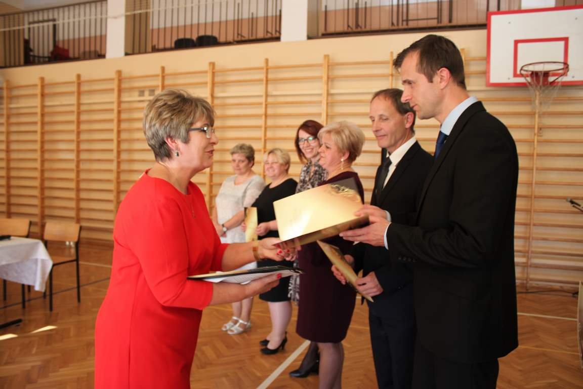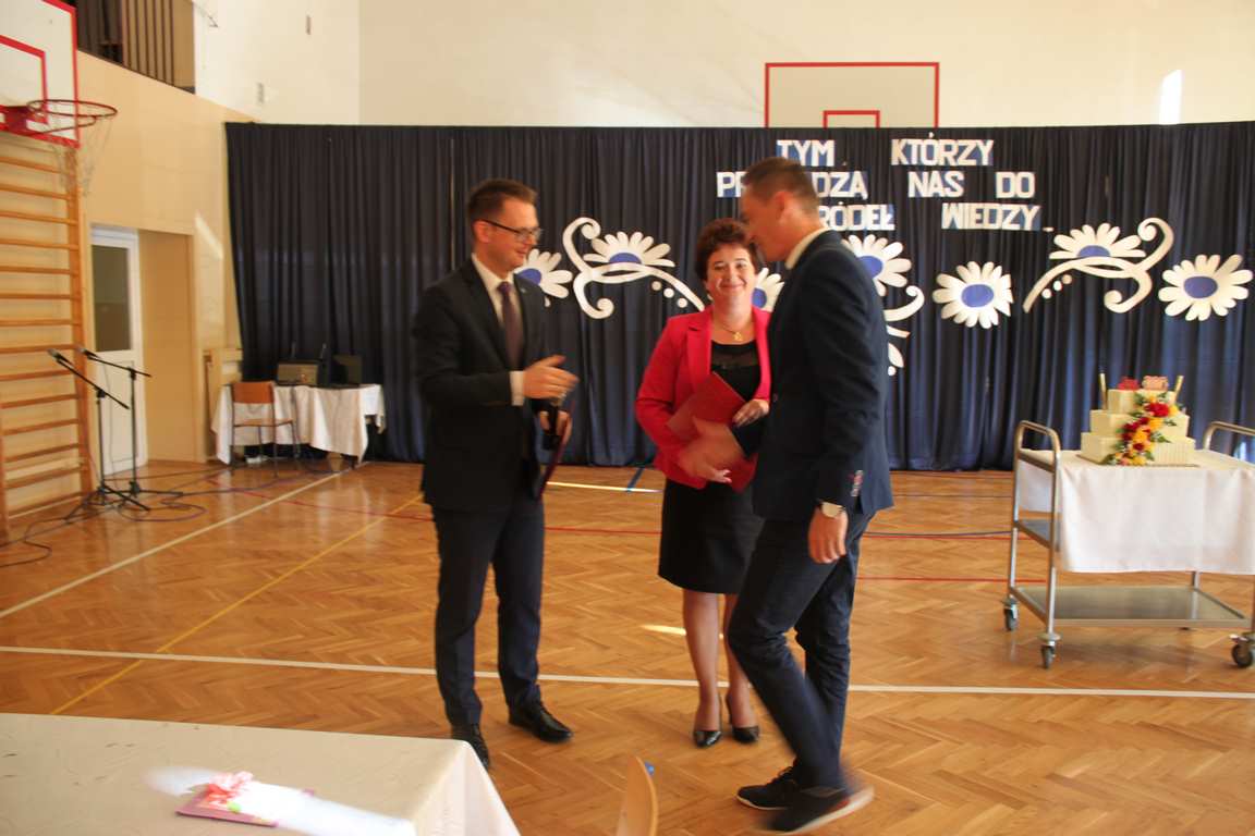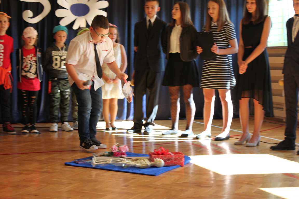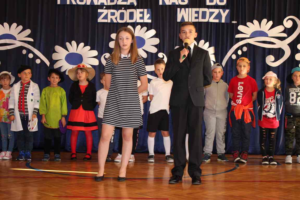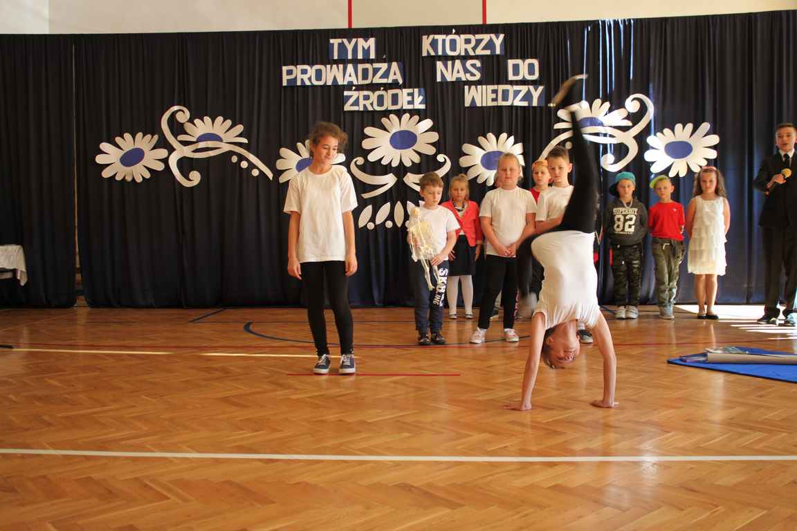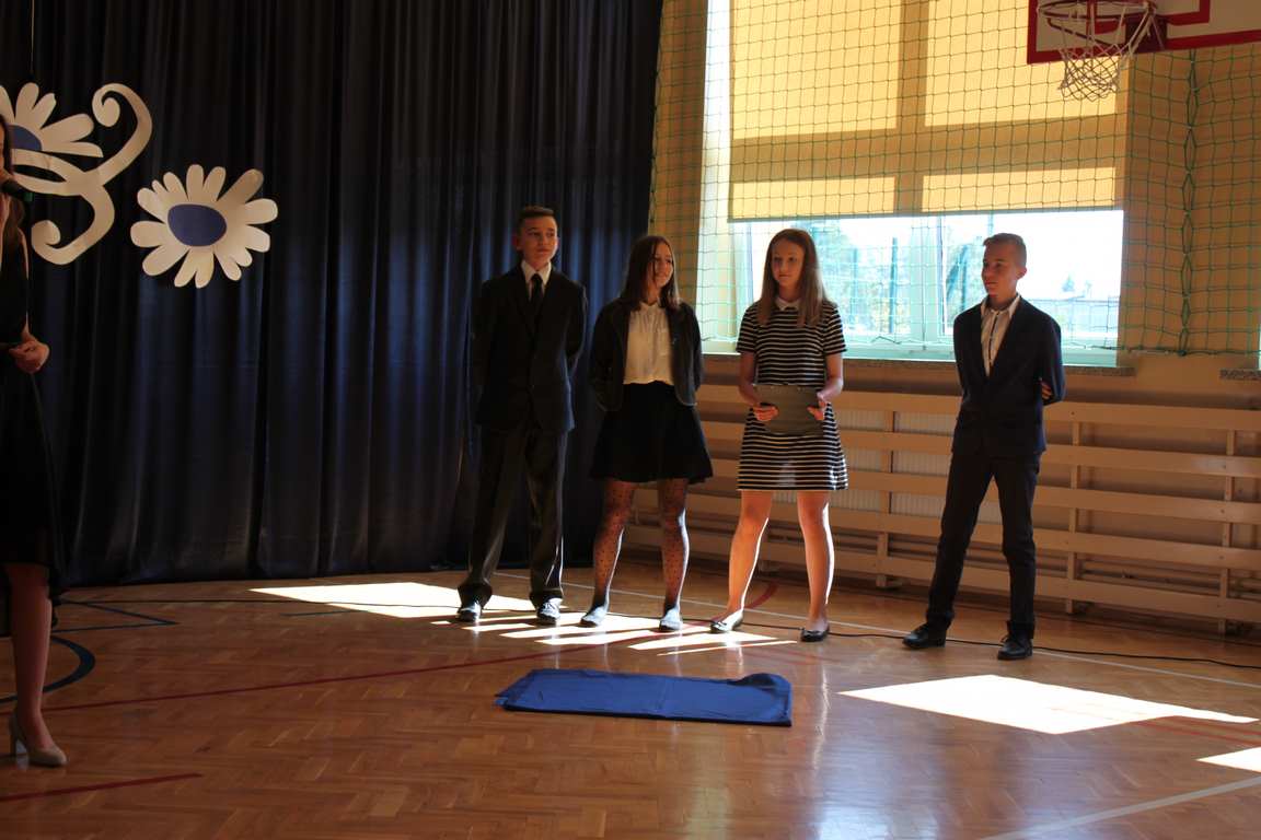 Dziś w naszej szkole odbyła się uroczystość z okazji Dnia Edukacji Narodowej, zwanego również Dniem Nauczyciela. Obchody rozpoczęliśmy modlitwą różańcową w kościele parafialnym w Wietrzychowicach, następnie zaś zgromadziliśmy się na sali gimnastycznej, gdzie klasy II i VIII b przedstawiły piękną akademię z humorem prezentującą życie szkoły, przygotowaną pod kierunkiem pań: Alicji Kozioł i Anny Sochy. Po części artystycznej, wójt gminy, pan Tomasz Banek oraz dyrektor szkoły, pani Jadwiga Łucarz, wręczyli nagrody wyróżniającym się nauczycielom i pracownikom szkoły. W świętowaniu tradycyjnie towarzyszyli nam liczni przyjaciele szkoły, którym serdecznie dziękujemy za obecność i chęć przeżywania z nami dzisiejszej uroczystości.