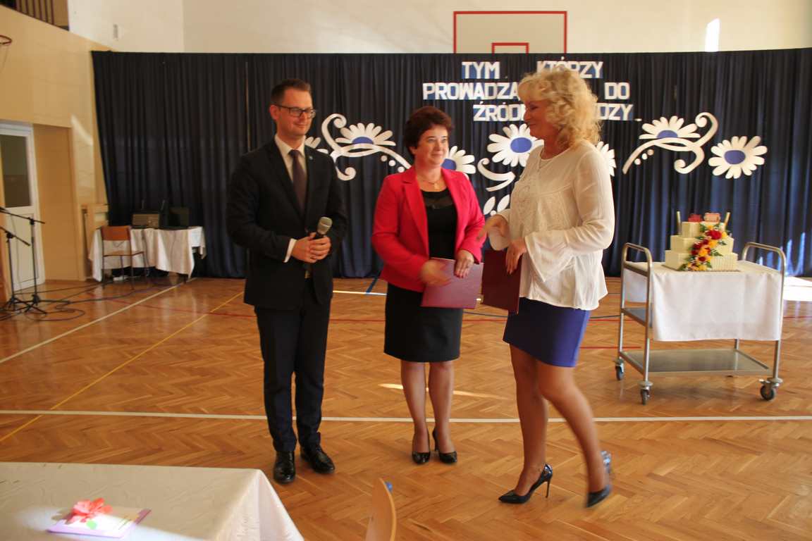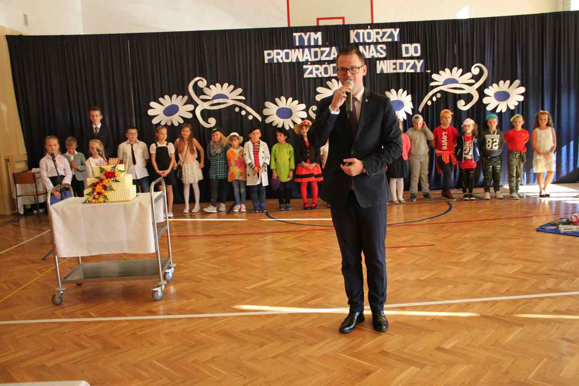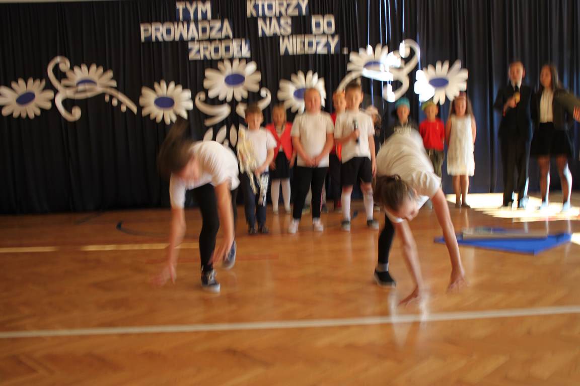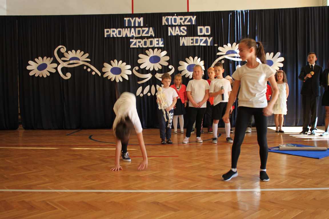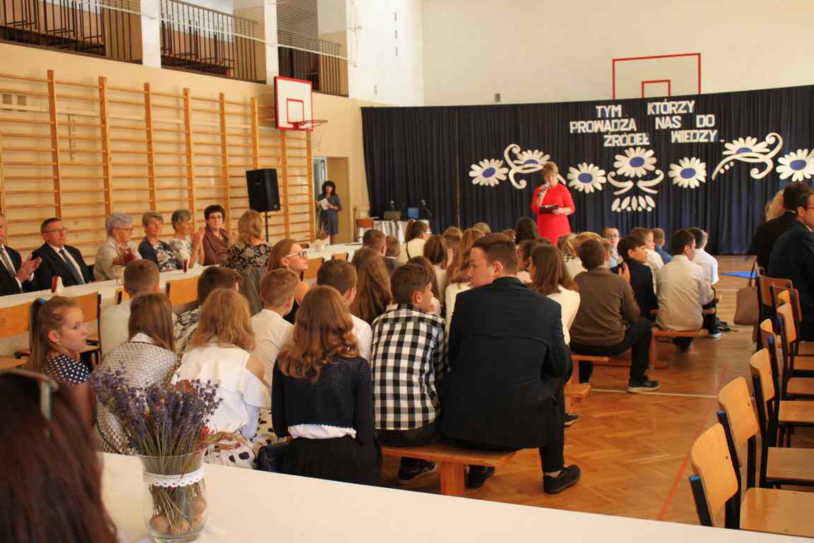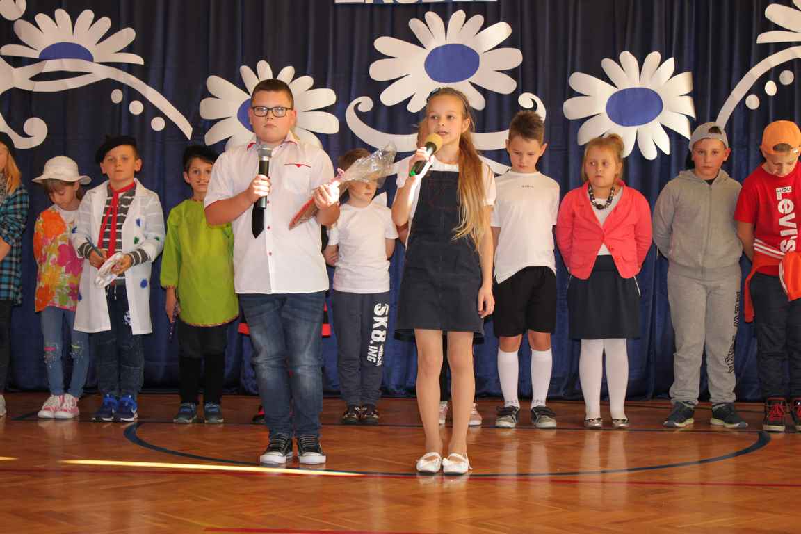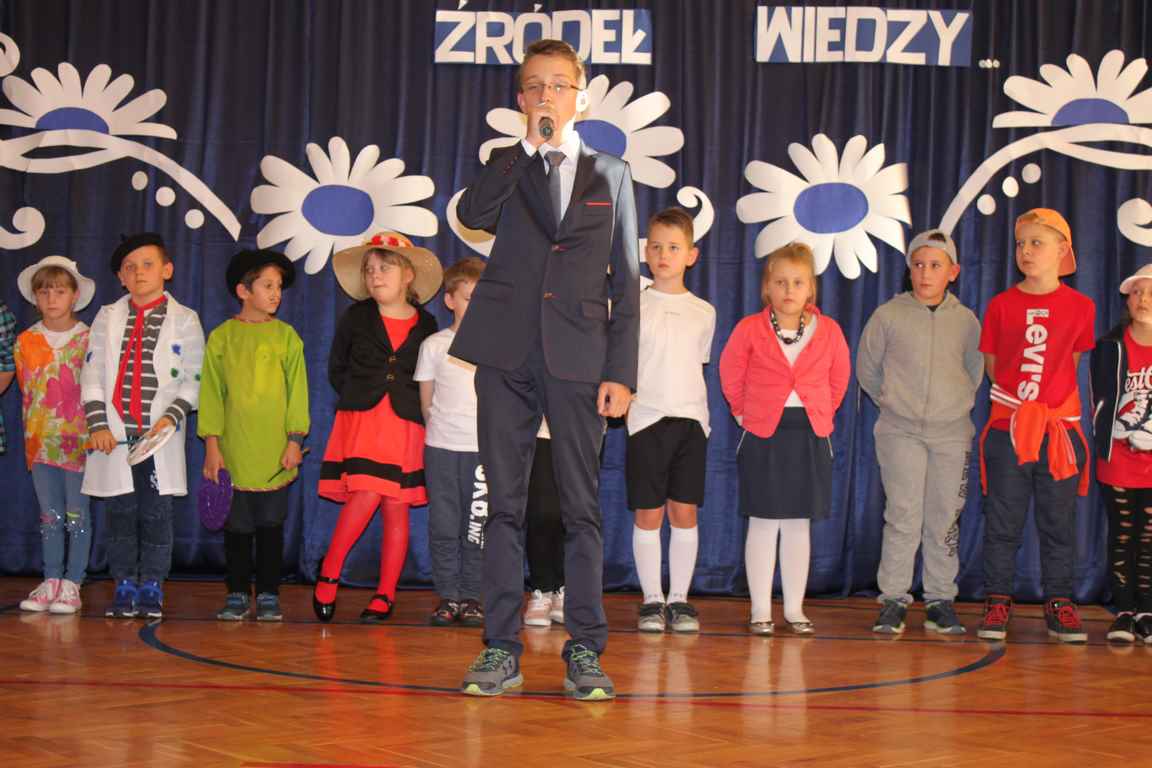 Dziś w naszej szkole odbyła się uroczystość z okazji Dnia Edukacji Narodowej, zwanego również Dniem Nauczyciela. Obchody rozpoczęliśmy modlitwą różańcową w kościele parafialnym w Wietrzychowicach, następnie zaś zgromadziliśmy się na sali gimnastycznej, gdzie klasy II i VIII b przedstawiły piękną akademię z humorem prezentującą życie szkoły, przygotowaną pod kierunkiem pań: Alicji Kozioł i Anny Sochy. Po części artystycznej, wójt gminy, pan Tomasz Banek oraz dyrektor szkoły, pani Jadwiga Łucarz, wręczyli nagrody wyróżniającym się nauczycielom i pracownikom szkoły. W świętowaniu tradycyjnie towarzyszyli nam liczni przyjaciele szkoły, którym serdecznie dziękujemy za obecność i chęć przeżywania z nami dzisiejszej uroczystości.