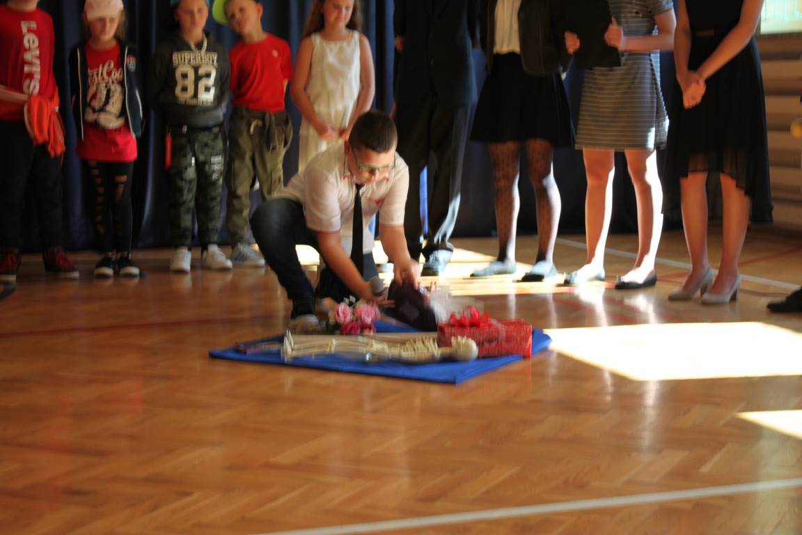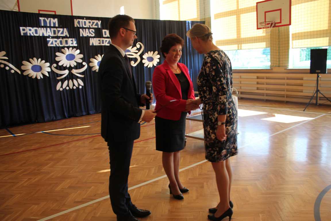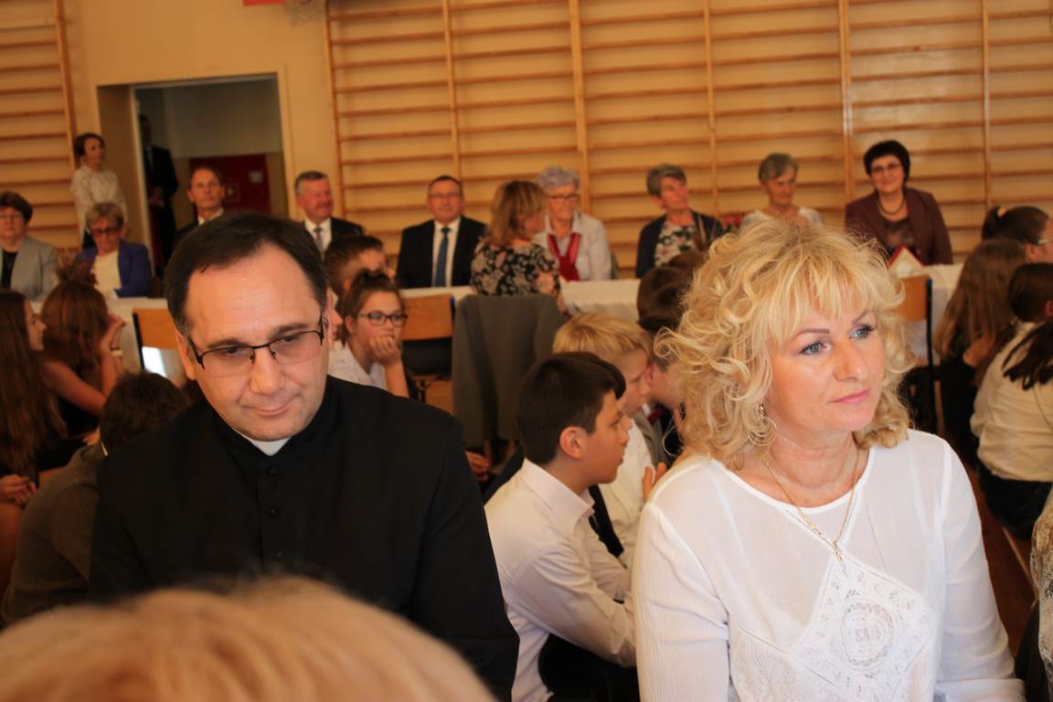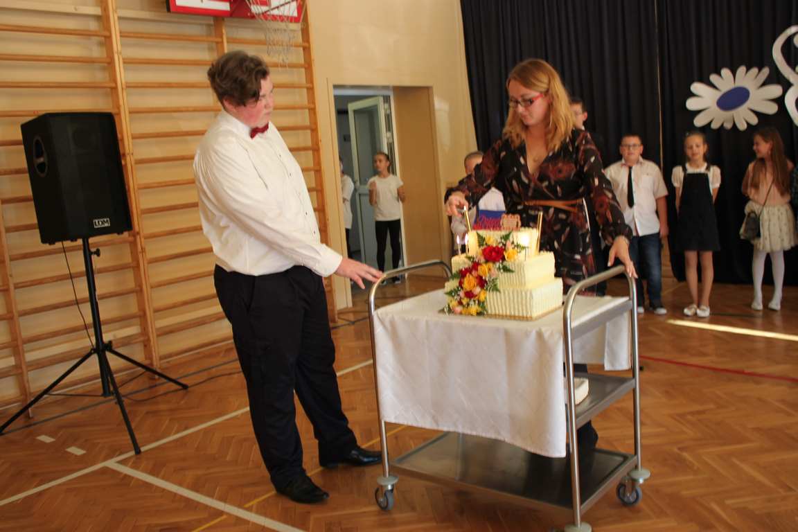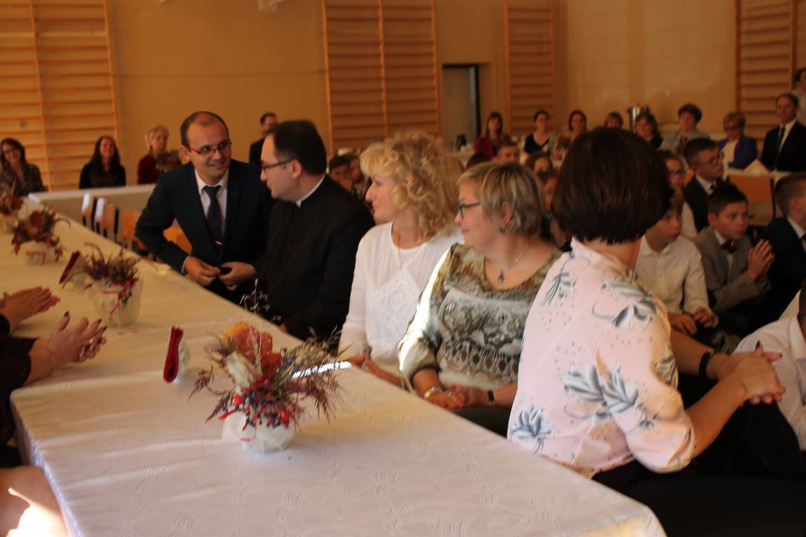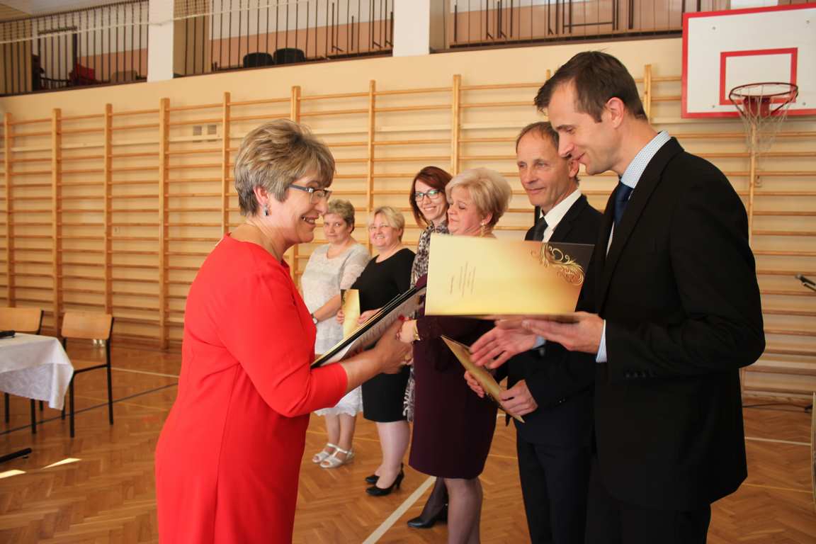 Dziś w naszej szkole odbyła się uroczystość z okazji Dnia Edukacji Narodowej, zwanego również Dniem Nauczyciela. Obchody rozpoczęliśmy modlitwą różańcową w kościele parafialnym w Wietrzychowicach, następnie zaś zgromadziliśmy się na sali gimnastycznej, gdzie klasy II i VIII b przedstawiły piękną akademię z humorem prezentującą życie szkoły, przygotowaną pod kierunkiem pań: Alicji Kozioł i Anny Sochy. Po części artystycznej, wójt gminy, pan Tomasz Banek oraz dyrektor szkoły, pani Jadwiga Łucarz, wręczyli nagrody wyróżniającym się nauczycielom i pracownikom szkoły. W świętowaniu tradycyjnie towarzyszyli nam liczni przyjaciele szkoły, którym serdecznie dziękujemy za obecność i chęć przeżywania z nami dzisiejszej uroczystości.