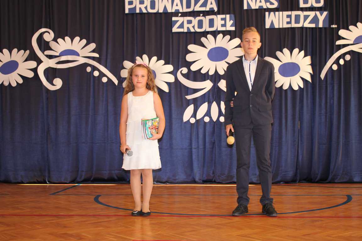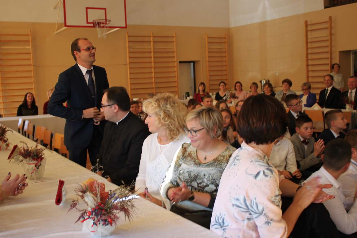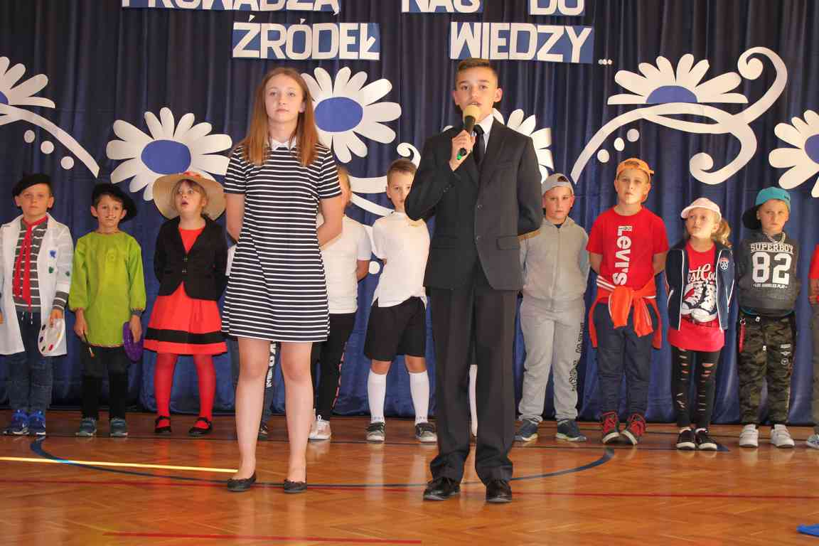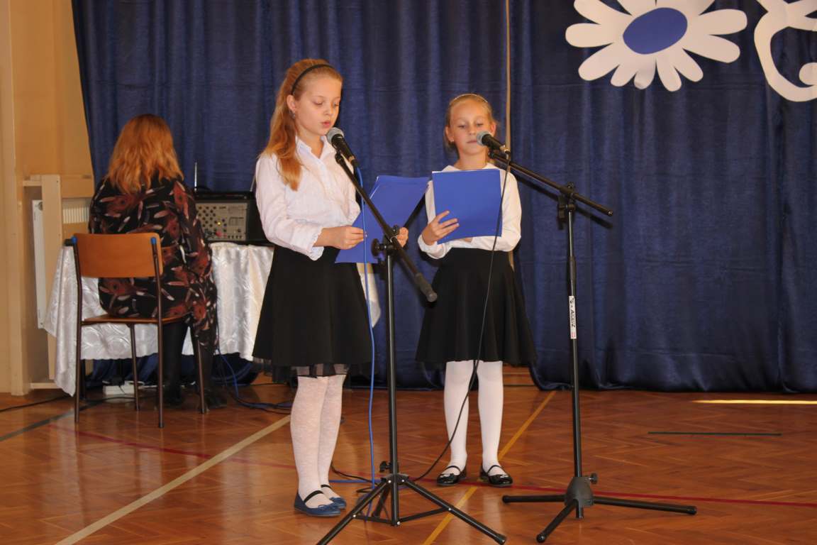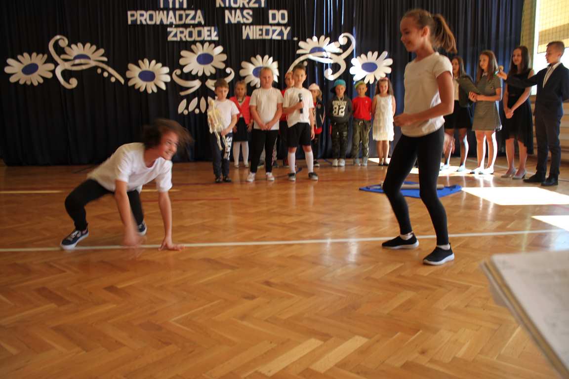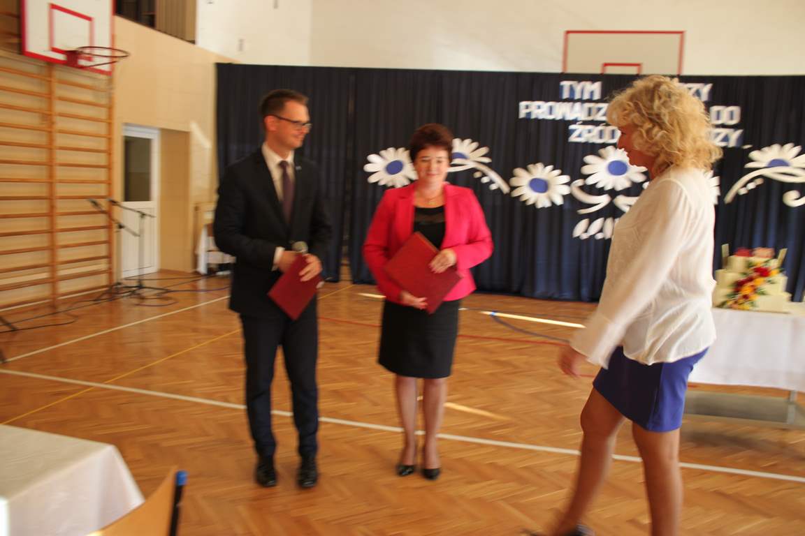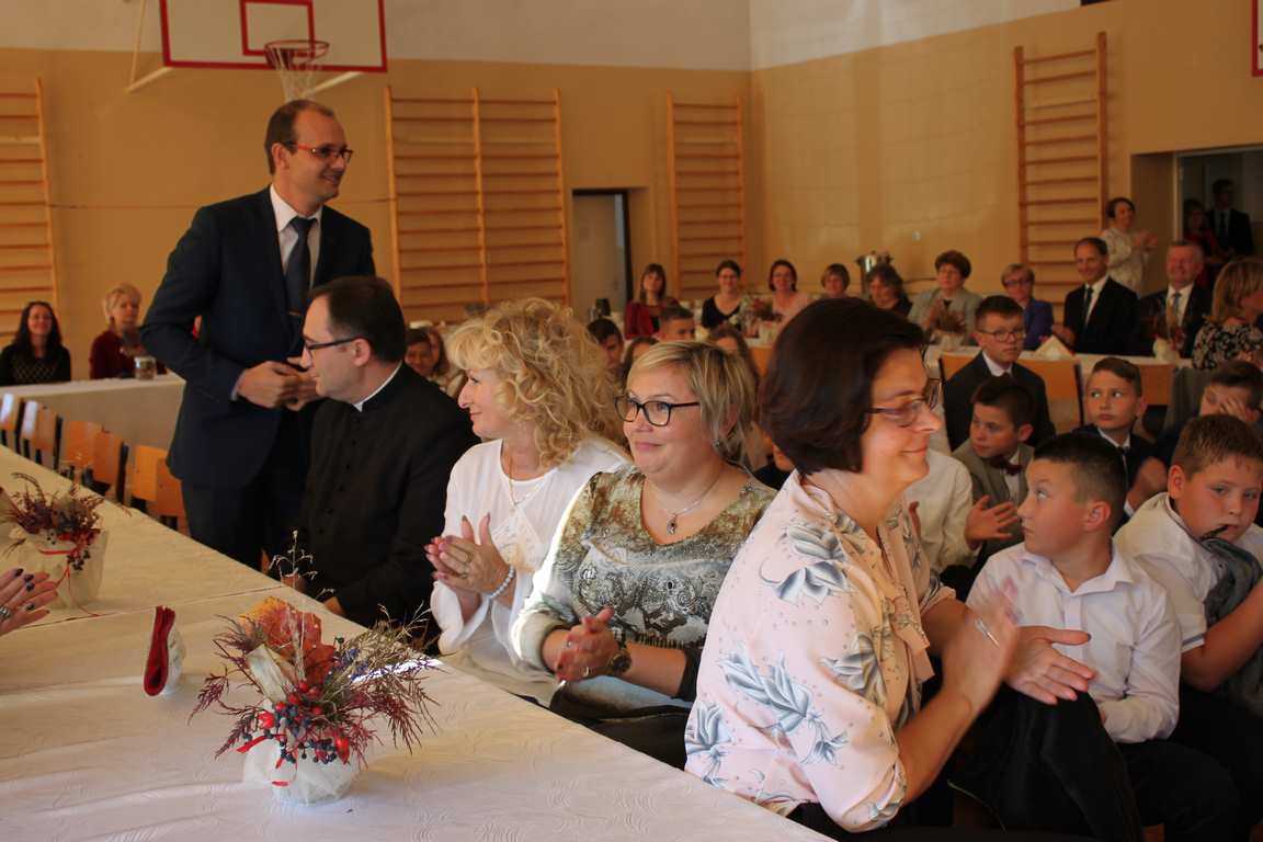 Dziś w naszej szkole odbyła się uroczystość z okazji Dnia Edukacji Narodowej, zwanego również Dniem Nauczyciela. Obchody rozpoczęliśmy modlitwą różańcową w kościele parafialnym w Wietrzychowicach, następnie zaś zgromadziliśmy się na sali gimnastycznej, gdzie klasy II i VIII b przedstawiły piękną akademię z humorem prezentującą życie szkoły, przygotowaną pod kierunkiem pań: Alicji Kozioł i Anny Sochy. Po części artystycznej, wójt gminy, pan Tomasz Banek oraz dyrektor szkoły, pani Jadwiga Łucarz, wręczyli nagrody wyróżniającym się nauczycielom i pracownikom szkoły. W świętowaniu tradycyjnie towarzyszyli nam liczni przyjaciele szkoły, którym serdecznie dziękujemy za obecność i chęć przeżywania z nami dzisiejszej uroczystości.