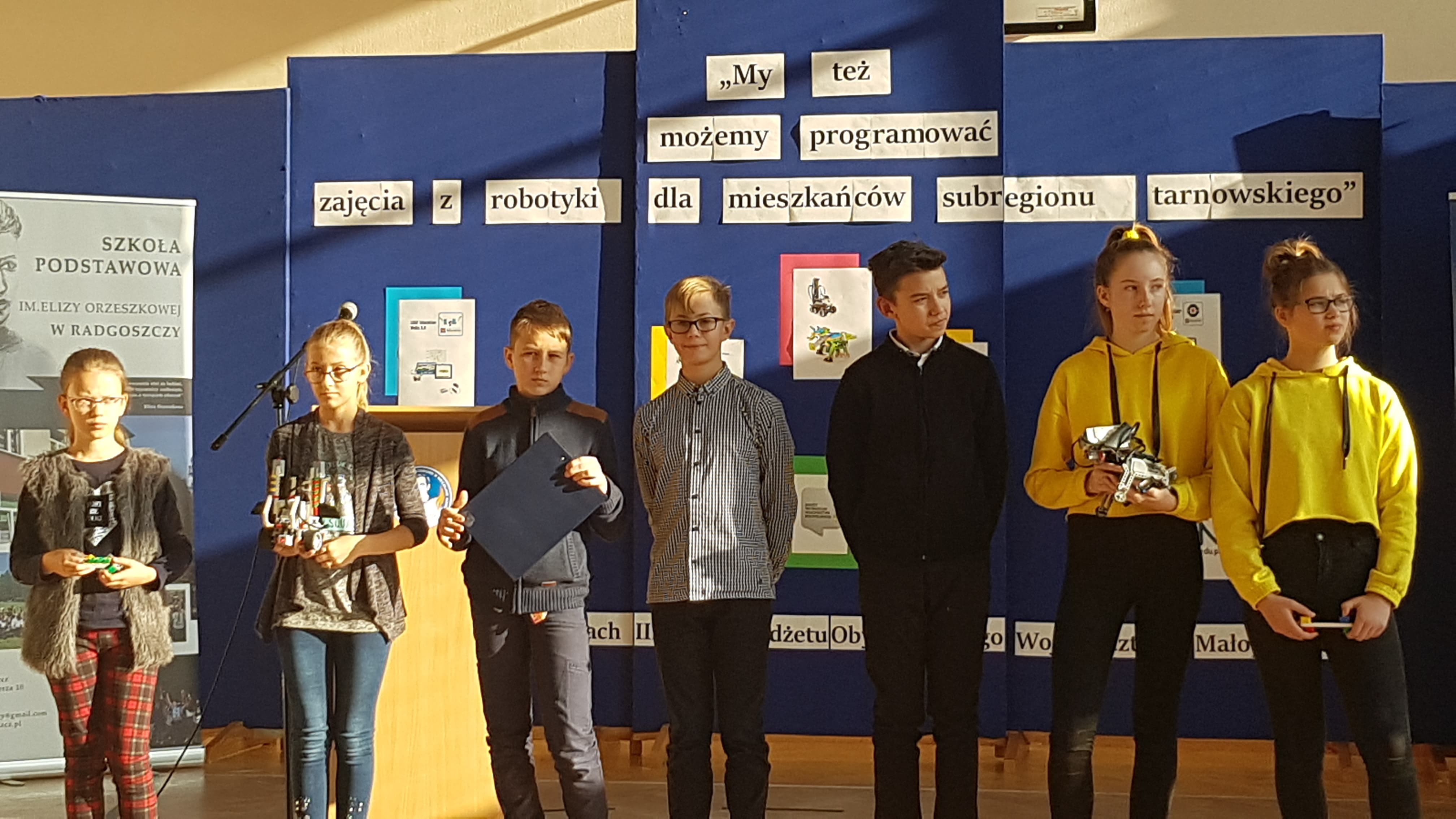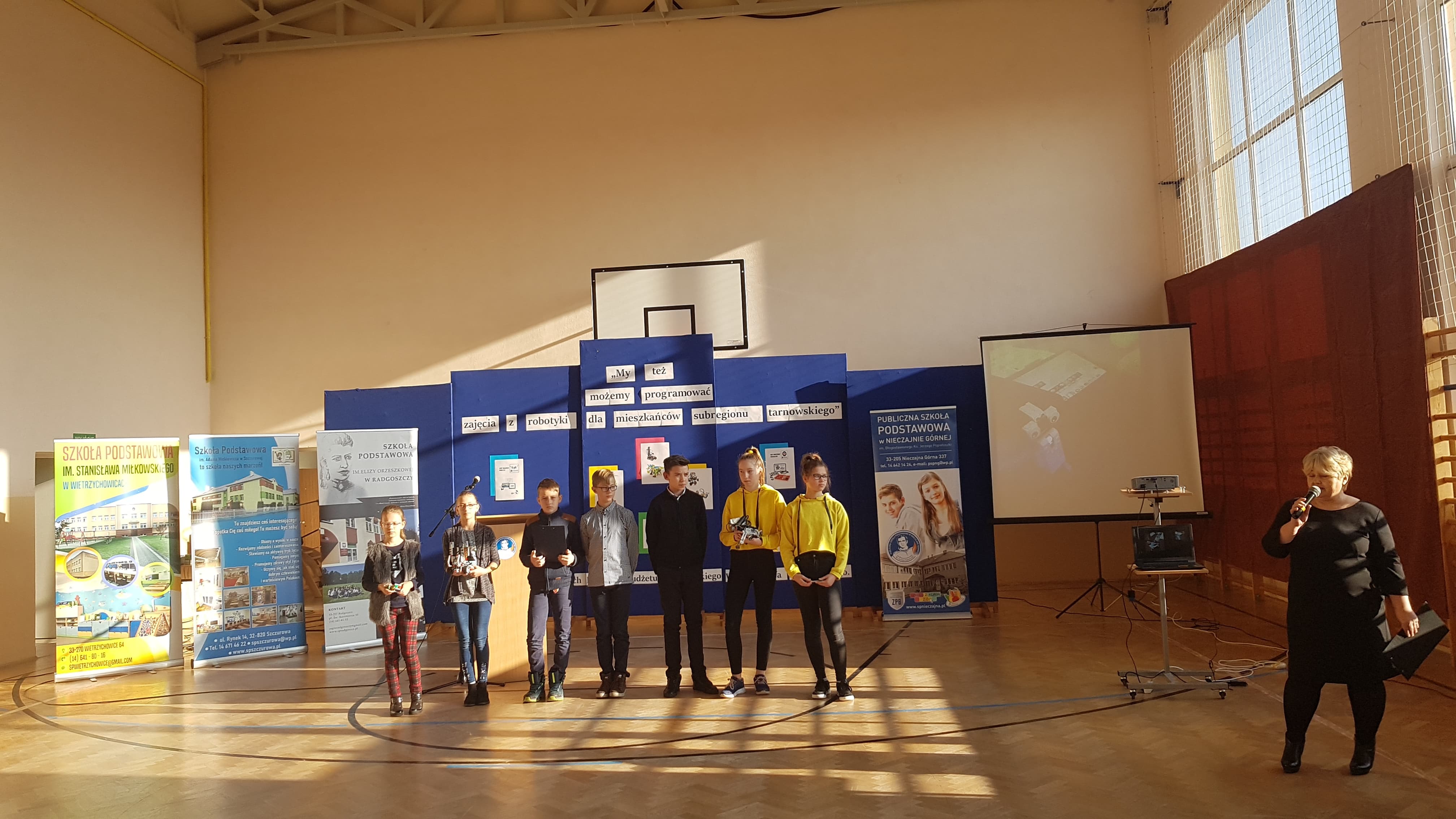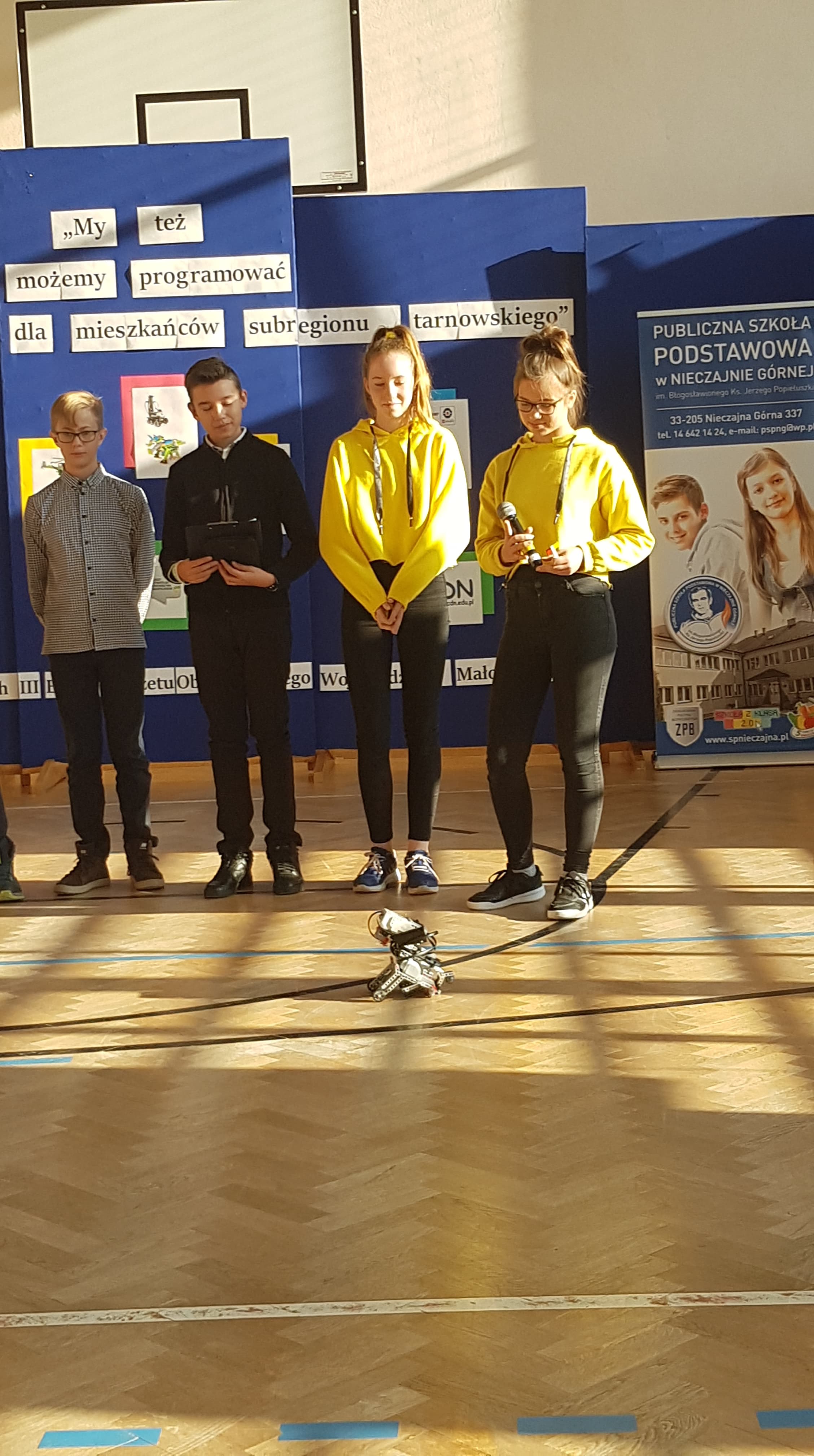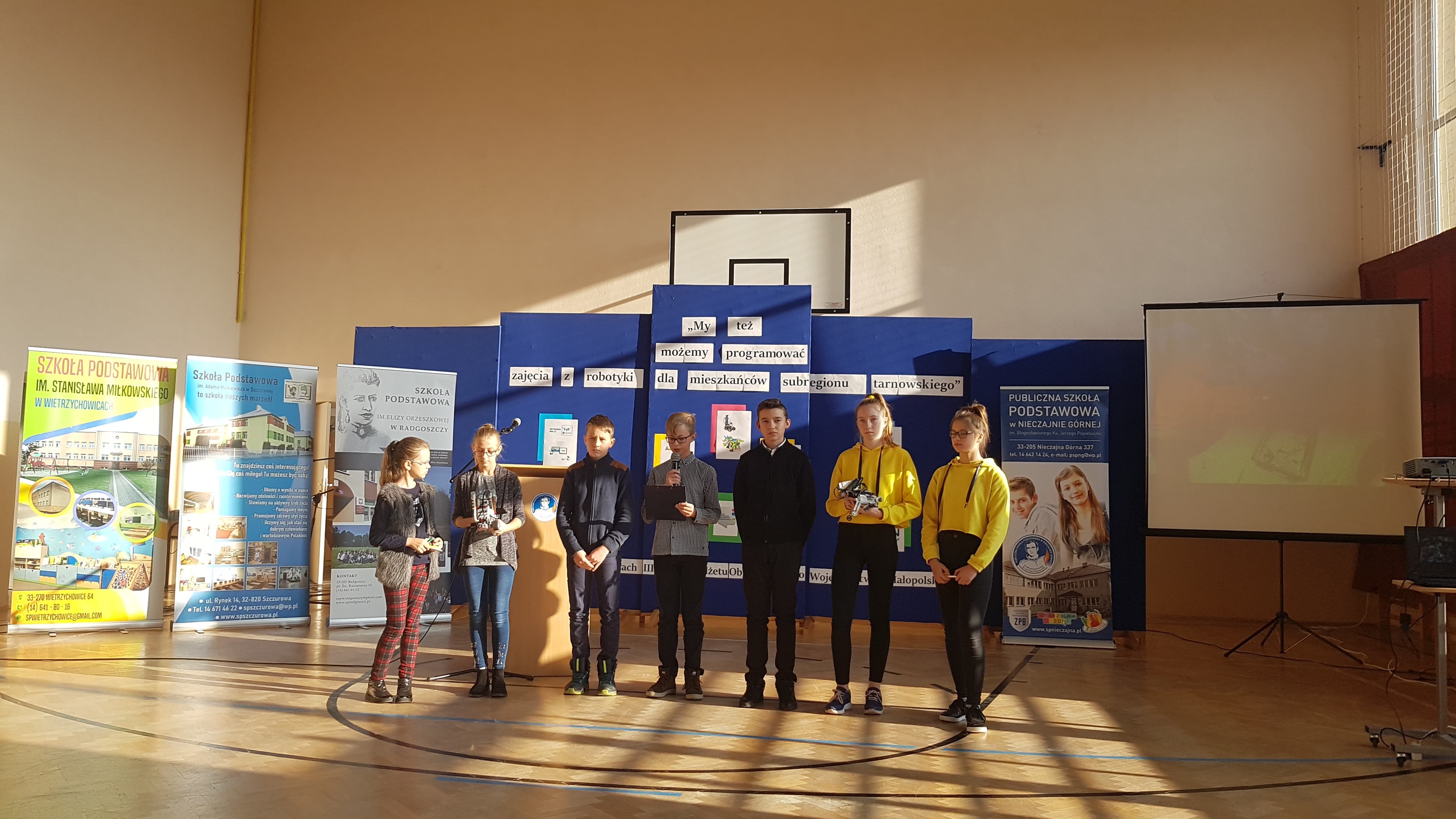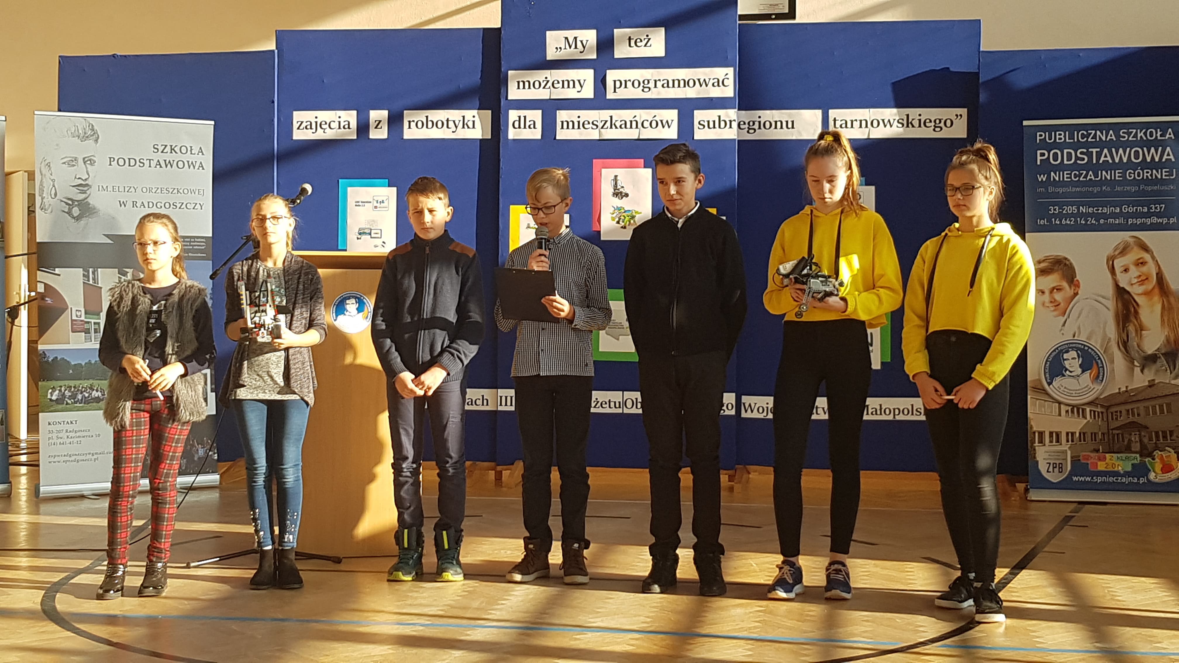 27 listopada odbyło się podsumowanie projektu „My też możemy programować – zajęcia z robotyki dla mieszkańców subregionu tarnowskiego” realizowanego i finansowanego ze środków w ramach III Edycji Budżetu Obywatelskiego Województwa Małopolskiego. Organizatorem podsumowania była Szkoła Podstawowa w Nieczajnie Górnej. Zaproszonych gości powitali dyrektor szkoły Dariusz Węglowski oraz koordynatorka projektu Anna Wolak. Wśród zaproszonych gości znaleźli się: Poseł na Sejm RP Wiesław Krajewski, Wicestarosta powiatu dąbrowskiego Stanisław Bryk, Przewodnicząca Rady Powiatu Marta Chrabąszcz, Wójt Gminy Wietrzychowice Tomasz Banek, przedstawiciel Małopolskiego Centrum Doskonalenia Nauczycieli w Krakowie Mariusz Gdowski, dyrektor I LO w Dąbrowie Tarnowskiej Michał Wolak. Uczniowie oraz koordynatorzy projektu ze szkół podstawowych w Nieczajnie Górnej, Radgoszczy, Szczurowej i Wietrzychowic zaprezentowali swoje osiągnięcia. Po części oficjalnej nastąpiła integracja młodzieży uczestniczącej w projekcie, wymiana doświadczeń.