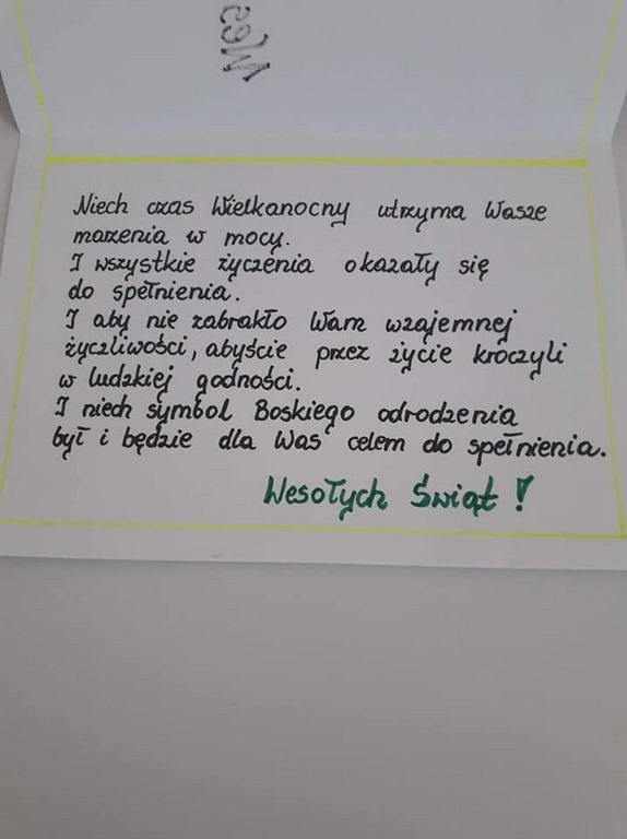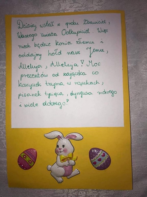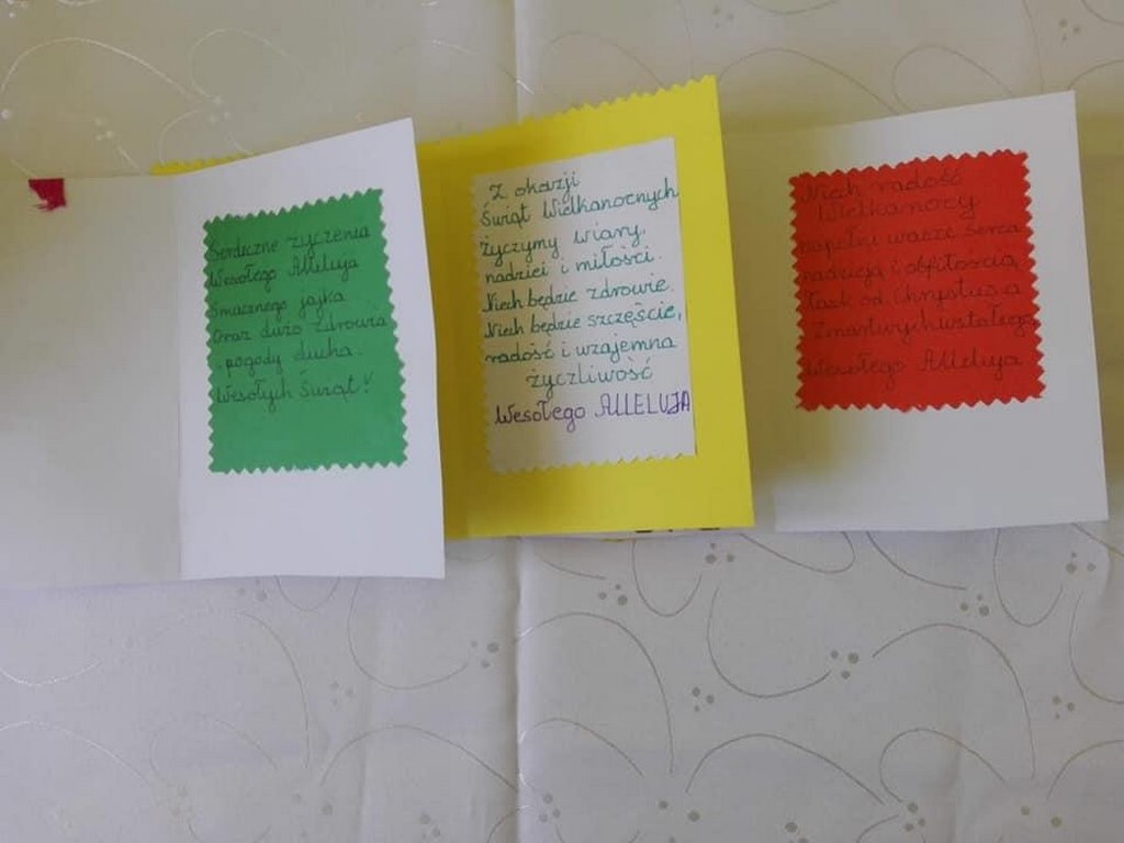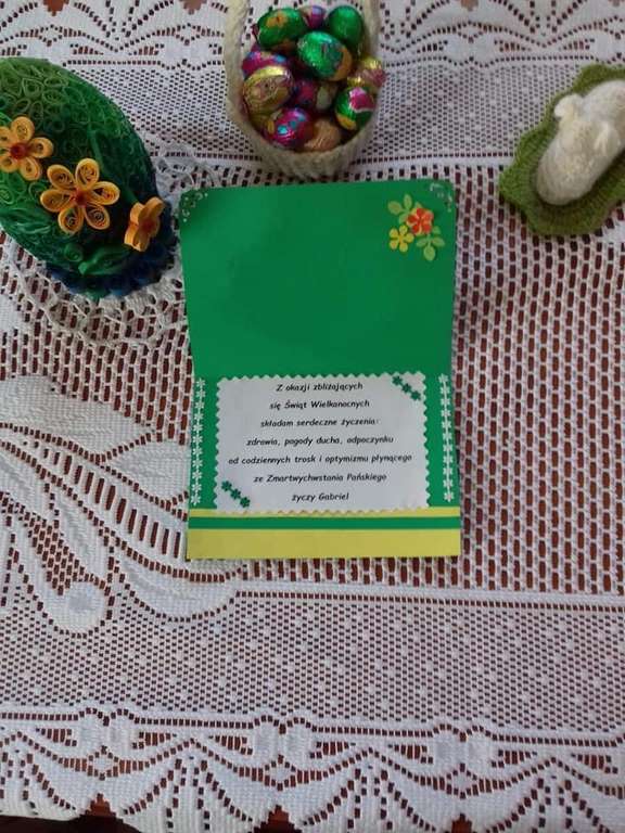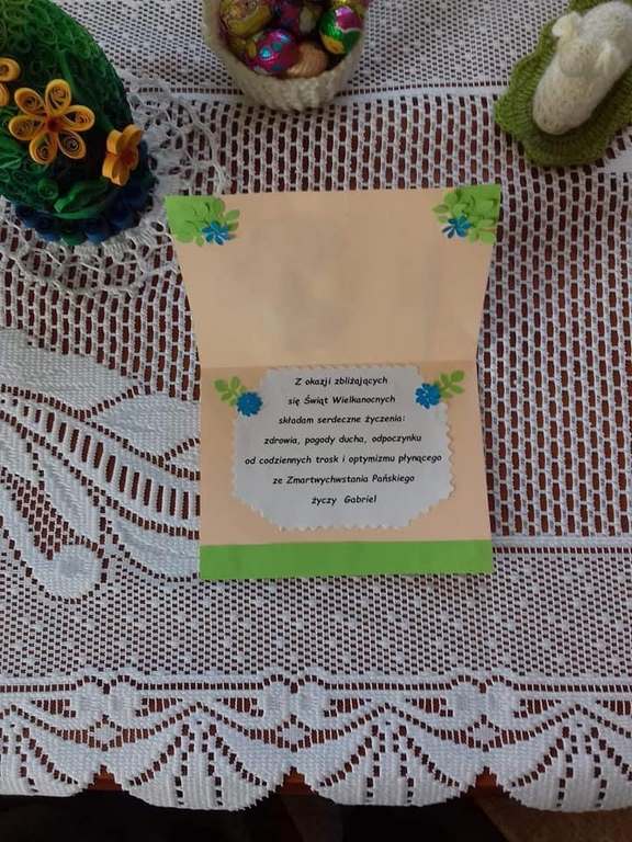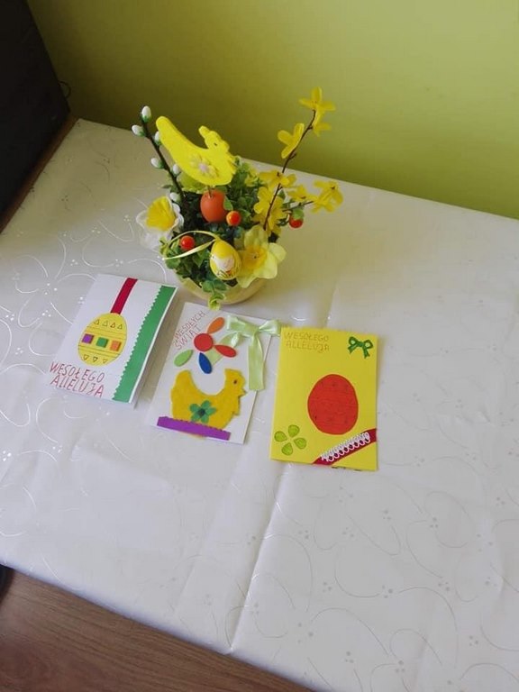 Z okazji zbliżających się Świąt Wielkanocnych, uczniowie naszej szkoły, w ramach zajęć świetlicowych i wolontariatu, wykonywali kartki i stroiki świąteczne. Mamy nadzieję, że umilą one wszystkim odwiedzającym nasza stronę czas przedświątecznych przygotowań, a piękne życzenia dodadzą nadziei na ten trudny czas świąt, świąt innych niż dotychczas. Bardzo dziękujemy za zaangażowanie: Weronice i drugiej Weronice, Kasi, Julii, Jakubowi, Michałowi i drugiemu Michałowi, Oliwii, Oli, Dagmarze, Dominice, Madzi, Martynie, Oliwii, Gabrysiowi, Oliwierowi, Wiktorowi, Kacprowi, Ani, Monice i Arturowi.